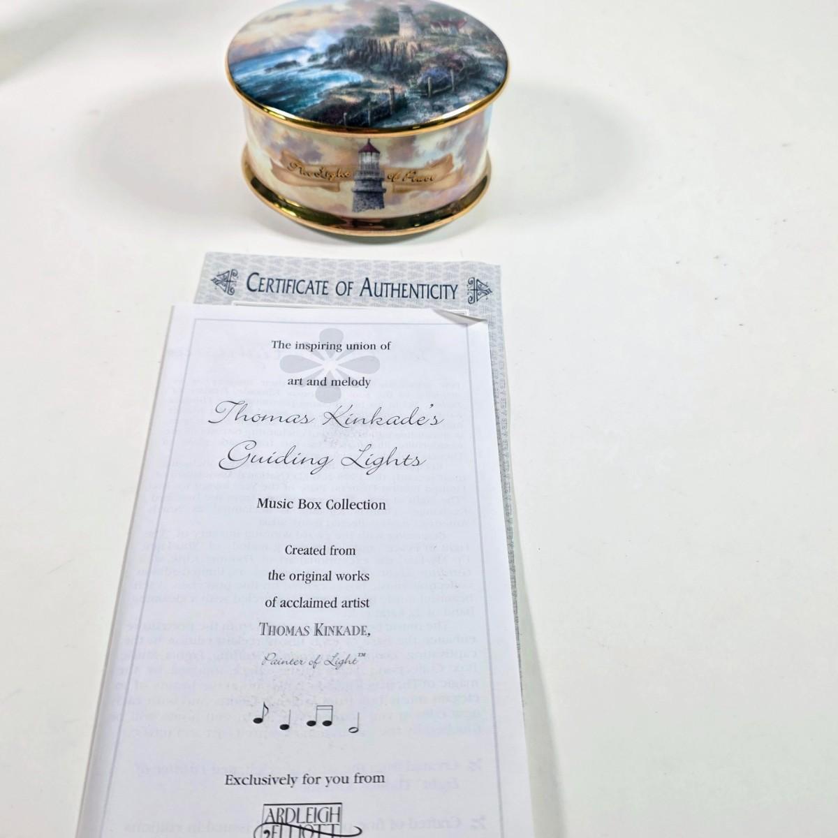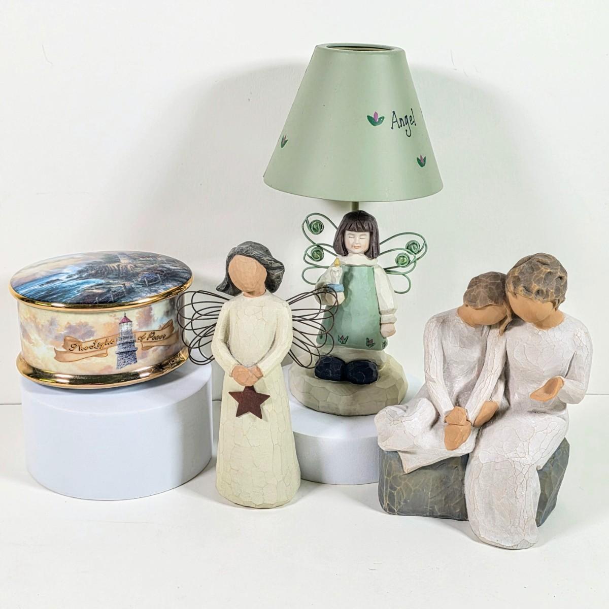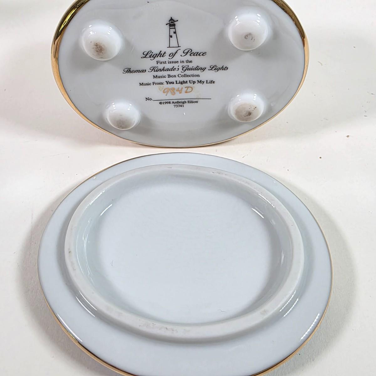 LOT 156D: Thomas Kinkade Light of Peace Music Box, Willow Tree Figures & More