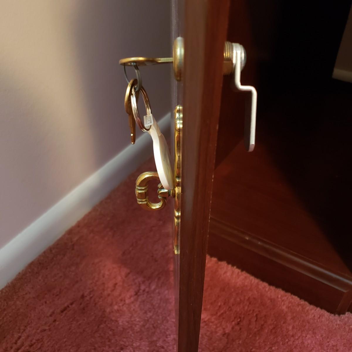 53 1/2"x 23 1/2"x 59". Please see all pictures as they are the best representation of the items. The pictures show condition, measurements if taken, and what is included in the lot. Due to the large amount that we photograph and the time frame, we are not always able to take measurements. All items unless noted, are pre-owned and have been used. If you purchased furniture, you must bring help. We do not allow one person to carry large furniture out on their own. Bring help, tools and a truck for the safety of our client’s homes, and your personal safety. Any damages that result to the property including walls, and floors due to moving of the furniture will be charged to the buyer. Company policy. Thank you.