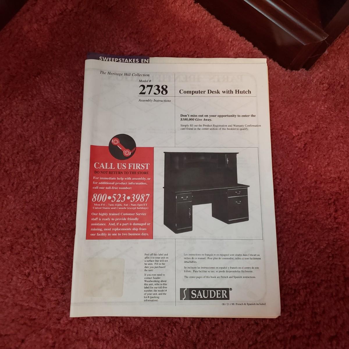 LOT 165X: Sauder Wooden Computer Desk with Hutch