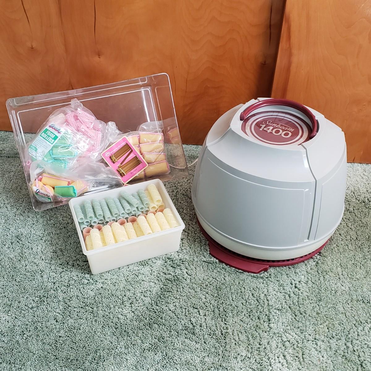 LOT 170Y: Vintage Sunbeam Portable Hair Dryer with Vintage Hair Accessories