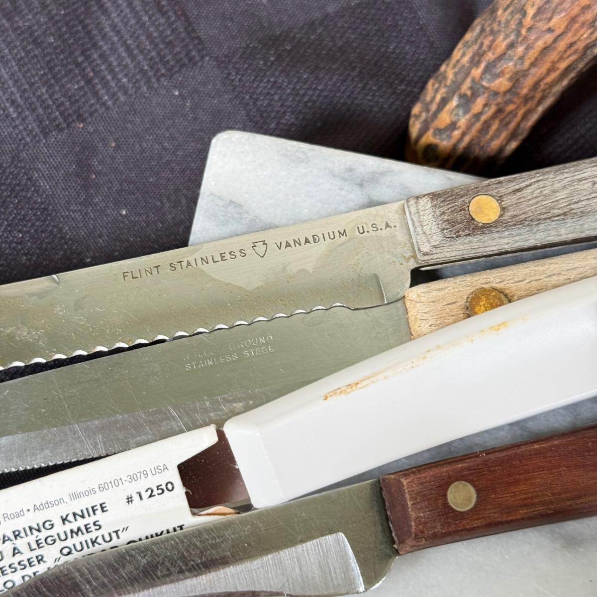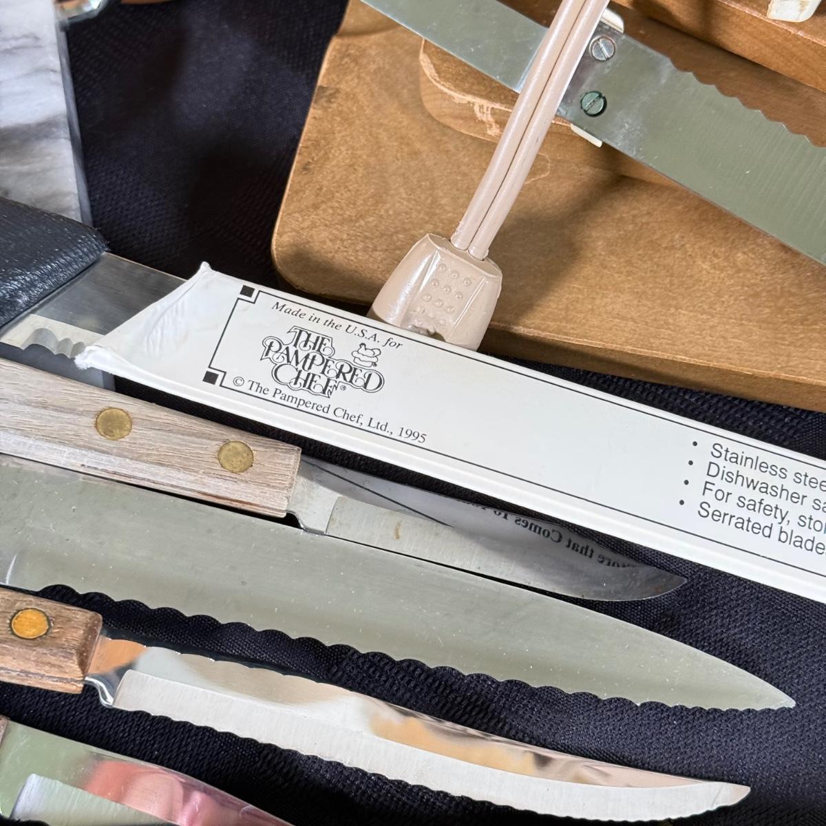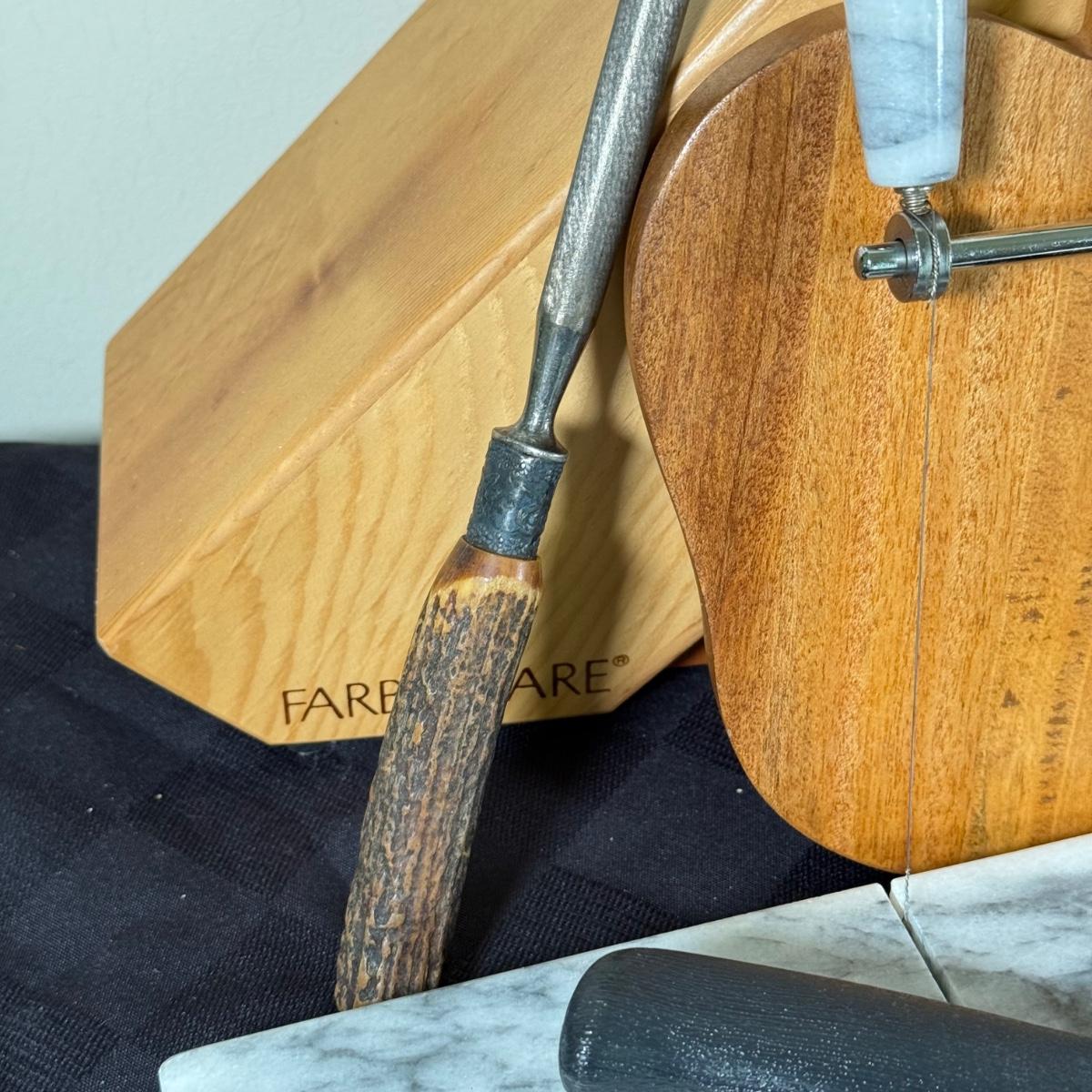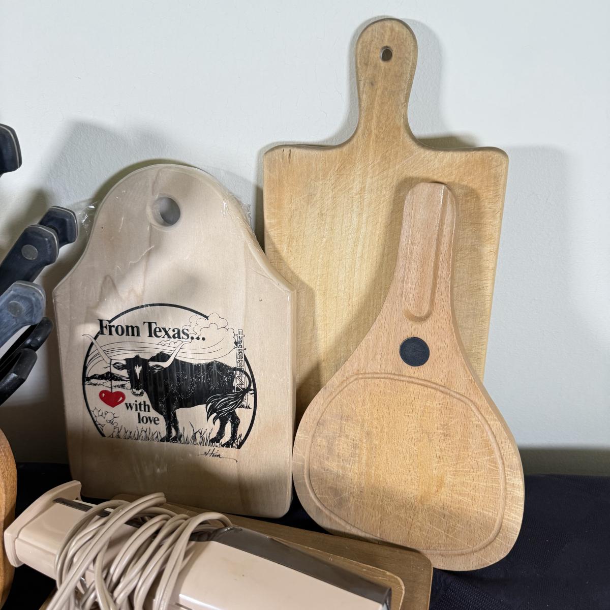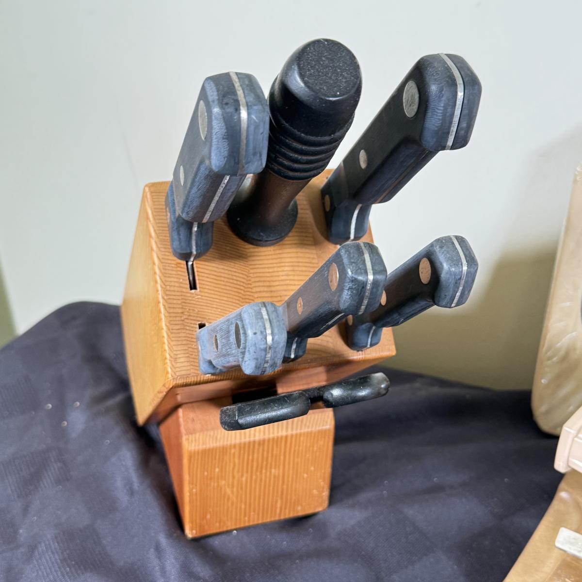 LOT 191K: Farberware Knife Block, General Electric Carving Knife w/ Collection of Knives & Cutting Boards