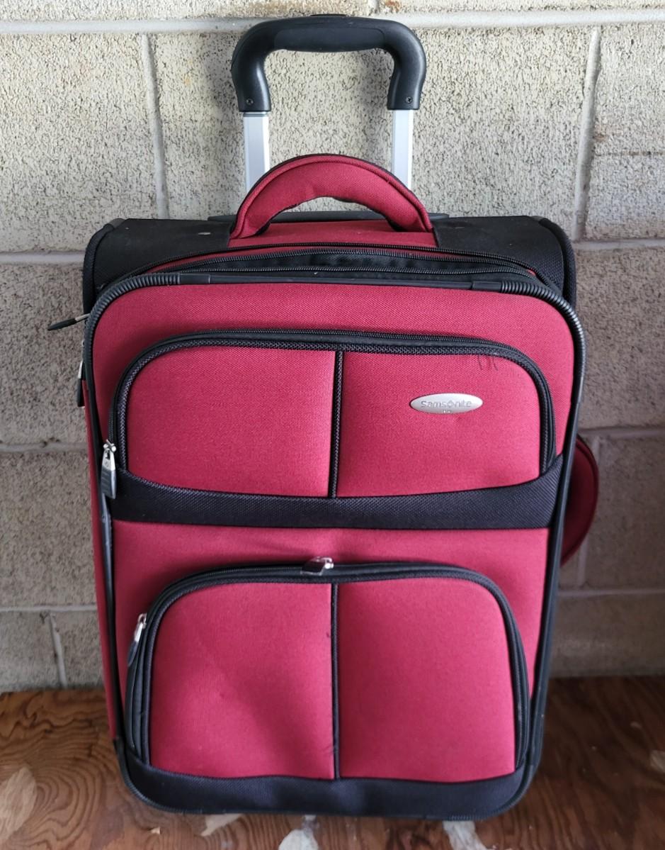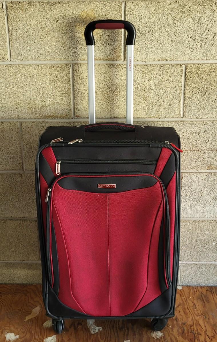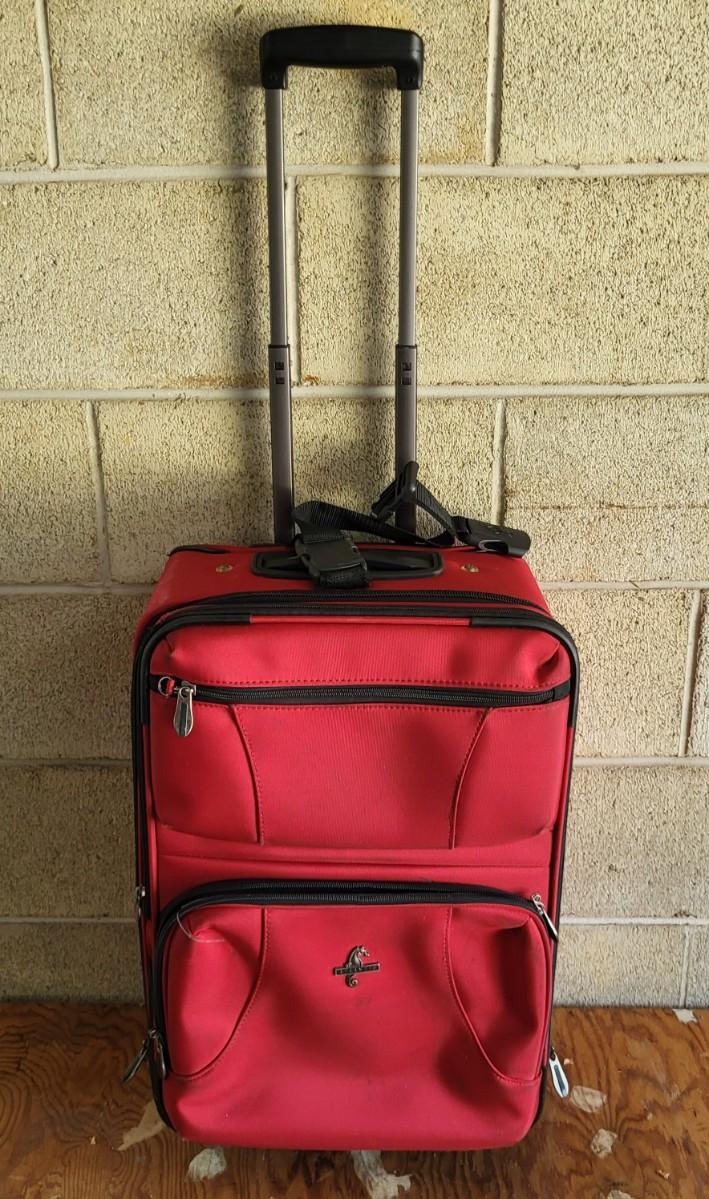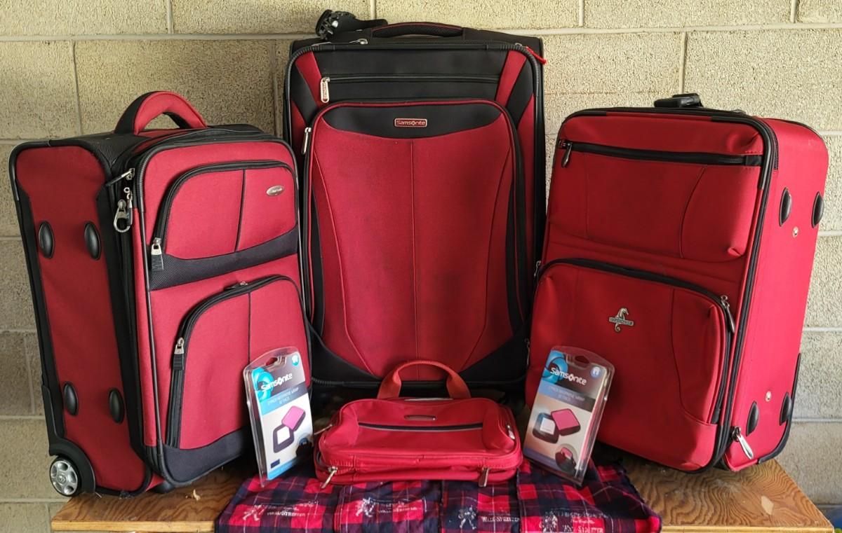 LOT 202G: Three Red and Black Travel Luggage with Various Accessories