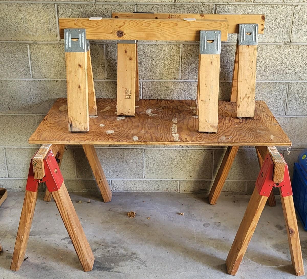 LOT 208G: Four Sawhorse Brackets and Table Top