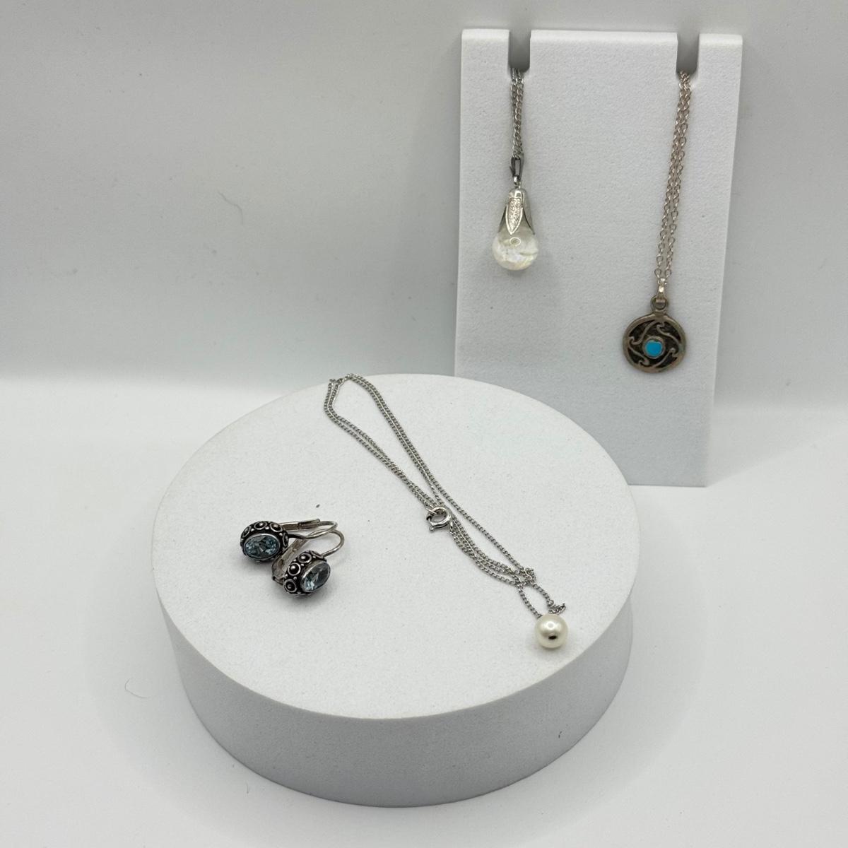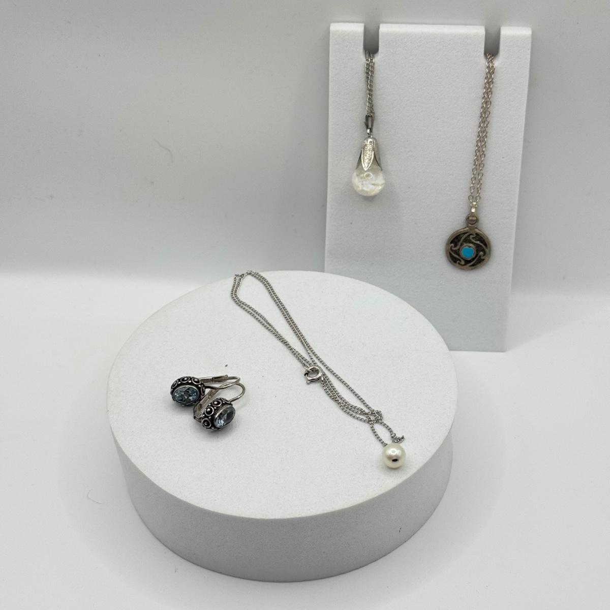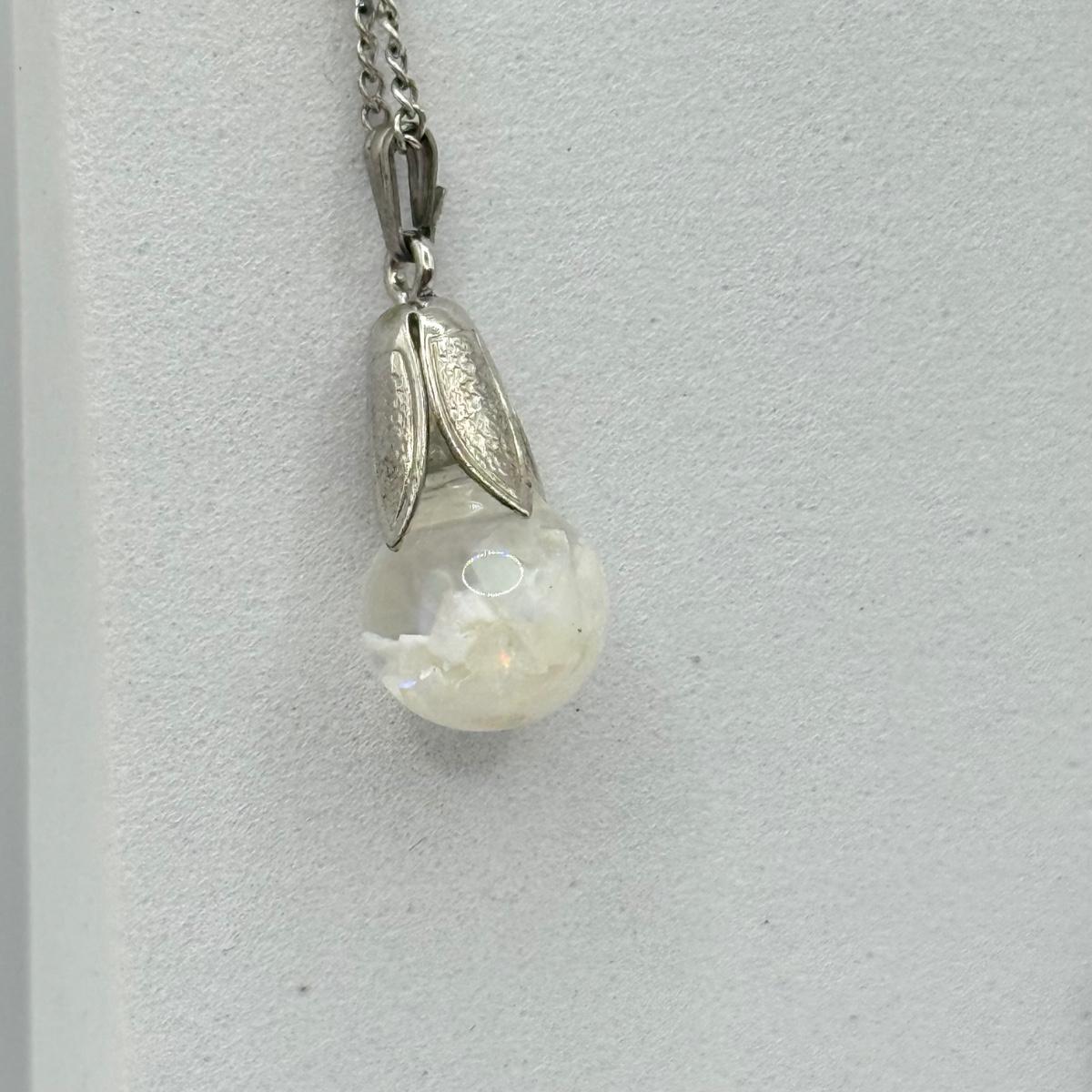 LOT 212J: 925 Sterling Silver Jewelry (11.38gtw) featuring Sterling Floating Opal Tulip Cap Pendant Necklace