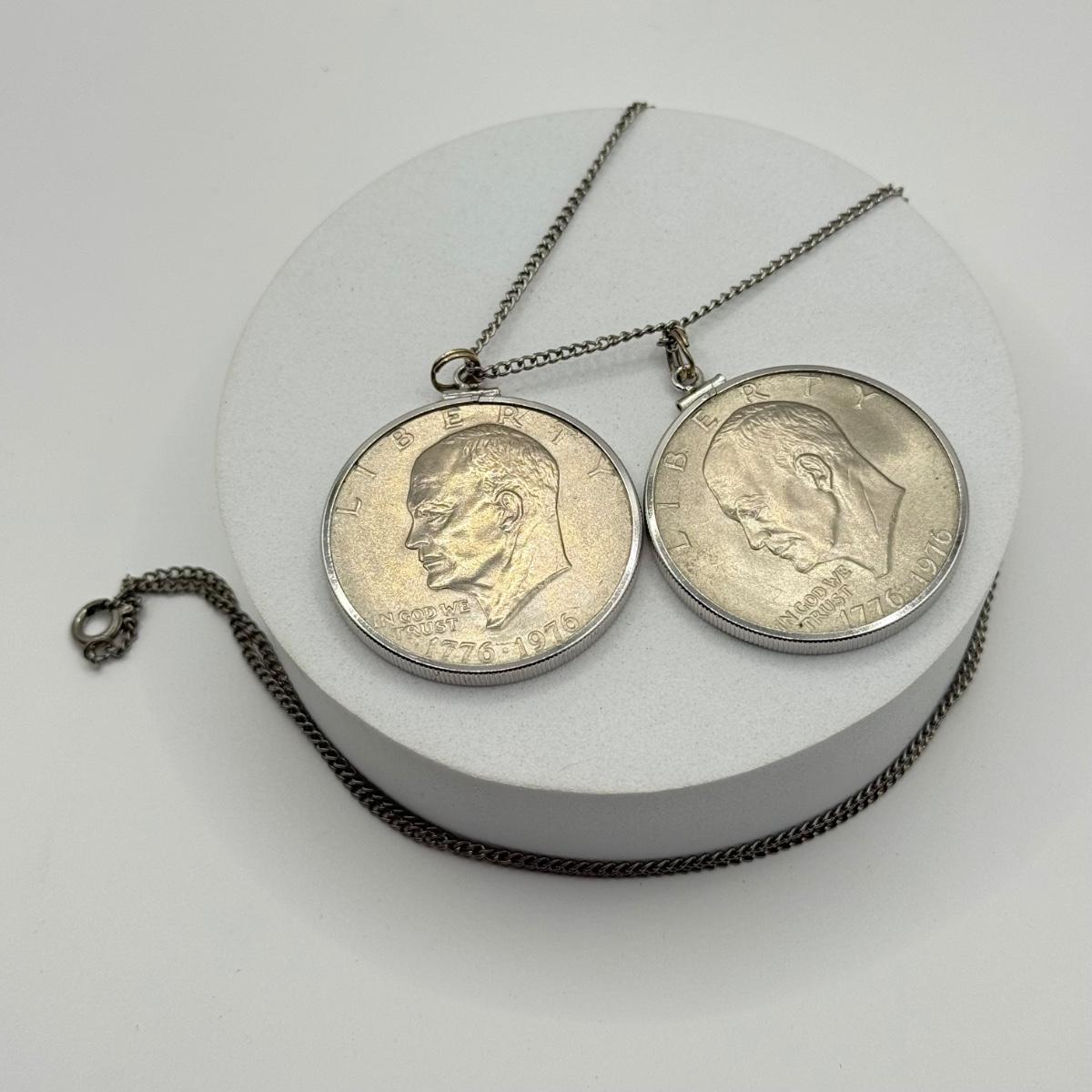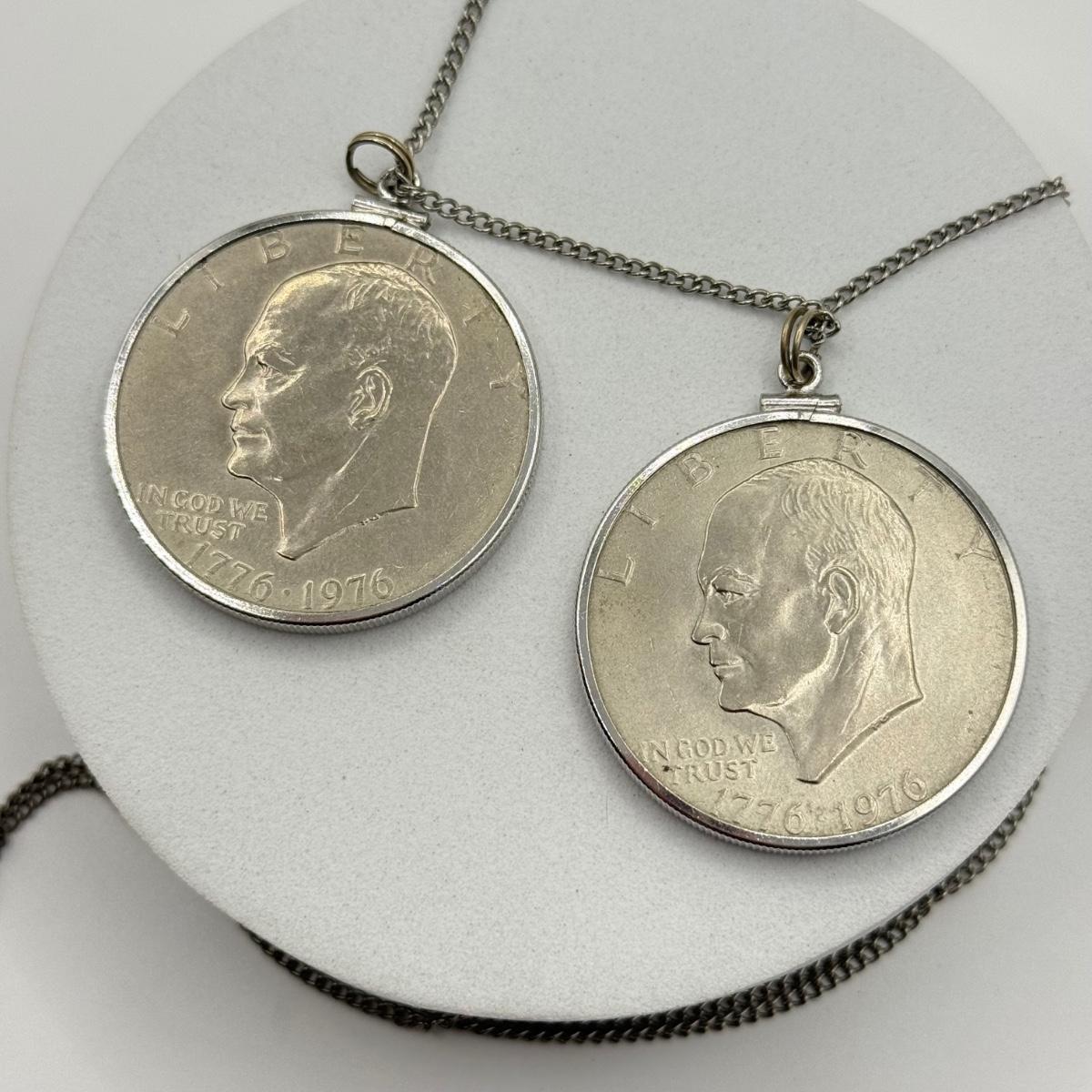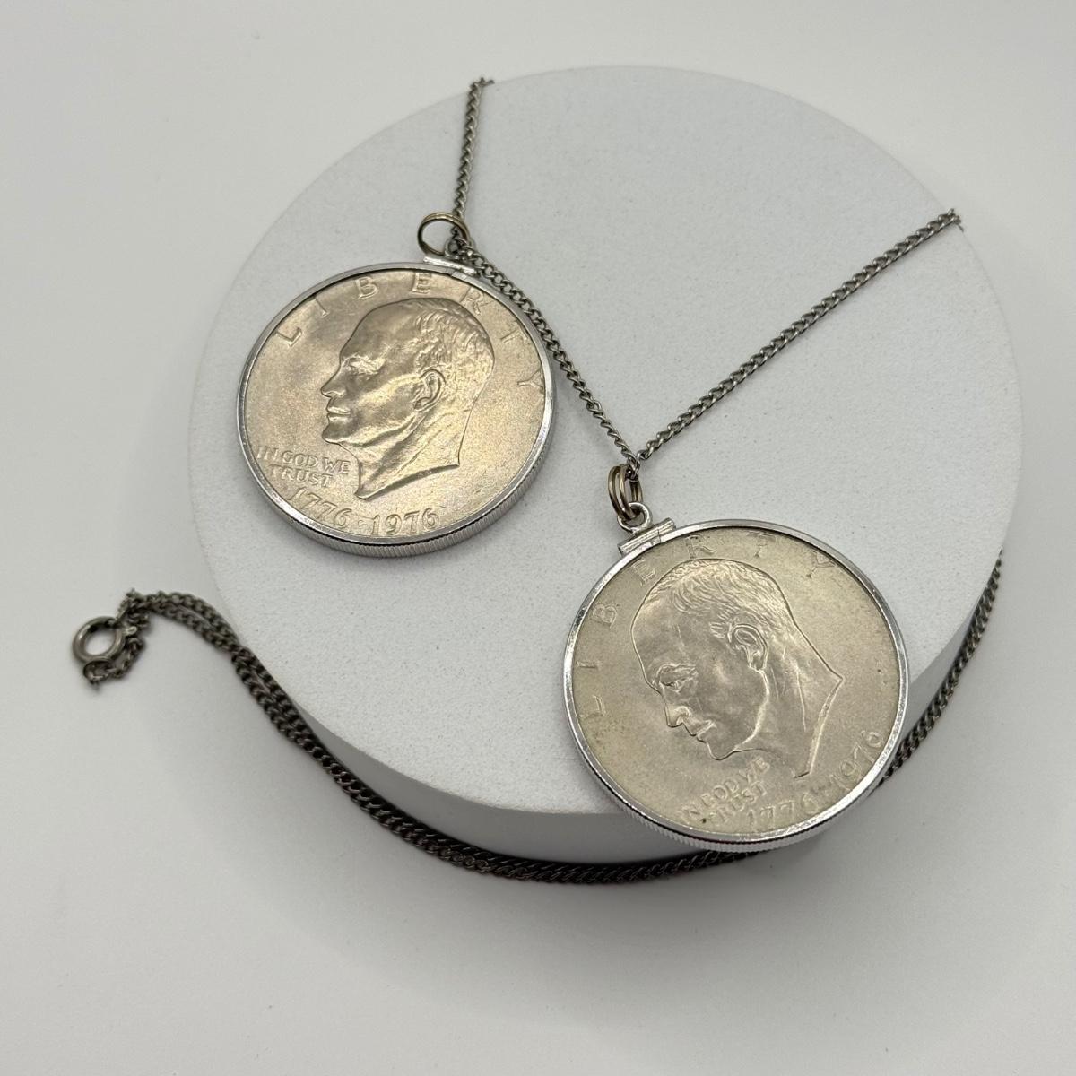LOT 213J: Two US Bicentennial One Dollar (USD) Coin Pendants on 26” Chain