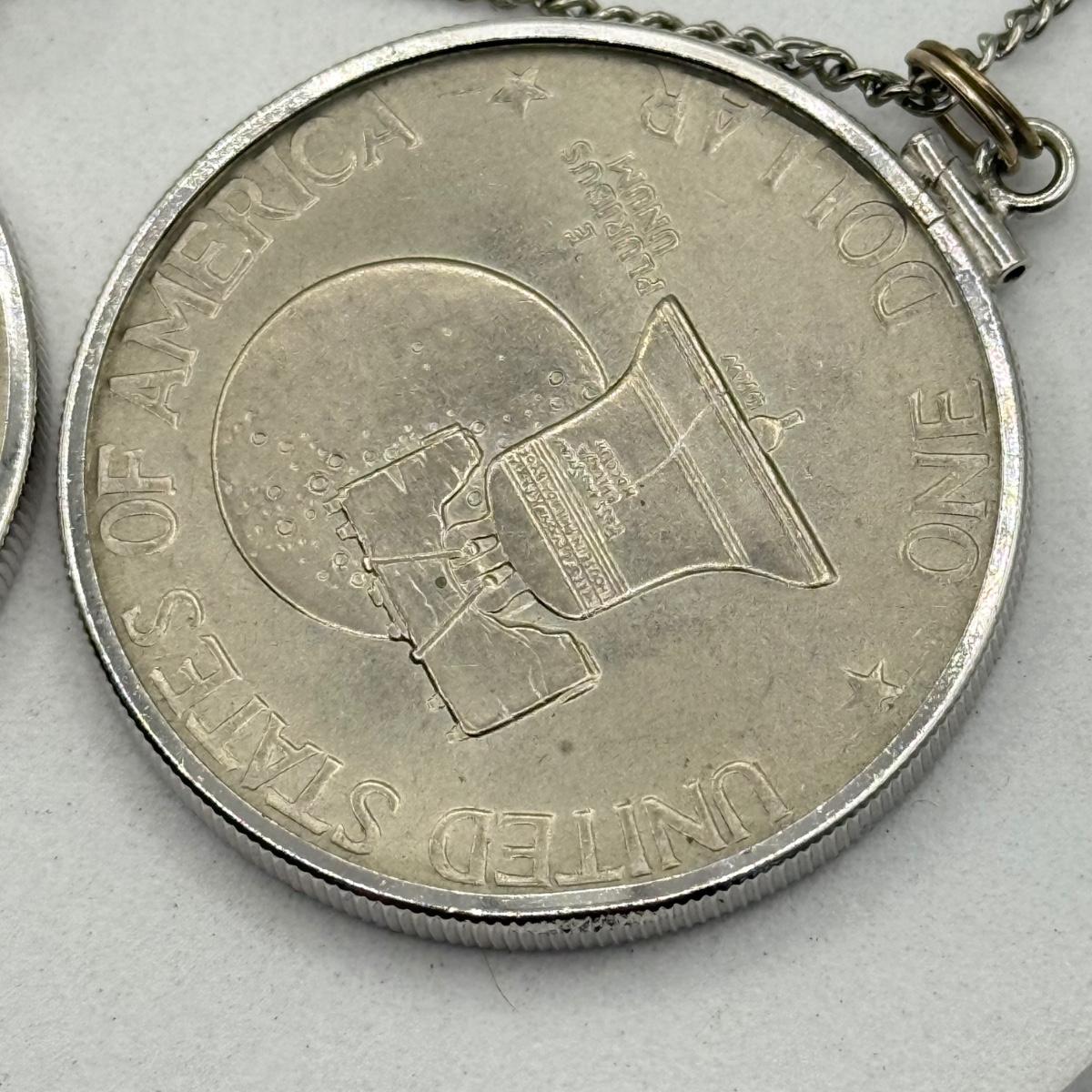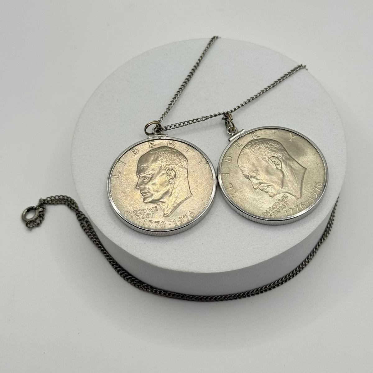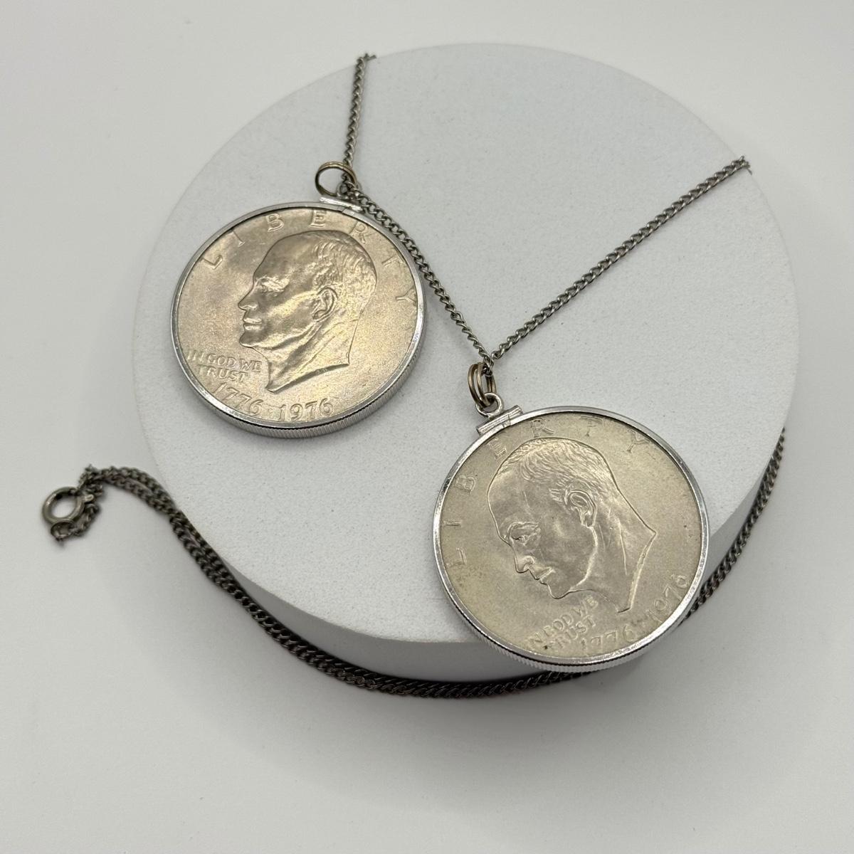 LOT 213J: Two US Bicentennial One Dollar (USD) Coin Pendants on 26” Chain