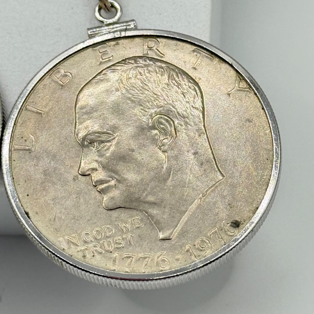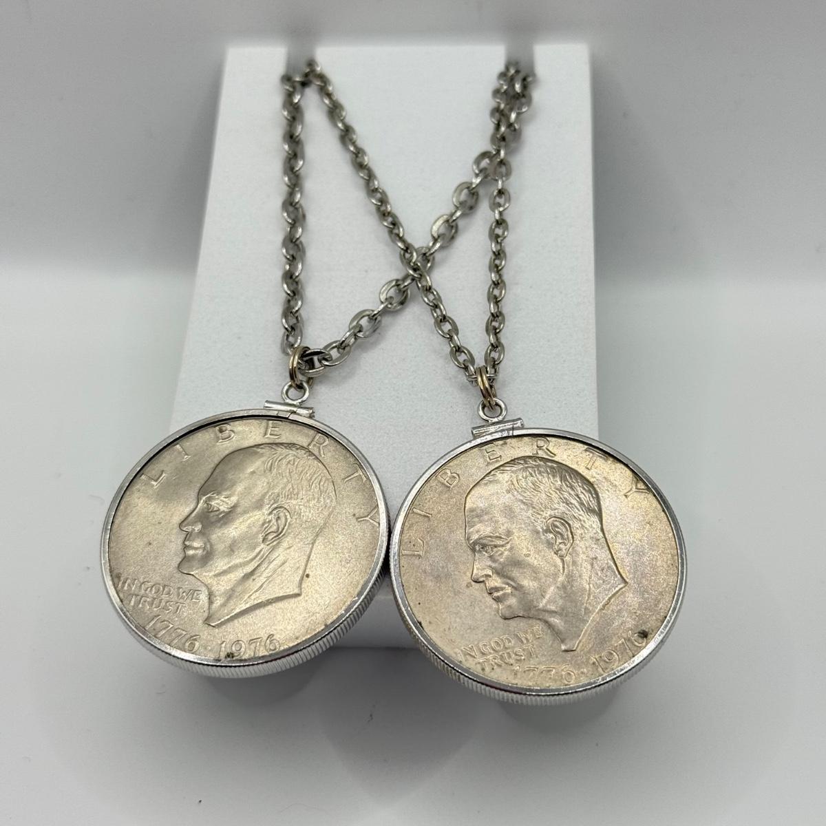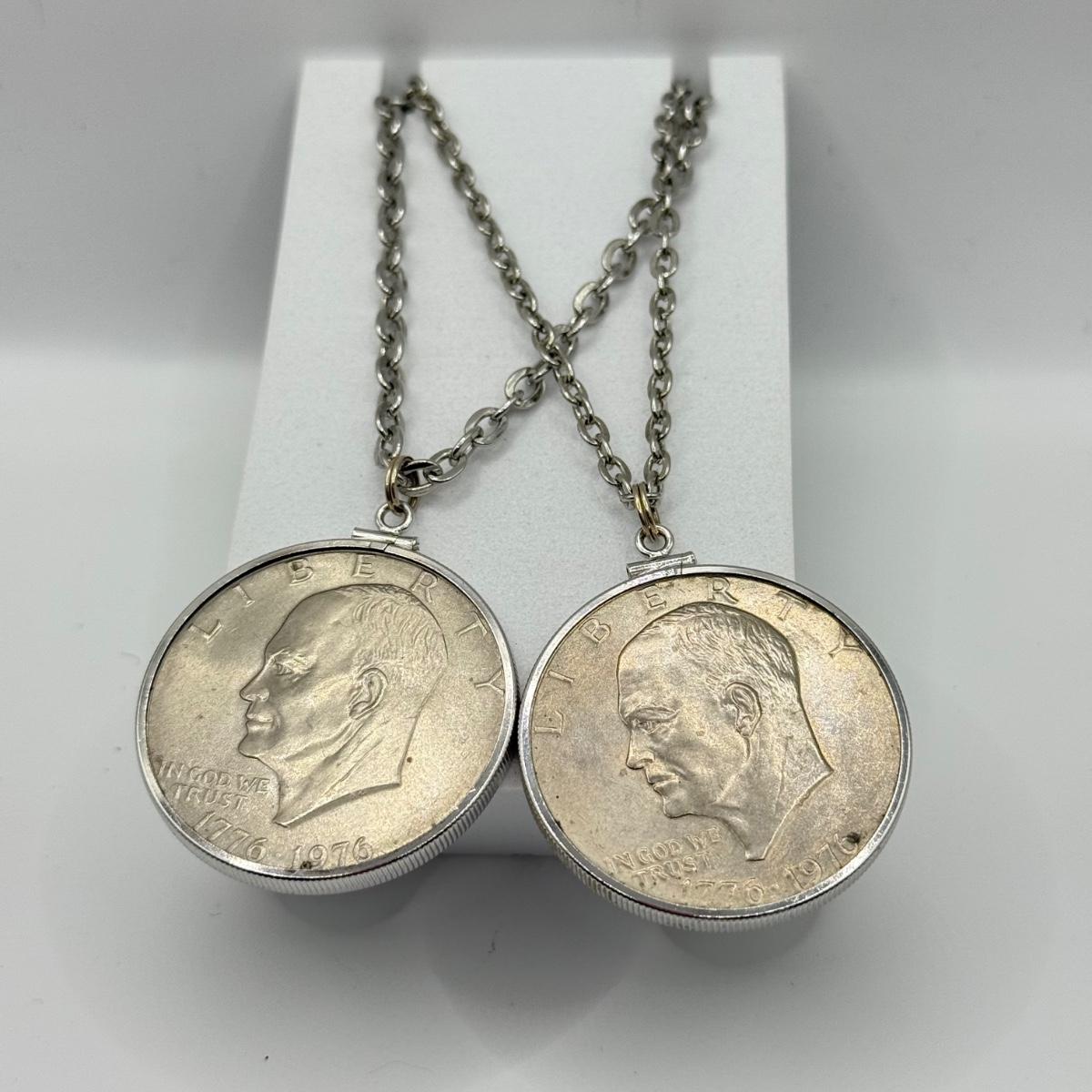 LOT 214J: Bicentennial Coin Pendant Necklaces on 26” & 30” Chains