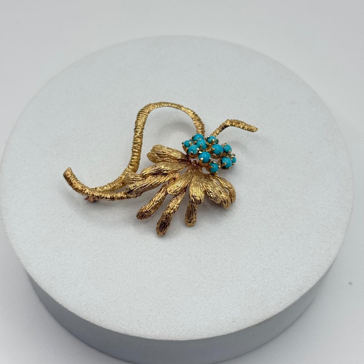 LOT 216J: Turquoise & BR 14K Brooch / Pin