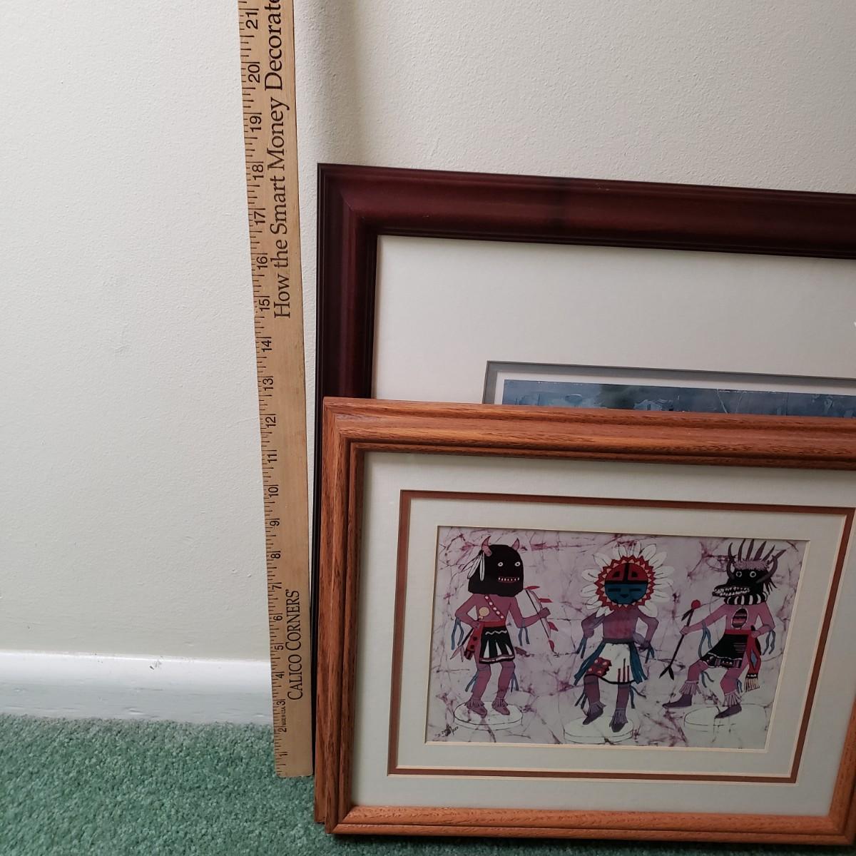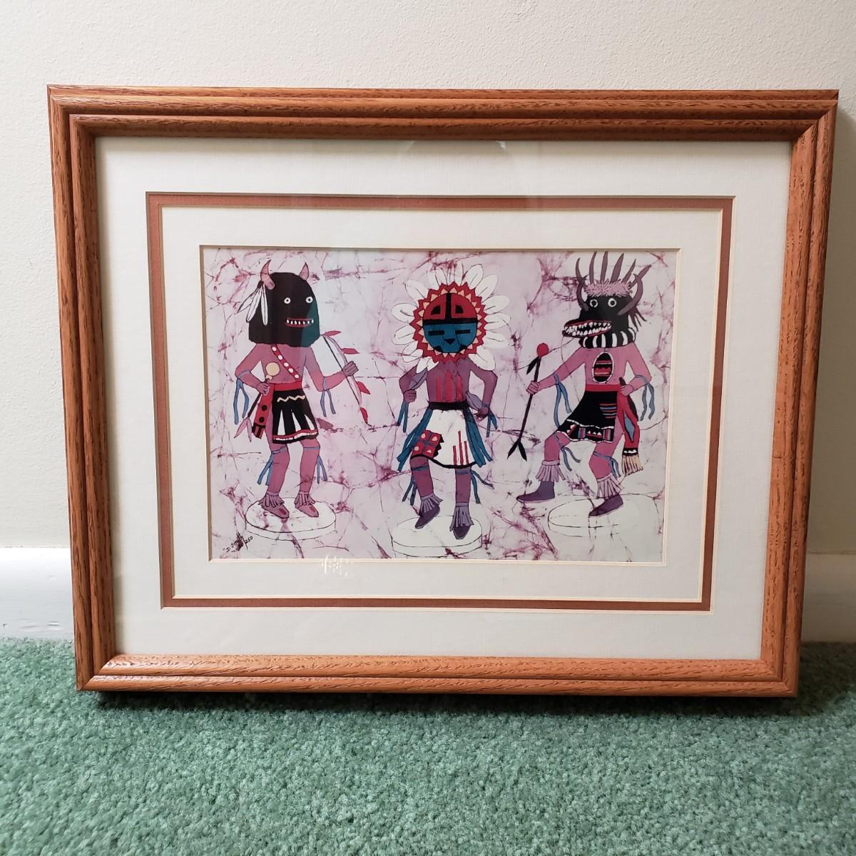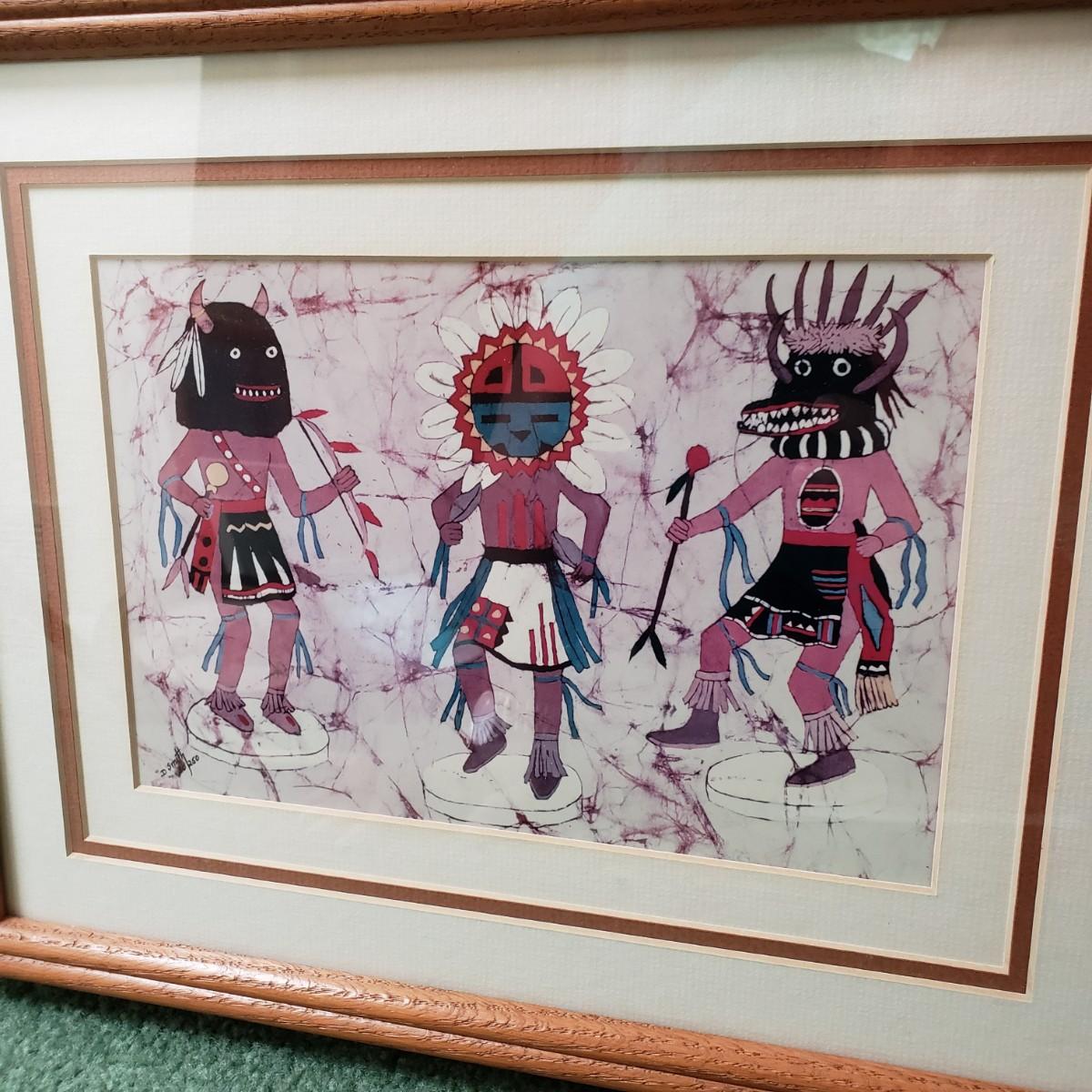 LOT 221Z: Art Collection; Ice Skating on River Pond and Native American Batik Art