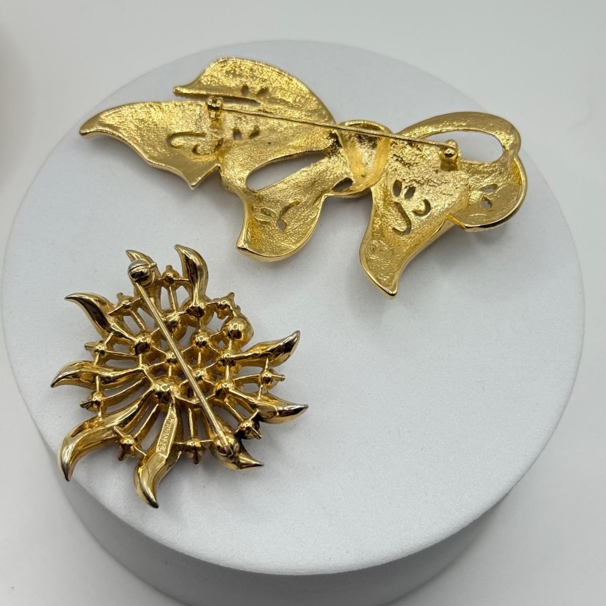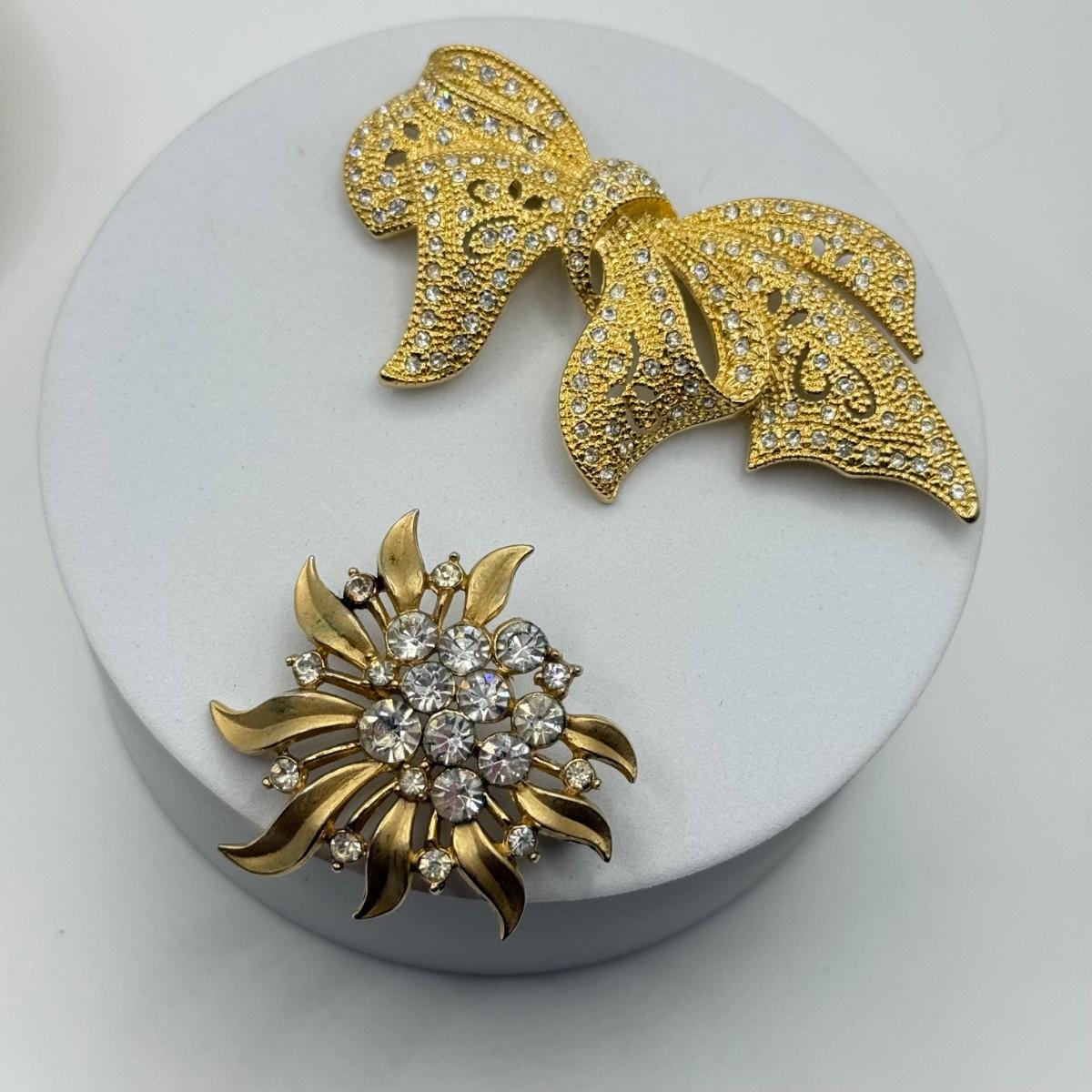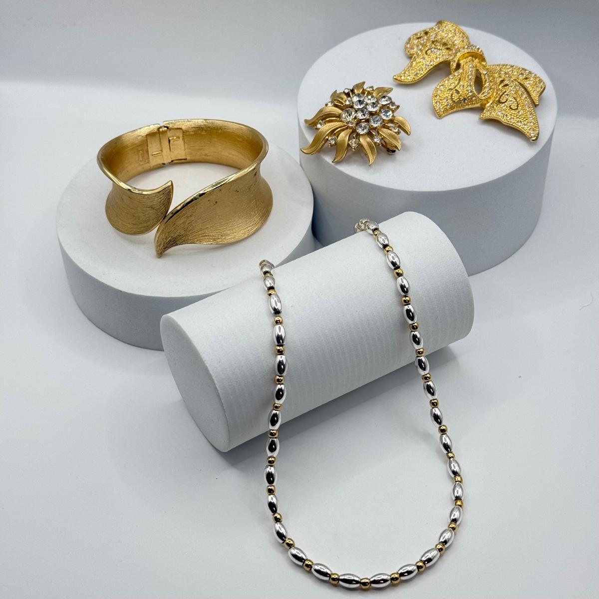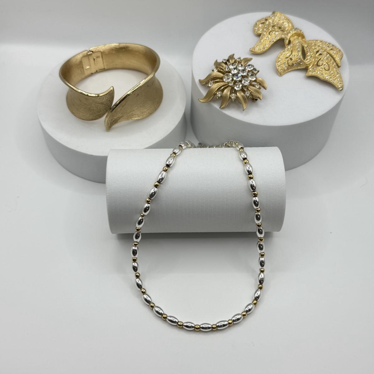 LOT 237J: Fabulous Vintage Lot: Napier Bow Brooch & Necklace, "Crown" Trifari Brooch & a hinged bangle bracelet