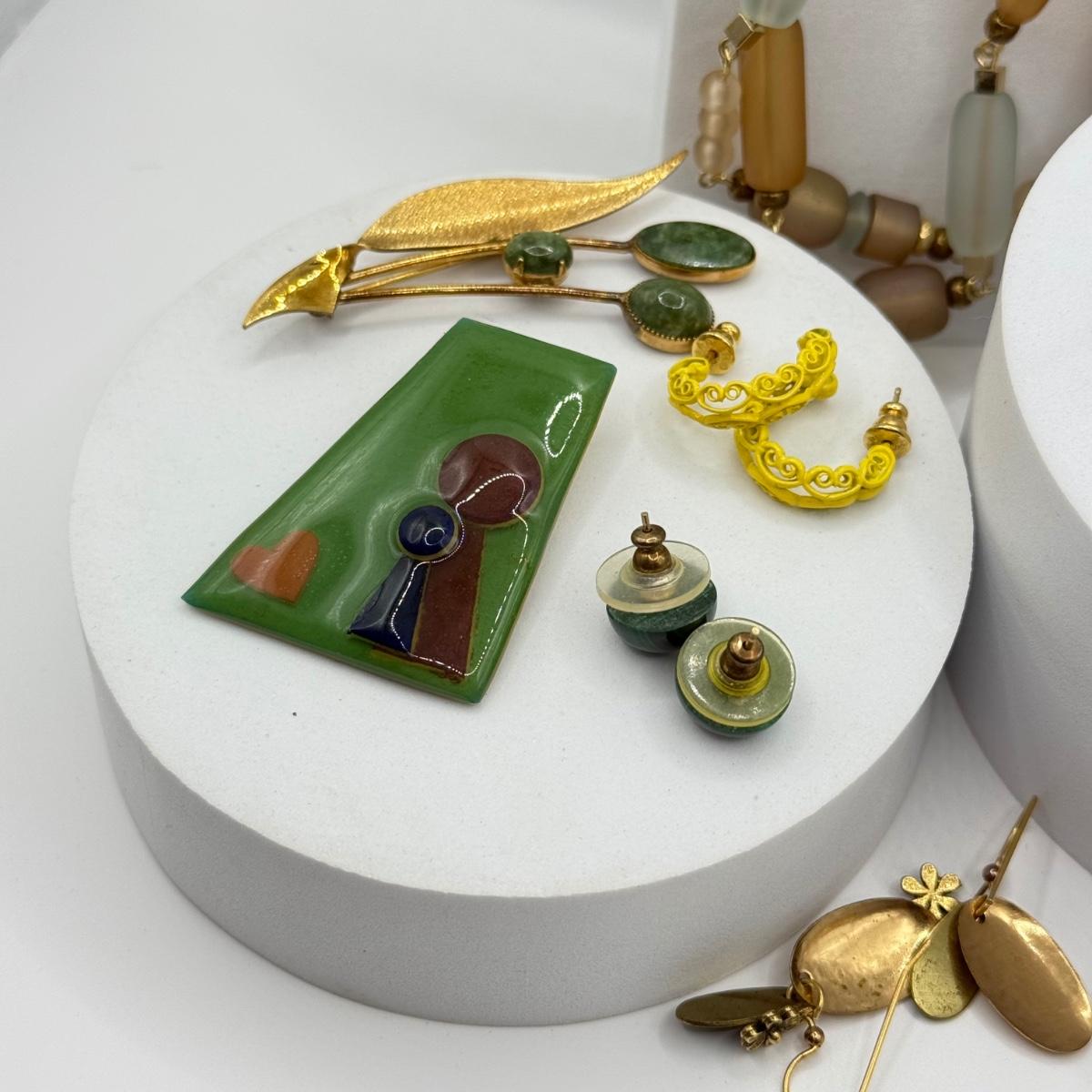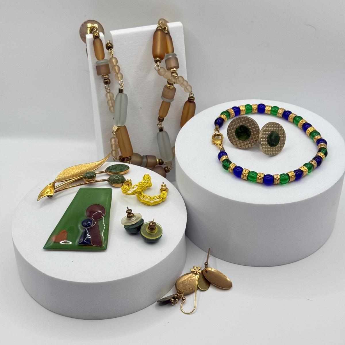 LOT 243J: Collection of Green & Blue Jewelry & More featuring Liz Claiborne Necklace and Lucinda People Pin