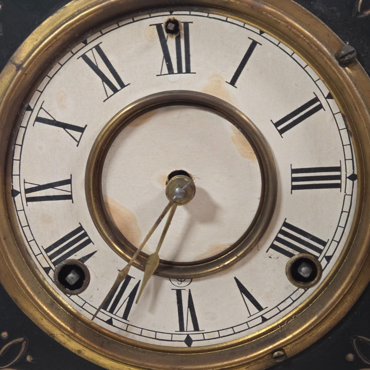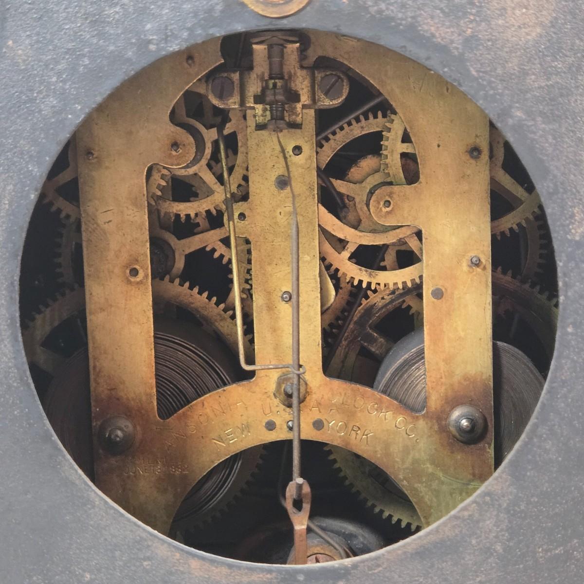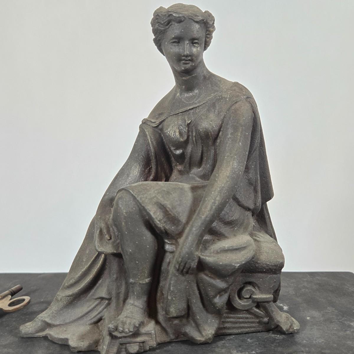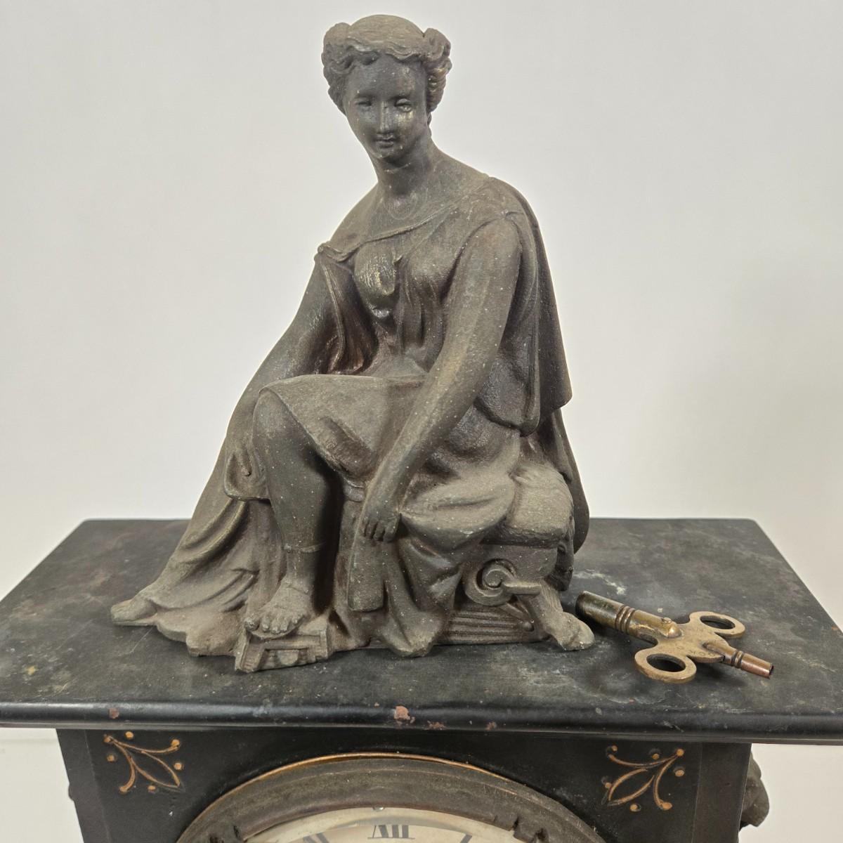 LOT 7D: Antique 1800s Cast Iron Ansonia Mantel Clock with Seated Figure