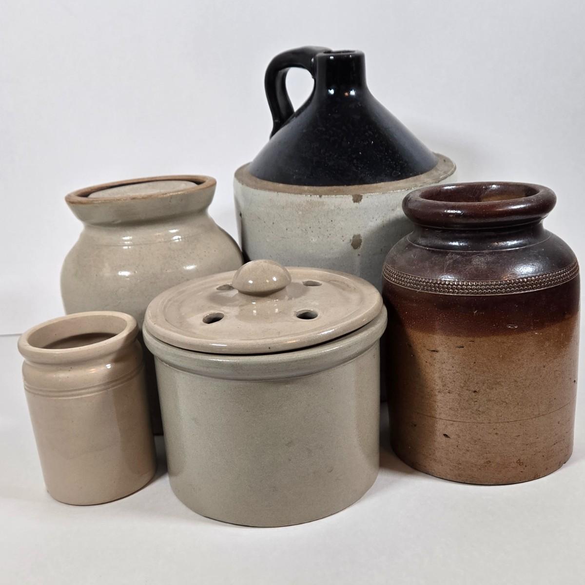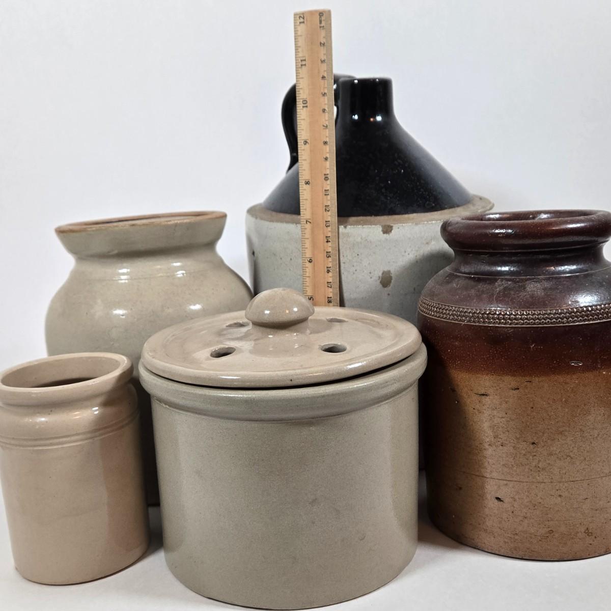 LOT 11D: Multiple Vintage Crocks Including Bentson-West Design Pottery