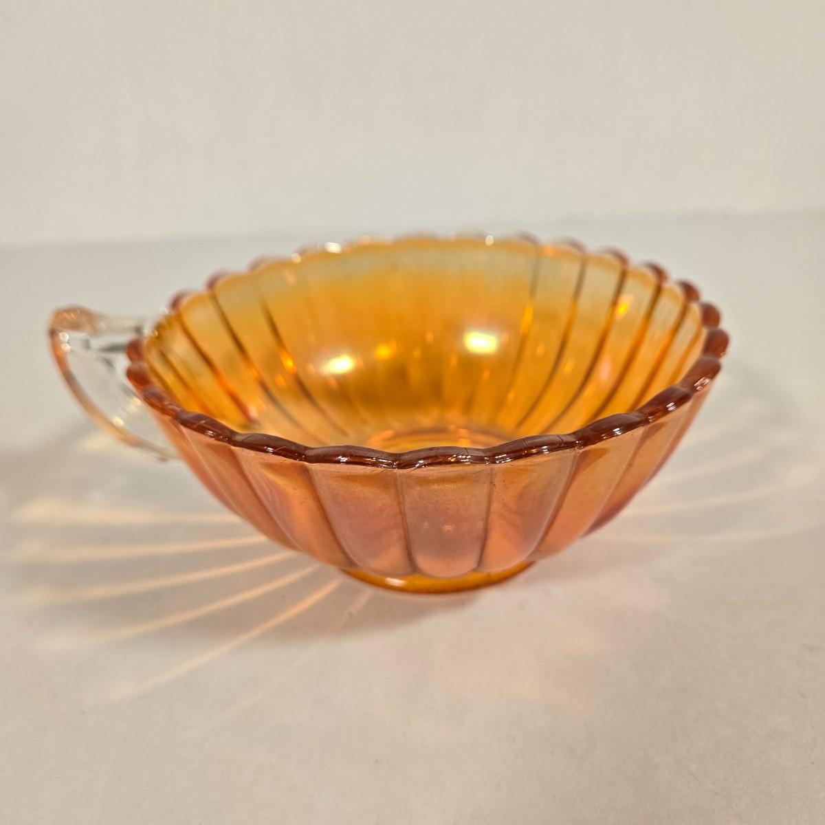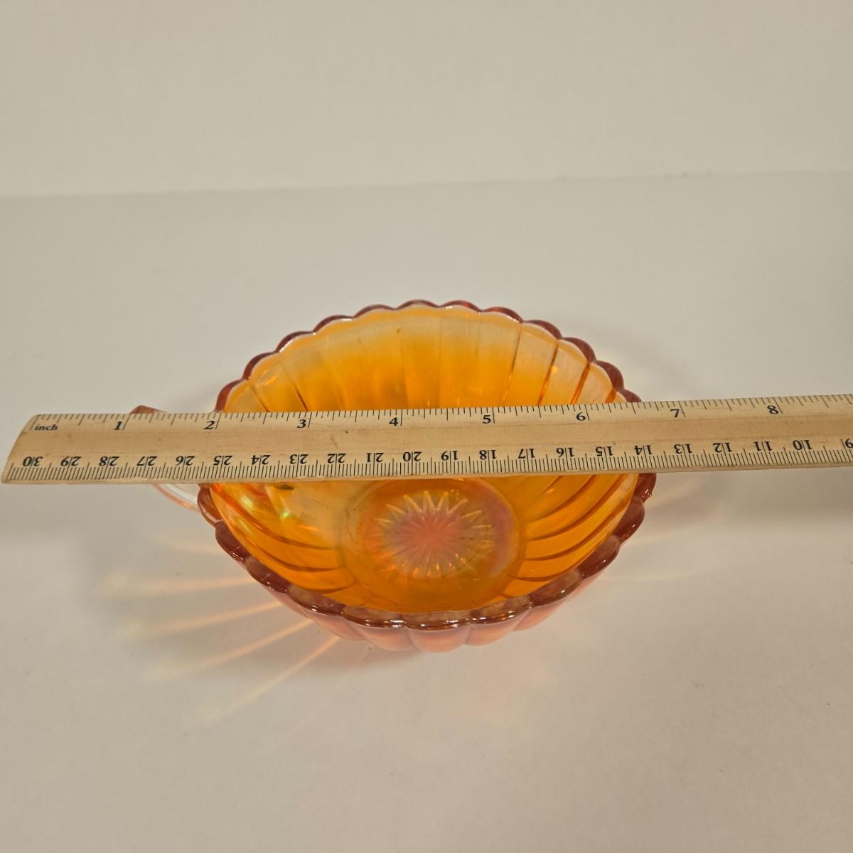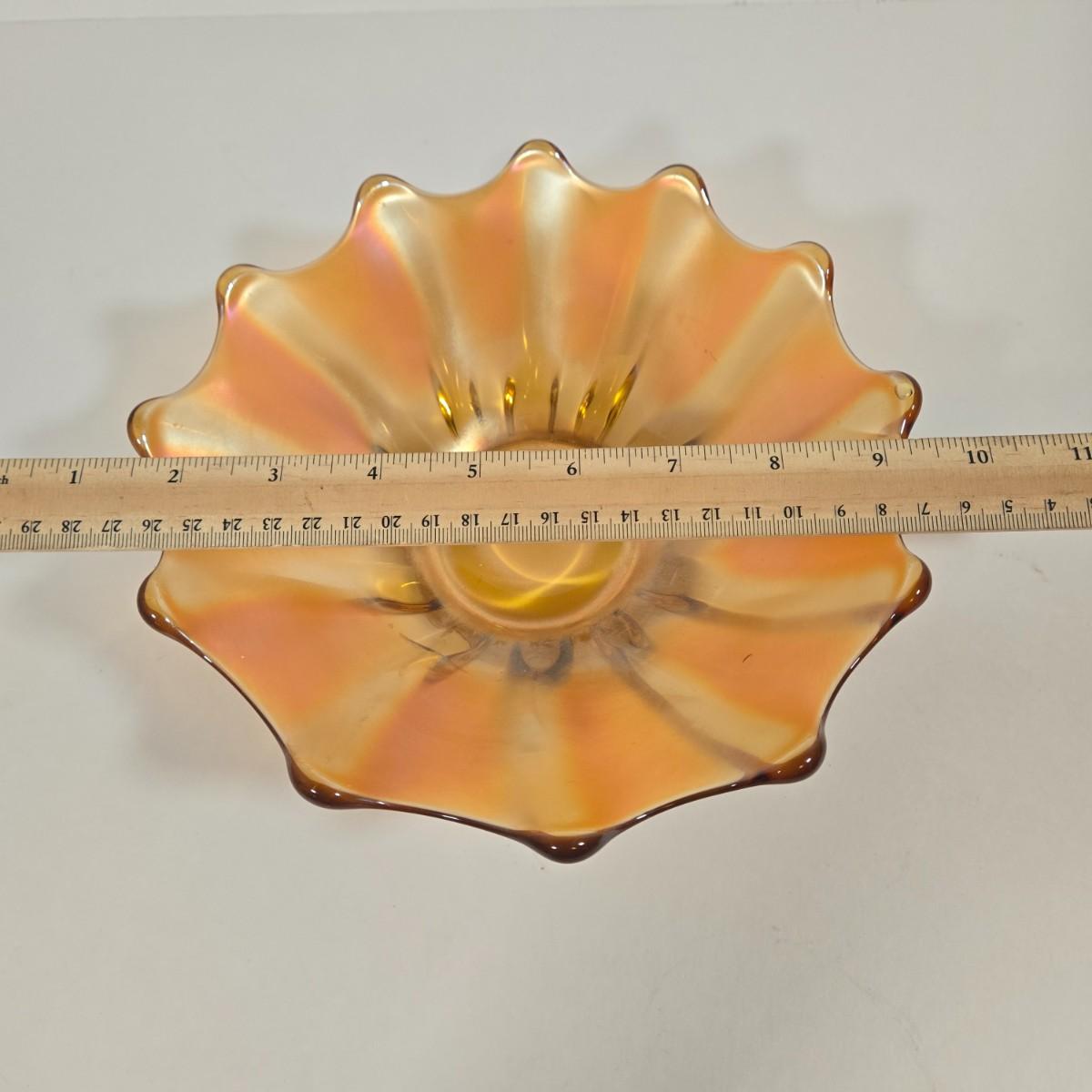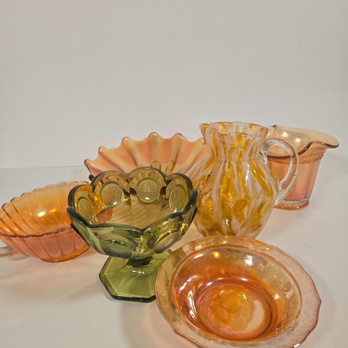 LOT 20D: Vintage Pieces of Carnival Glass, Fostoria Coin Olive Green Compote Dish, and More