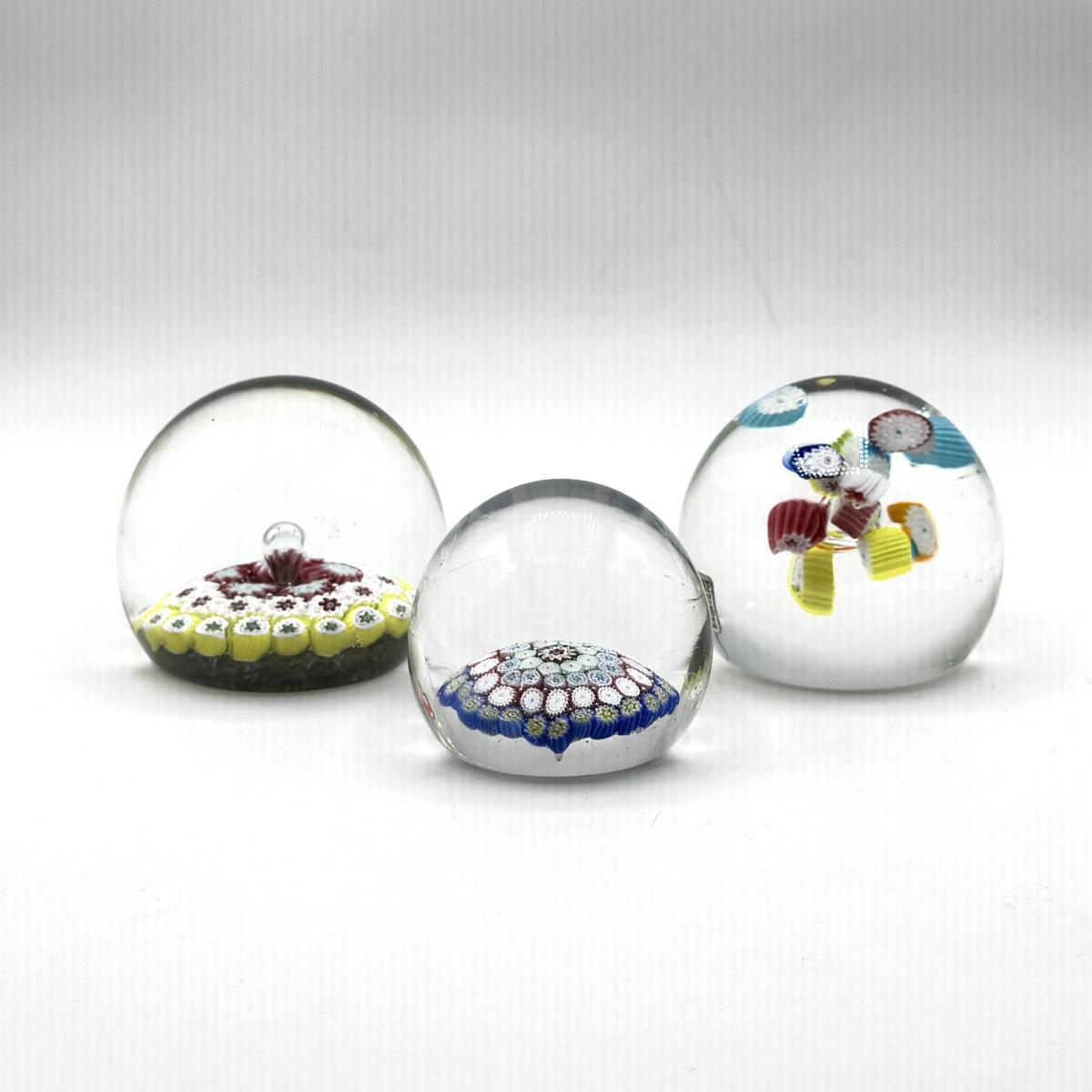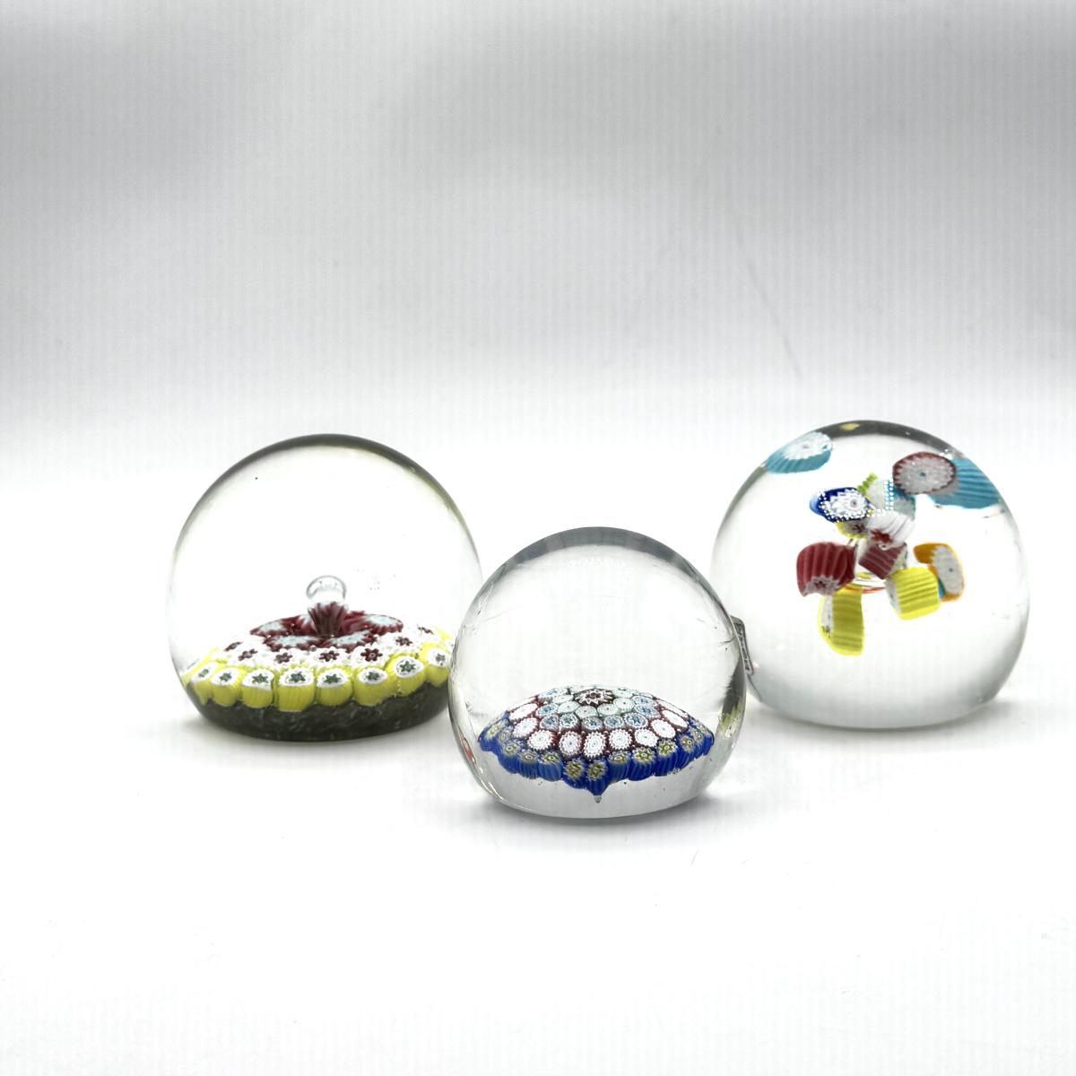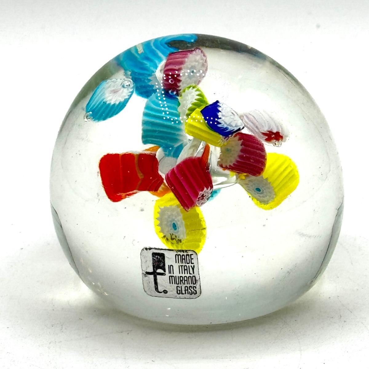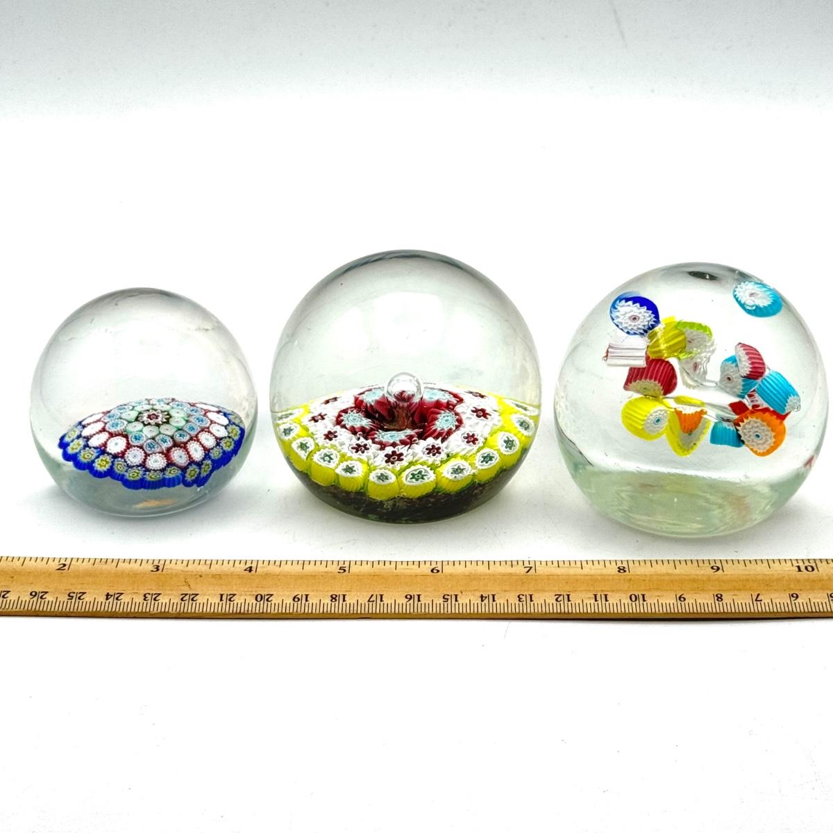 LOT 21K: 3 Vintage Murano Made in Italy Glass Paperweights Featuring the Millefiori Technique