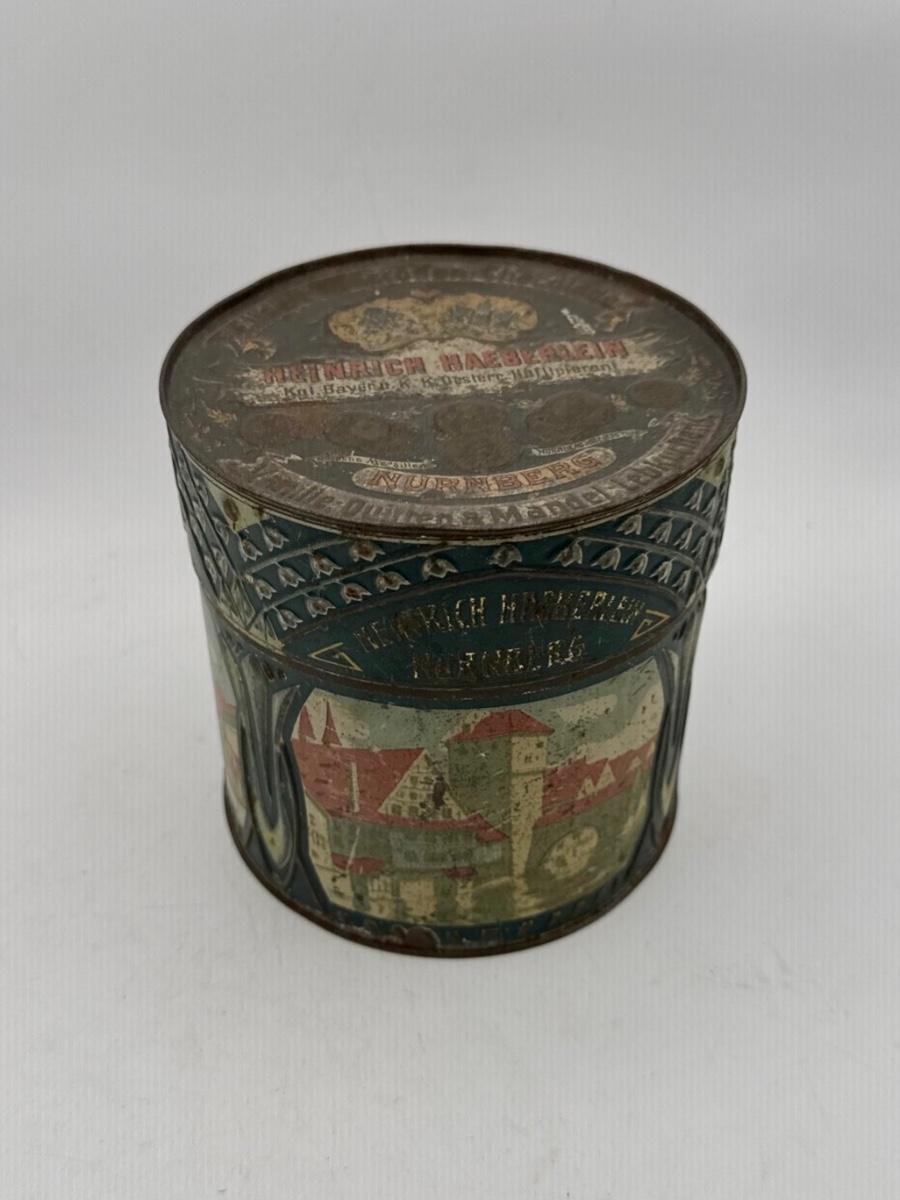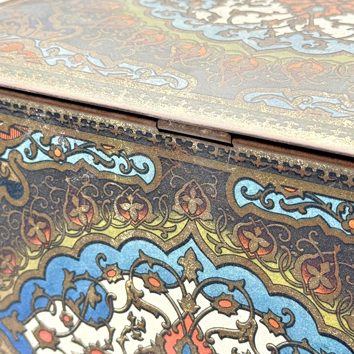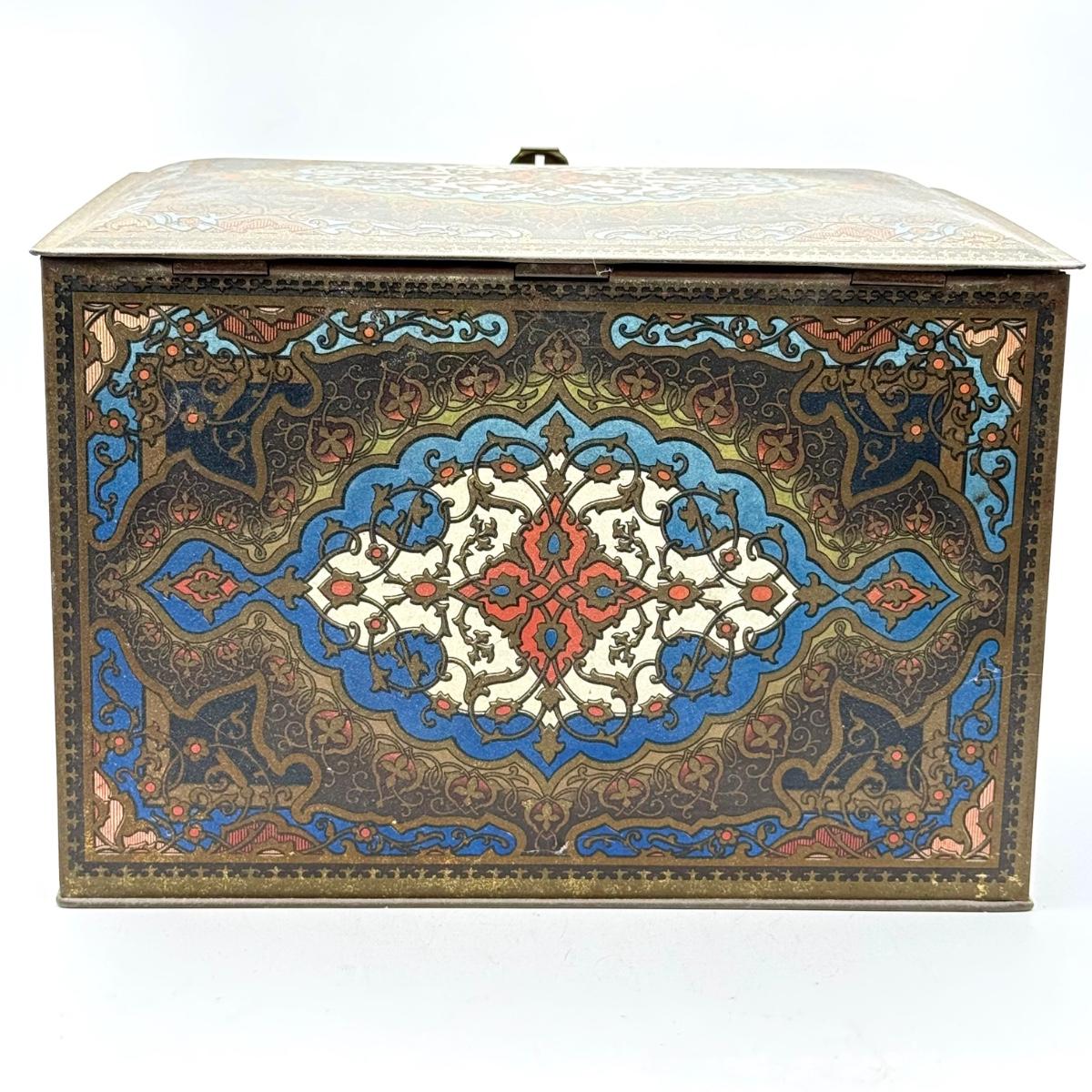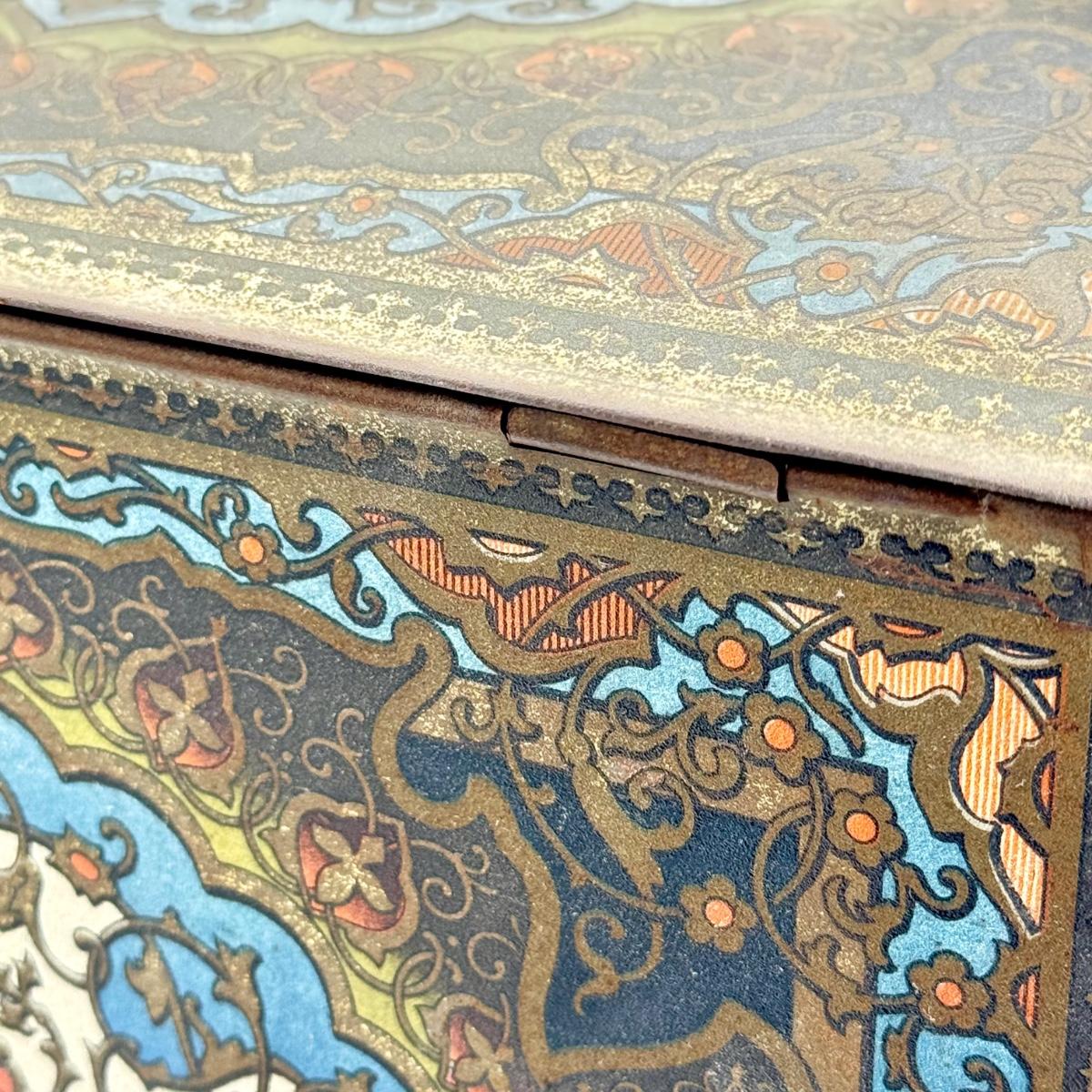 LOT 45P: Assortment of Vintage Tins Including: German Haeberlein-Metzger Gingerbread Tin; Heinz 57 Company Large Biscuit Tin Box; Bunte Marshmallows Tin; and Fatima 100 Turkish Blend Cigarettes Tin