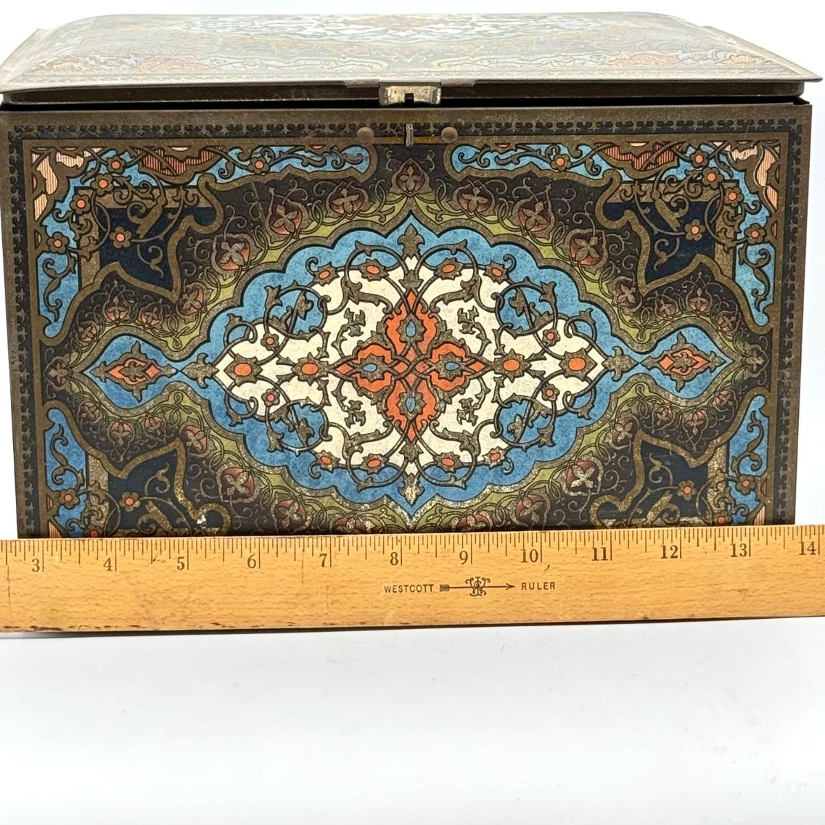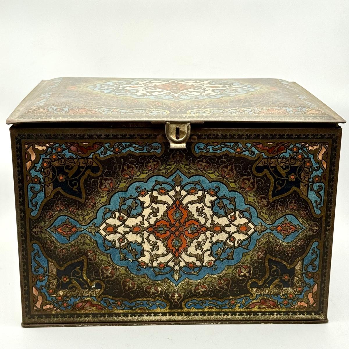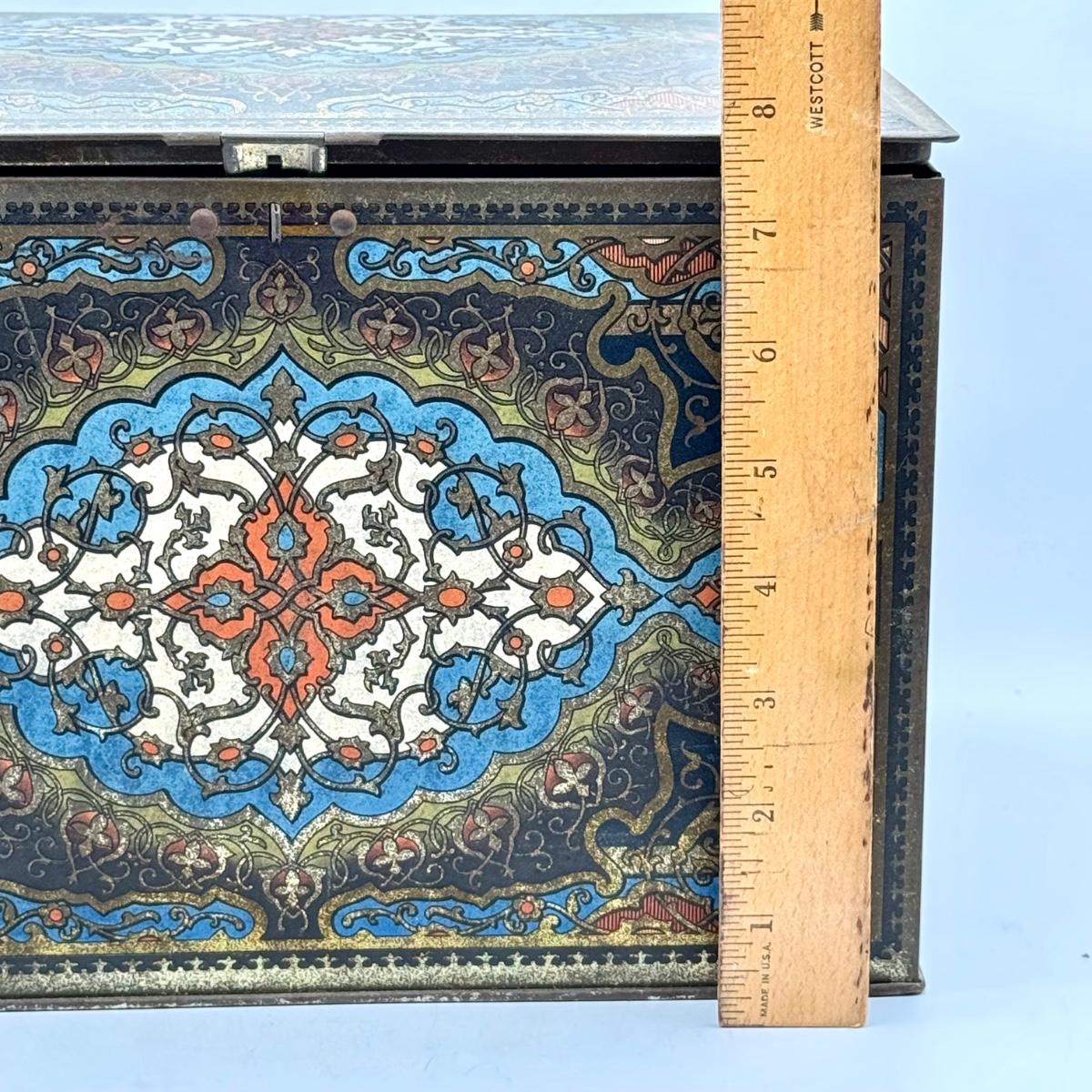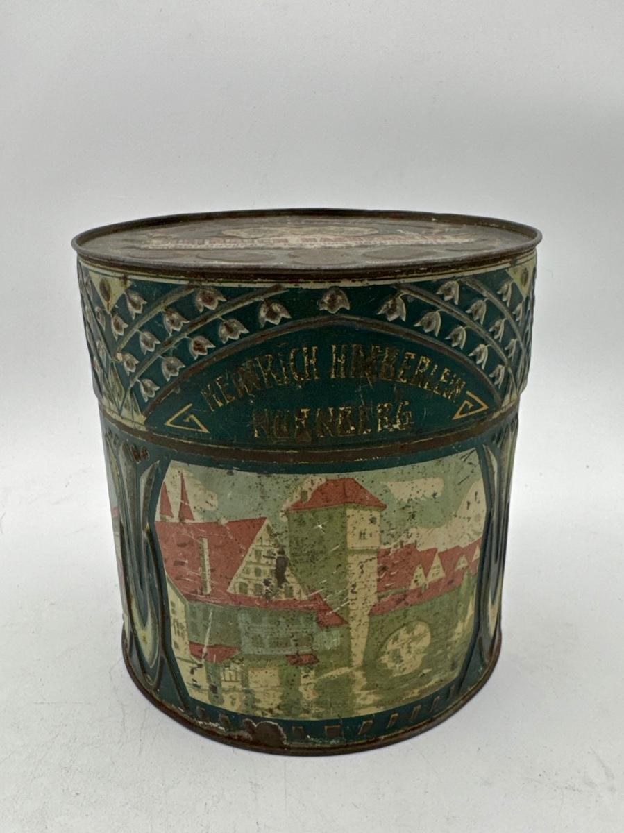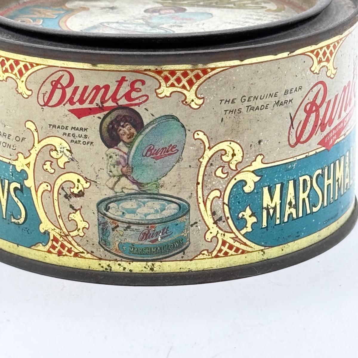 LOT 45P: Assortment of Vintage Tins Including: German Haeberlein-Metzger Gingerbread Tin; Heinz 57 Company Large Biscuit Tin Box; Bunte Marshmallows Tin; and Fatima 100 Turkish Blend Cigarettes Tin