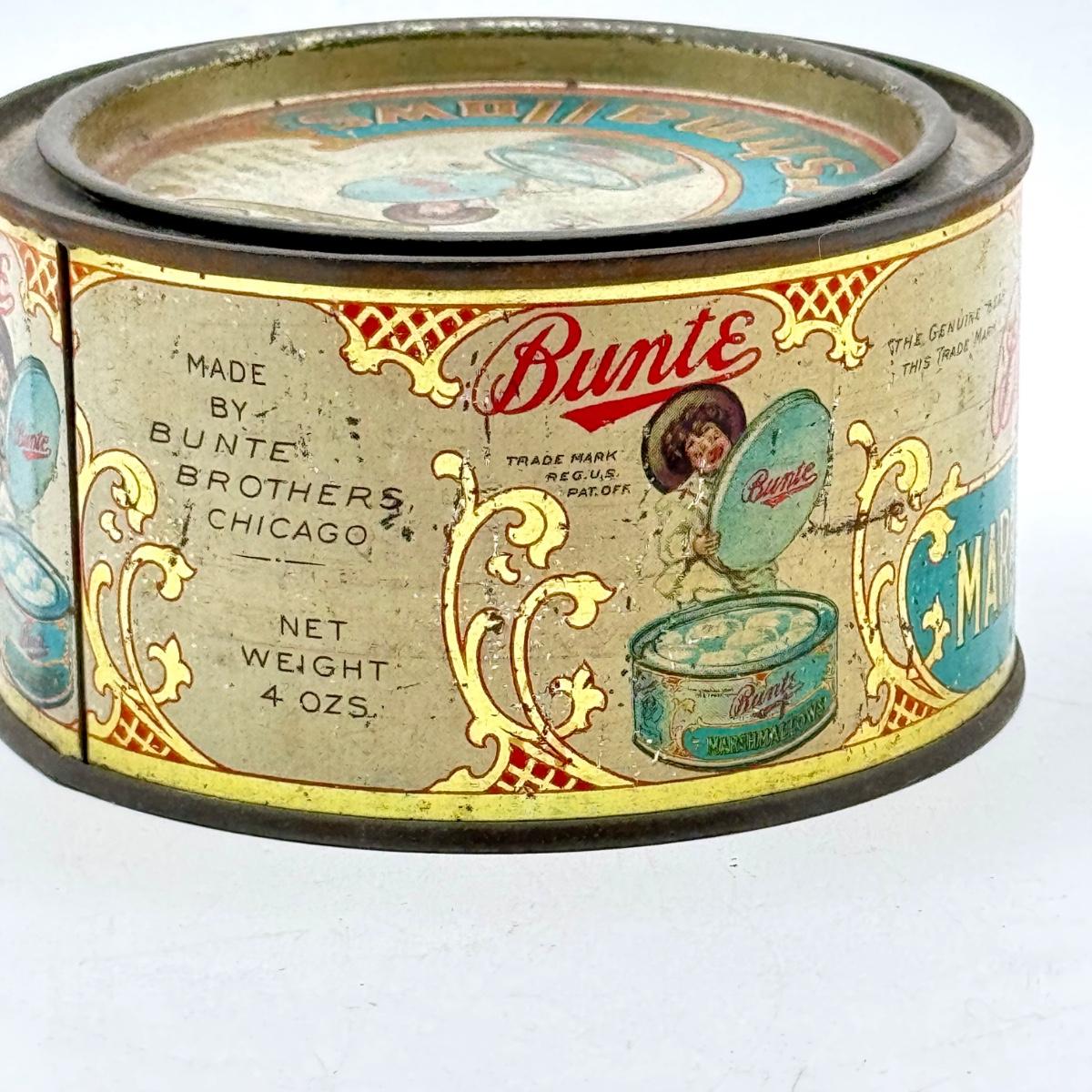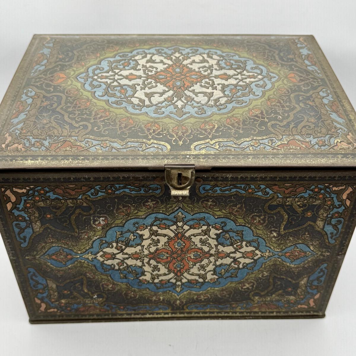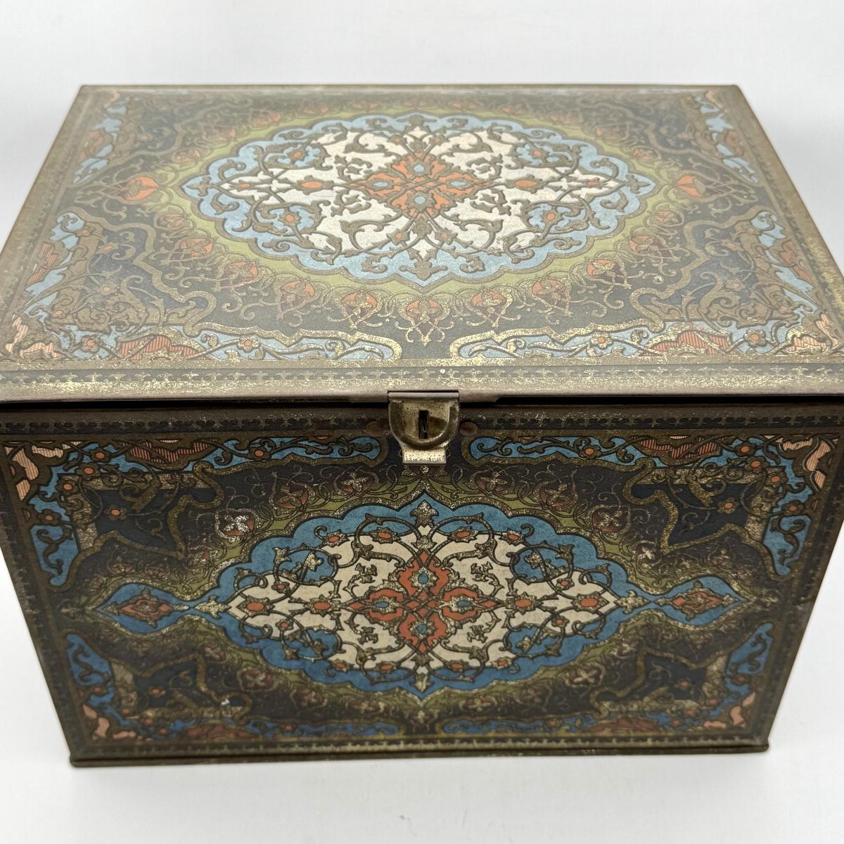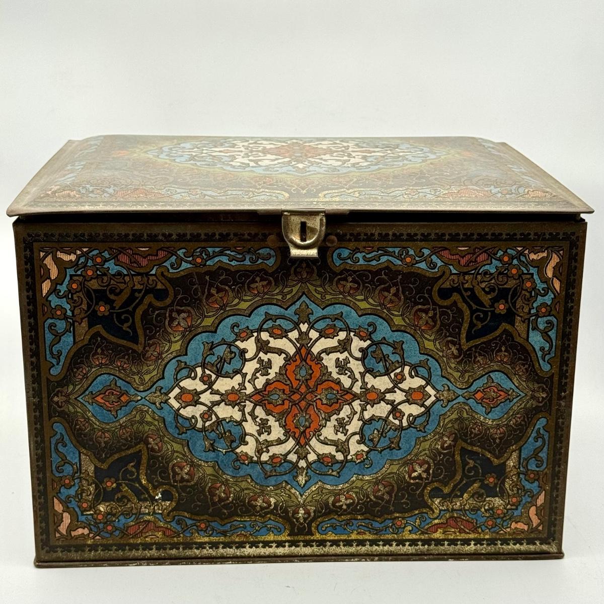 LOT 45P: Assortment of Vintage Tins Including: German Haeberlein-Metzger Gingerbread Tin; Heinz 57 Company Large Biscuit Tin Box; Bunte Marshmallows Tin; and Fatima 100 Turkish Blend Cigarettes Tin