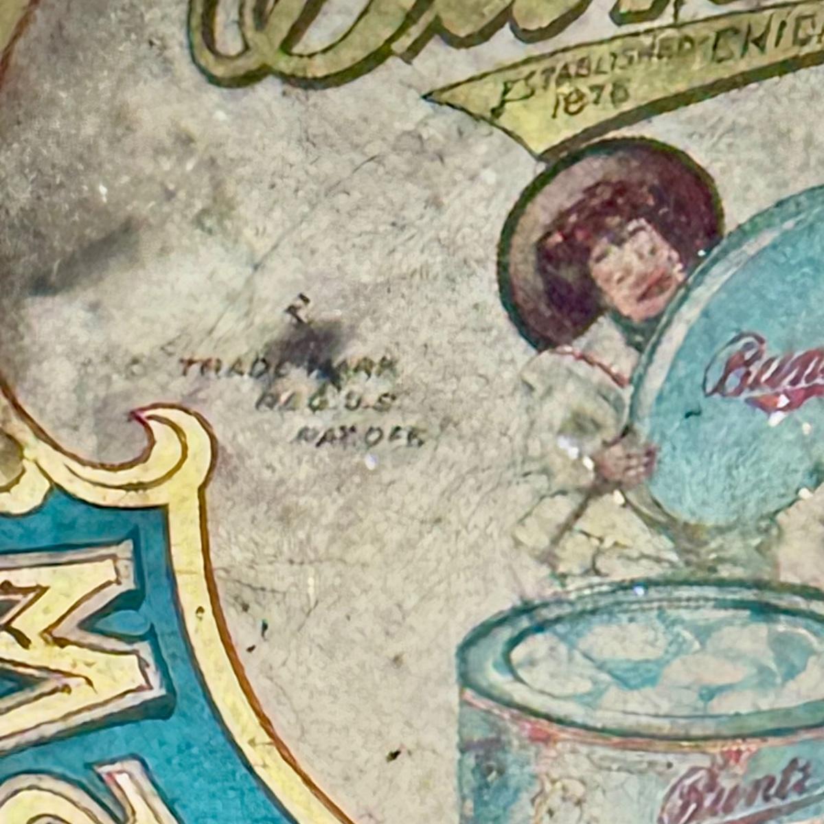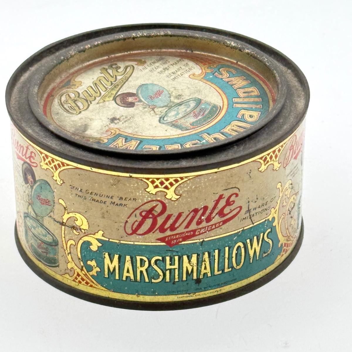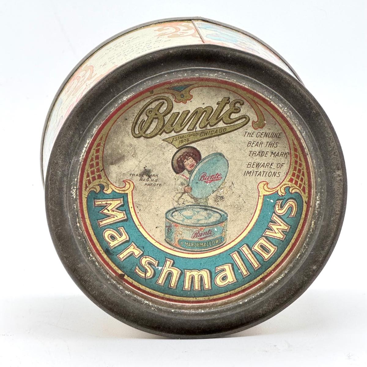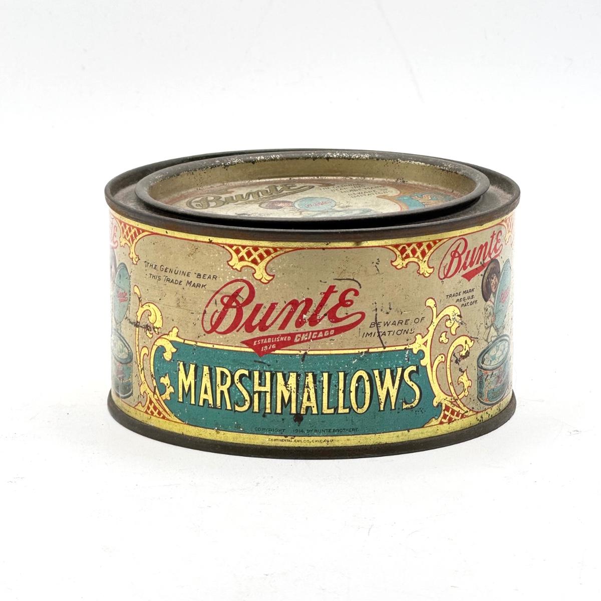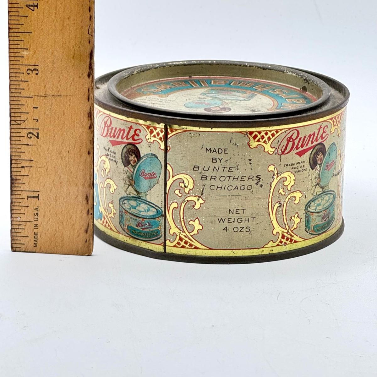 LOT 45P: Assortment of Vintage Tins Including: German Haeberlein-Metzger Gingerbread Tin; Heinz 57 Company Large Biscuit Tin Box; Bunte Marshmallows Tin; and Fatima 100 Turkish Blend Cigarettes Tin