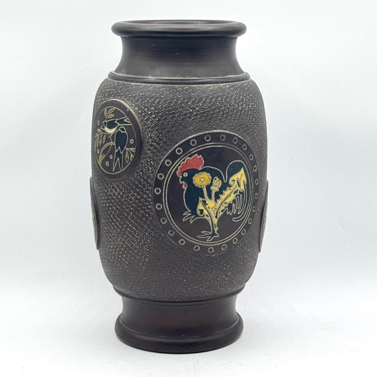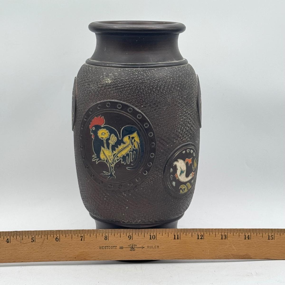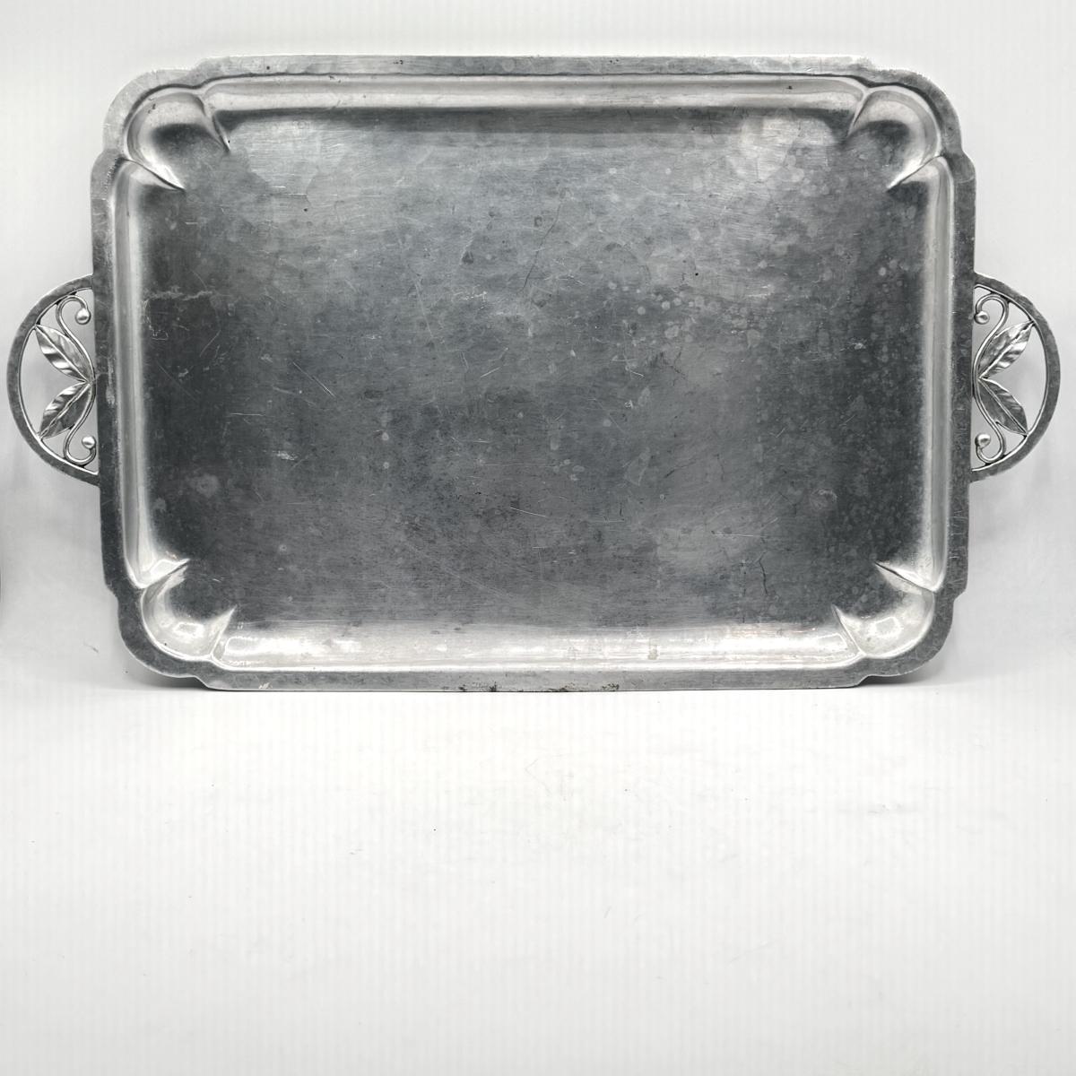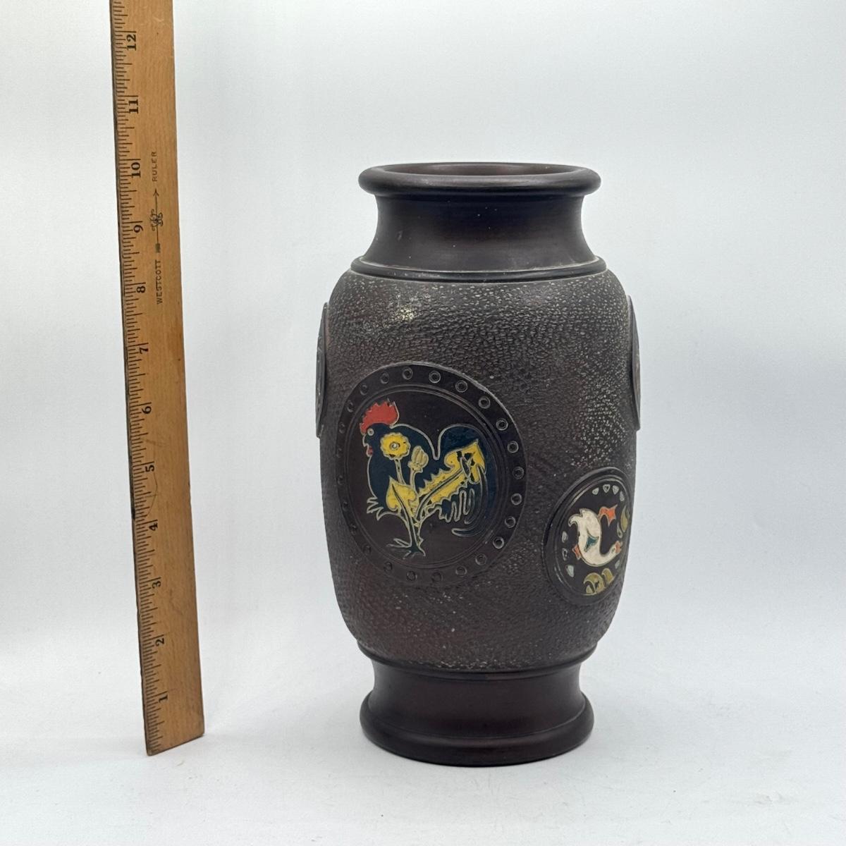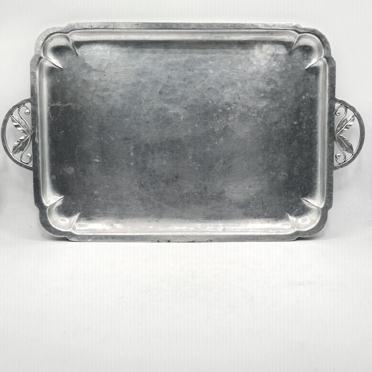 LOT 49D: Vintage Hand Wrought Aluminum Serving Tray and Vintage Japanese Vase