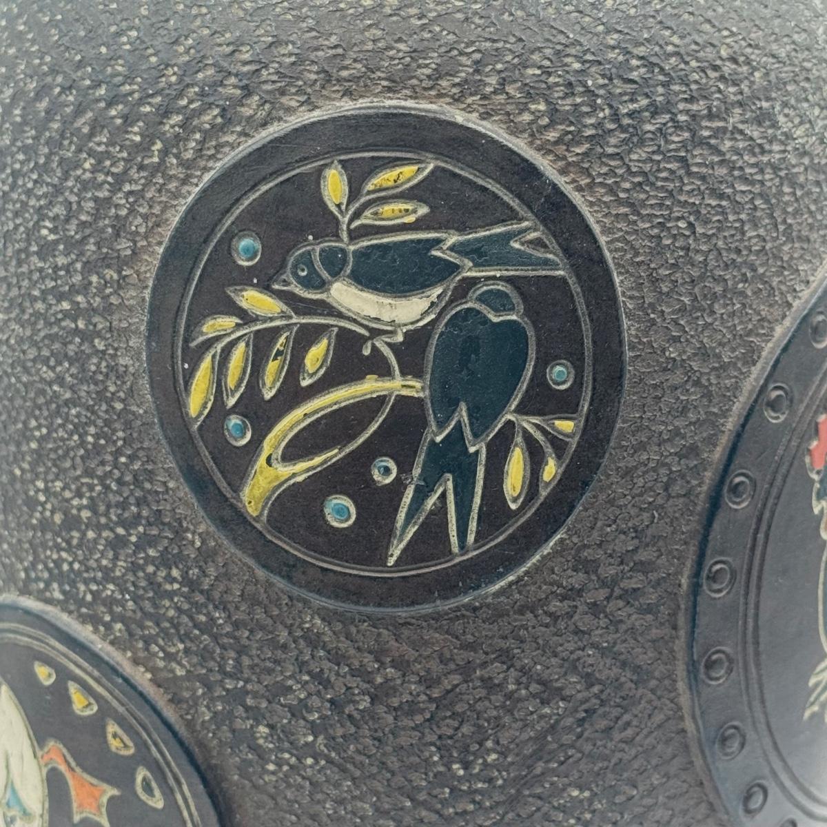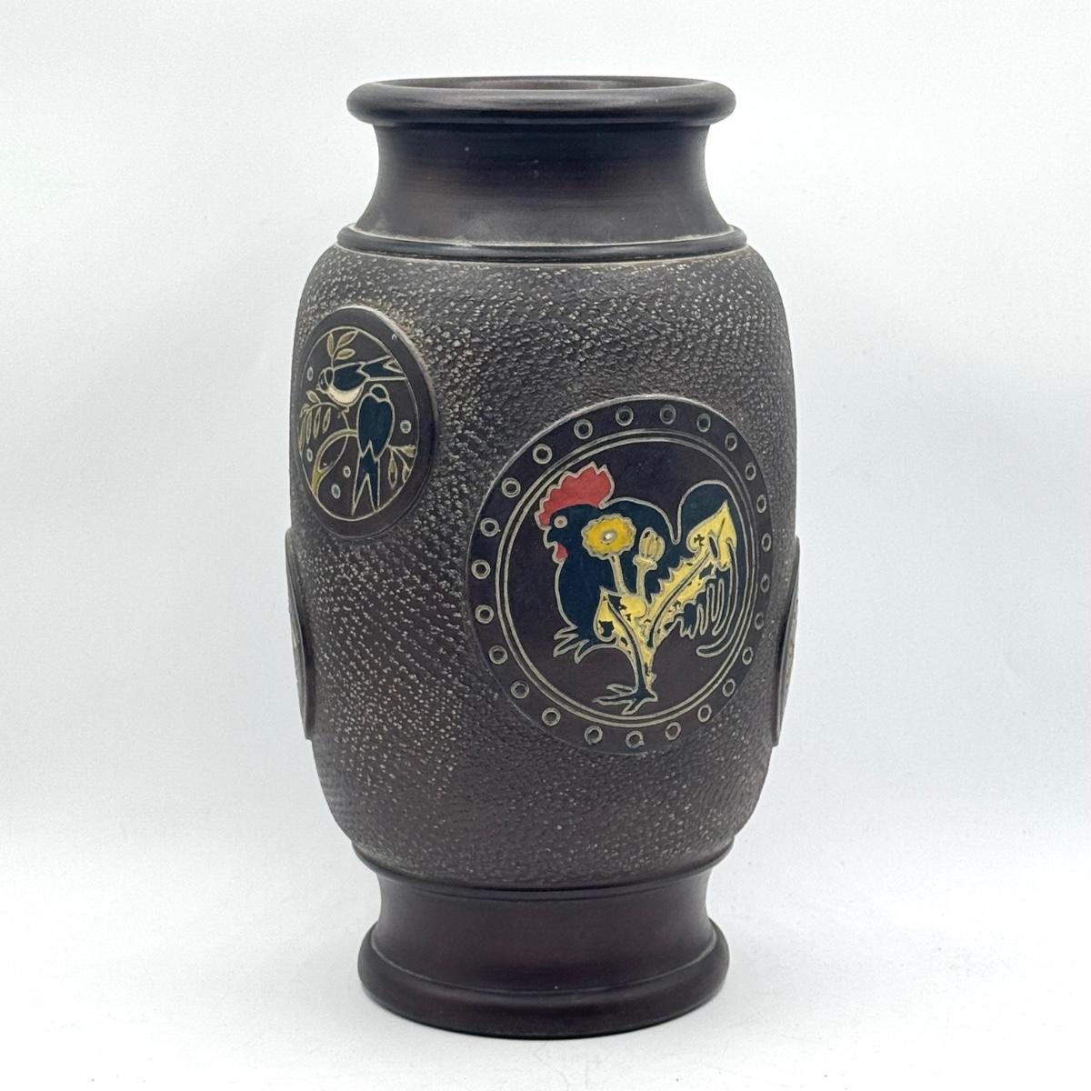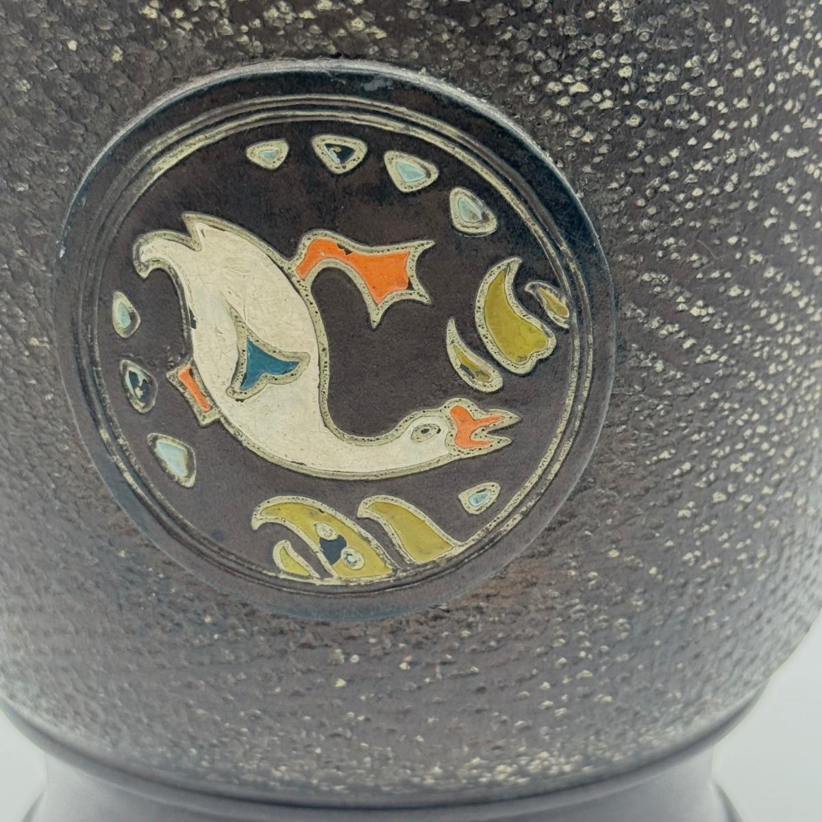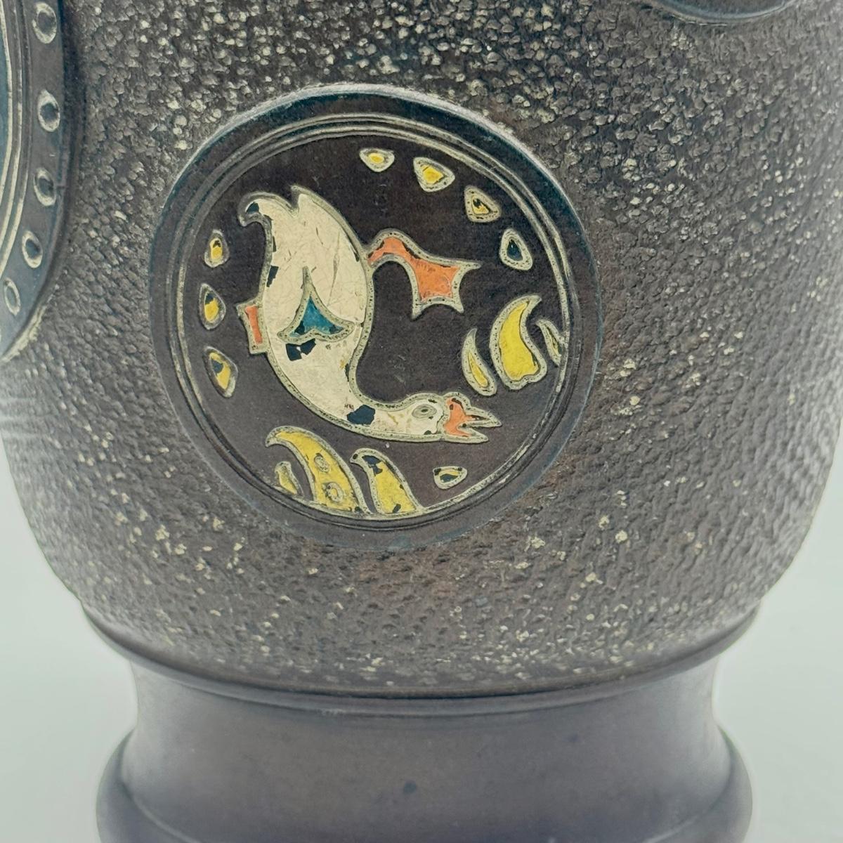 LOT 49D: Vintage Hand Wrought Aluminum Serving Tray and Vintage Japanese Vase