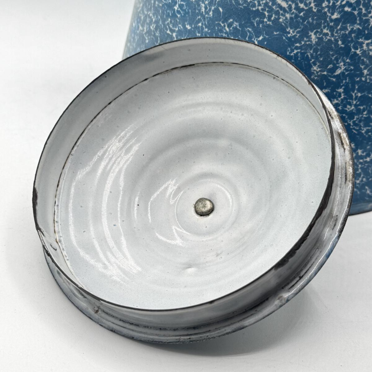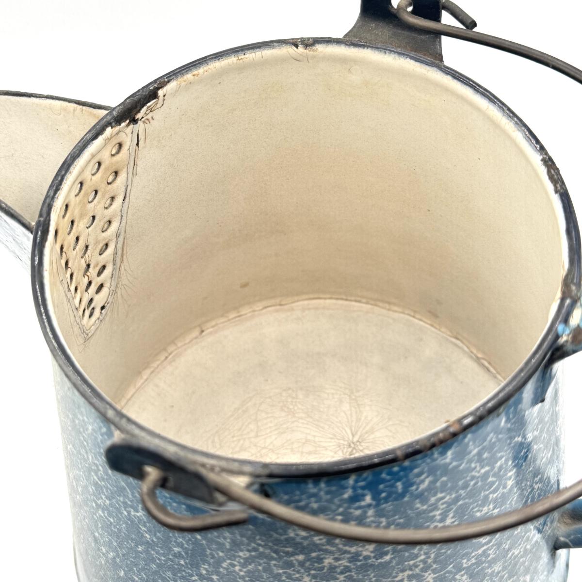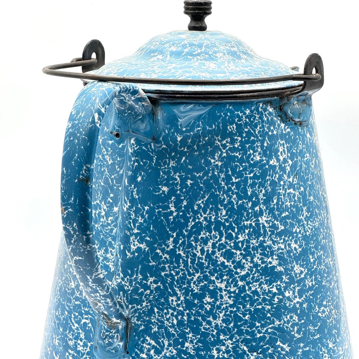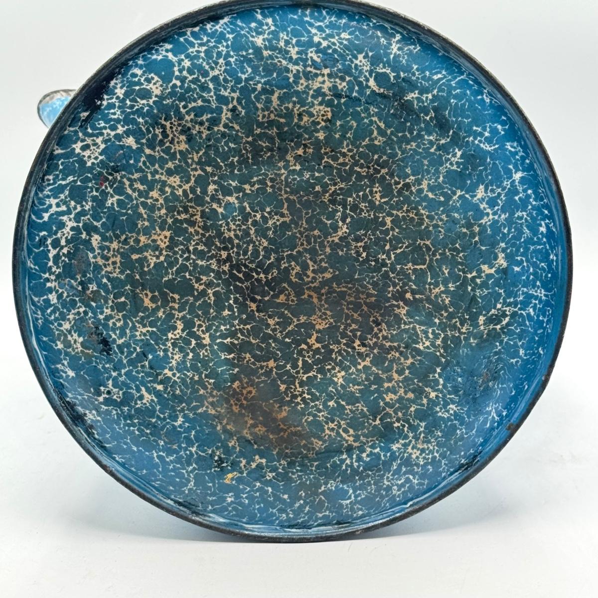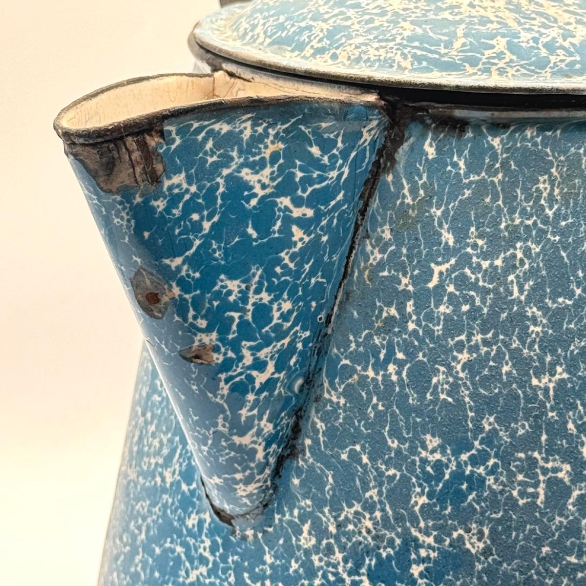 LOT 50K: Vintage Blue Speckled Enamel Coffee Pot and Blue and White Spatterware Bowl