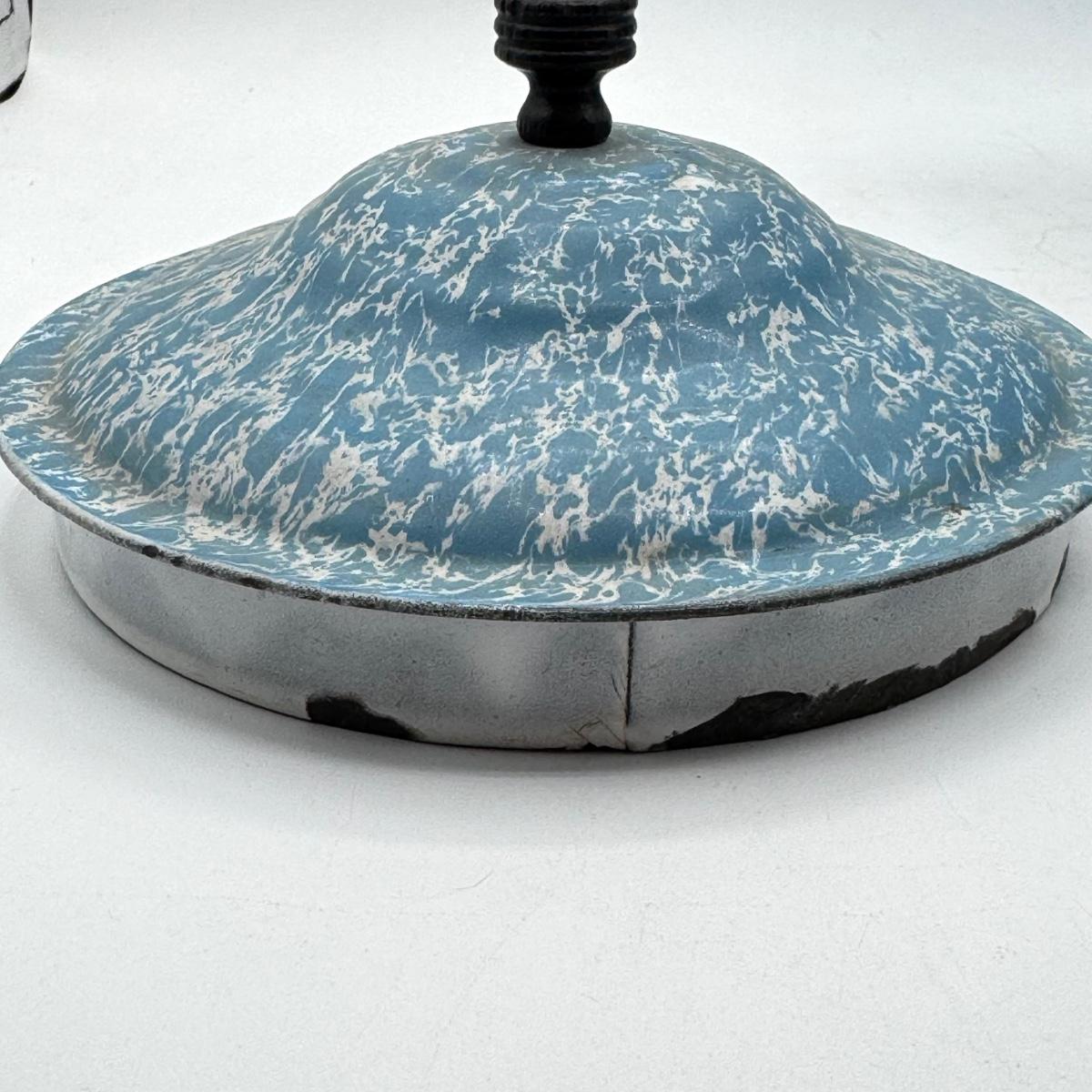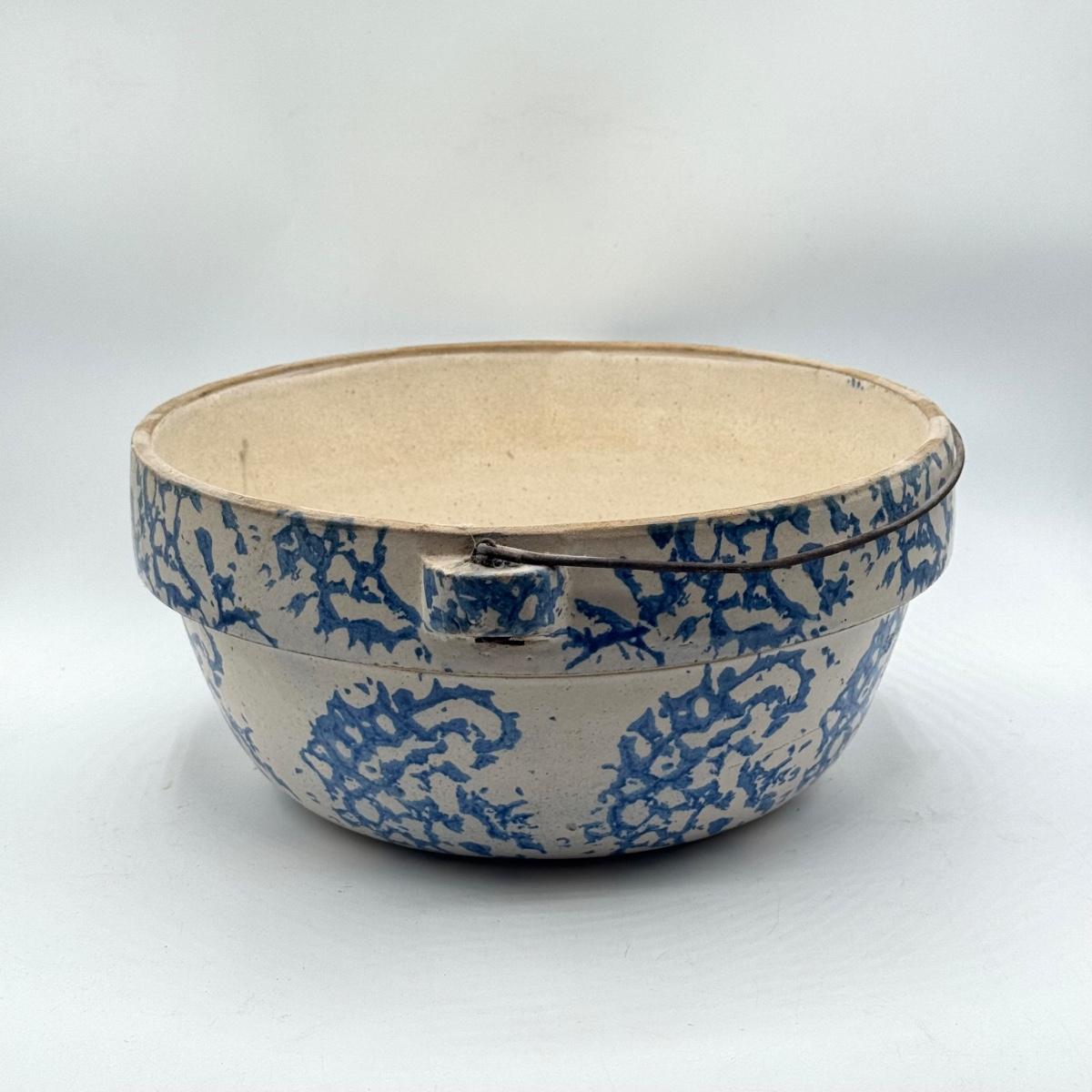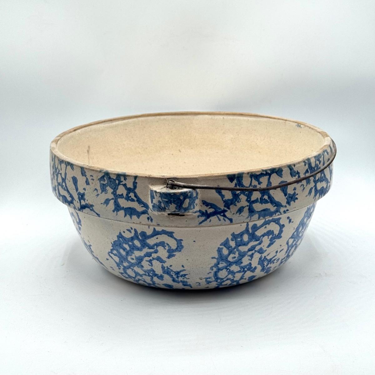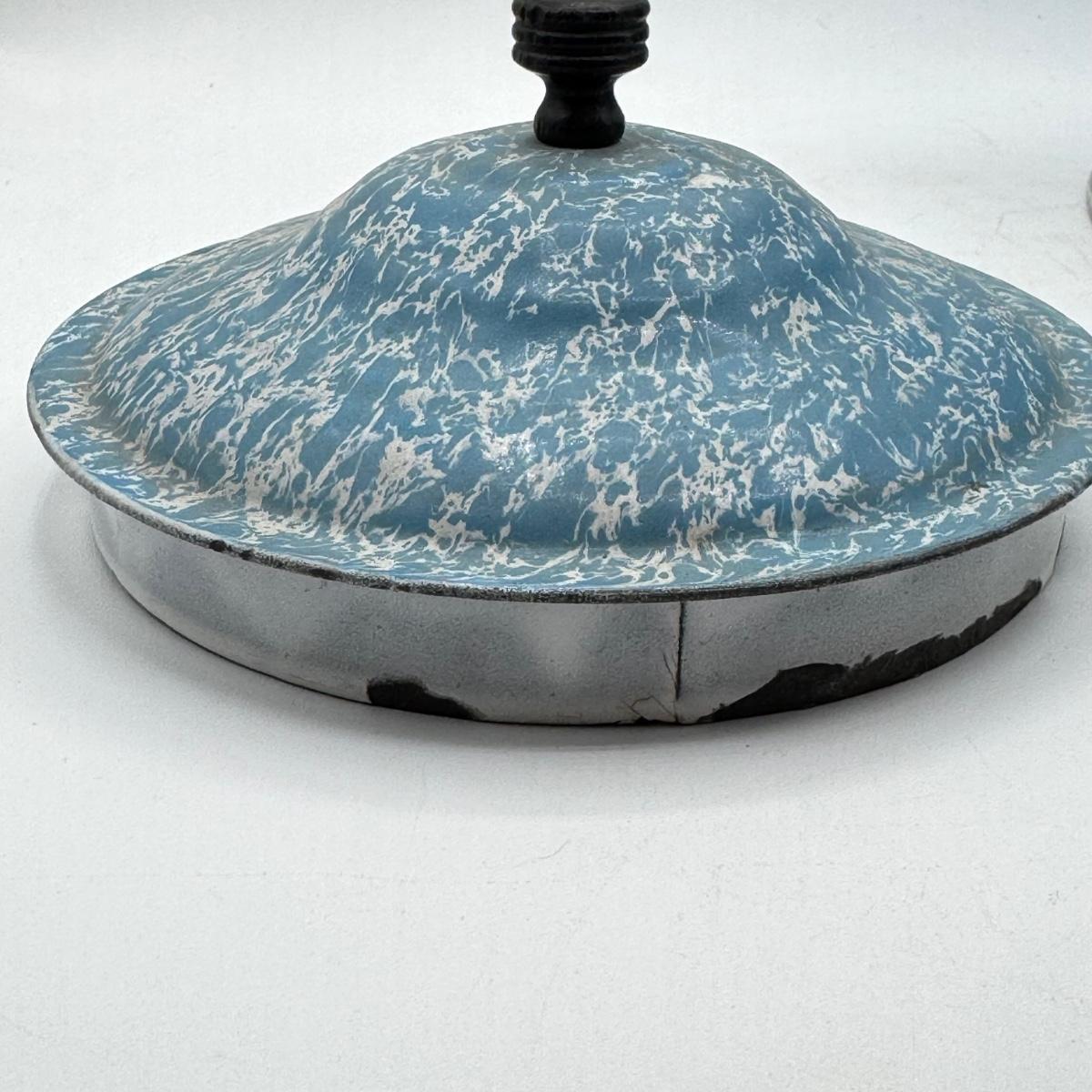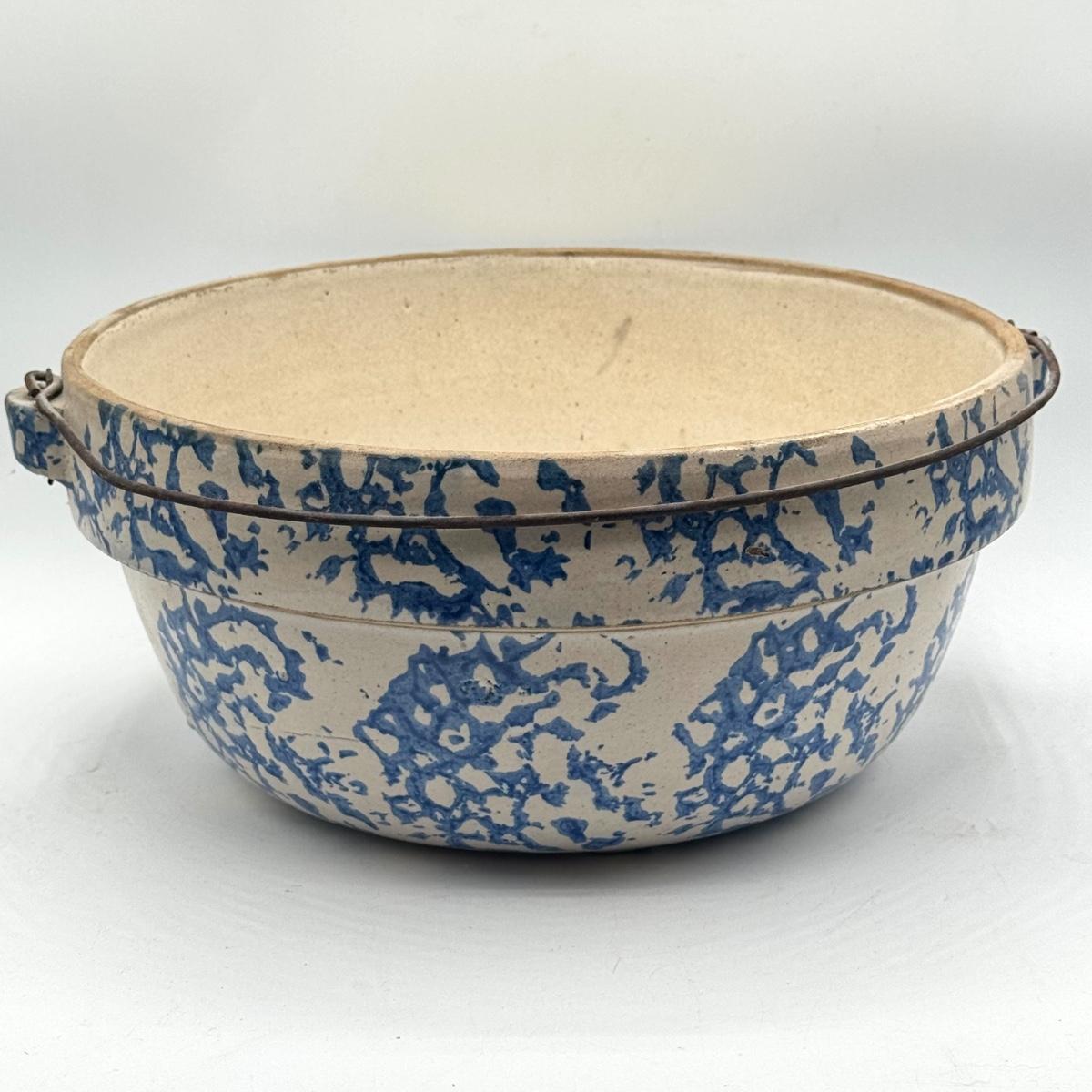 LOT 50K: Vintage Blue Speckled Enamel Coffee Pot and Blue and White Spatterware Bowl