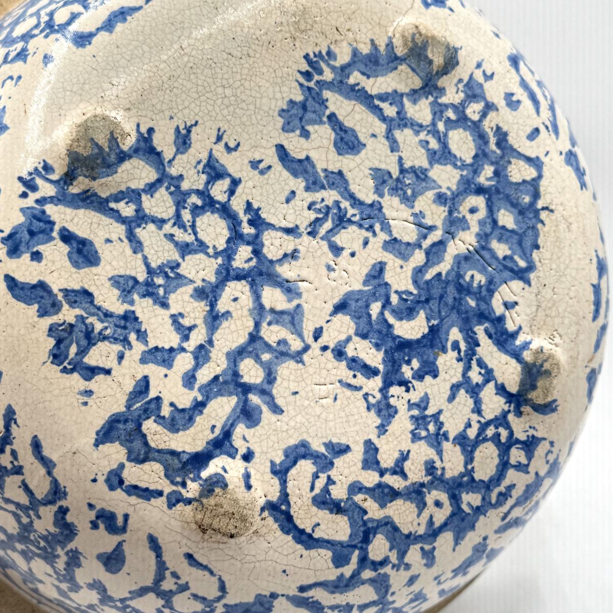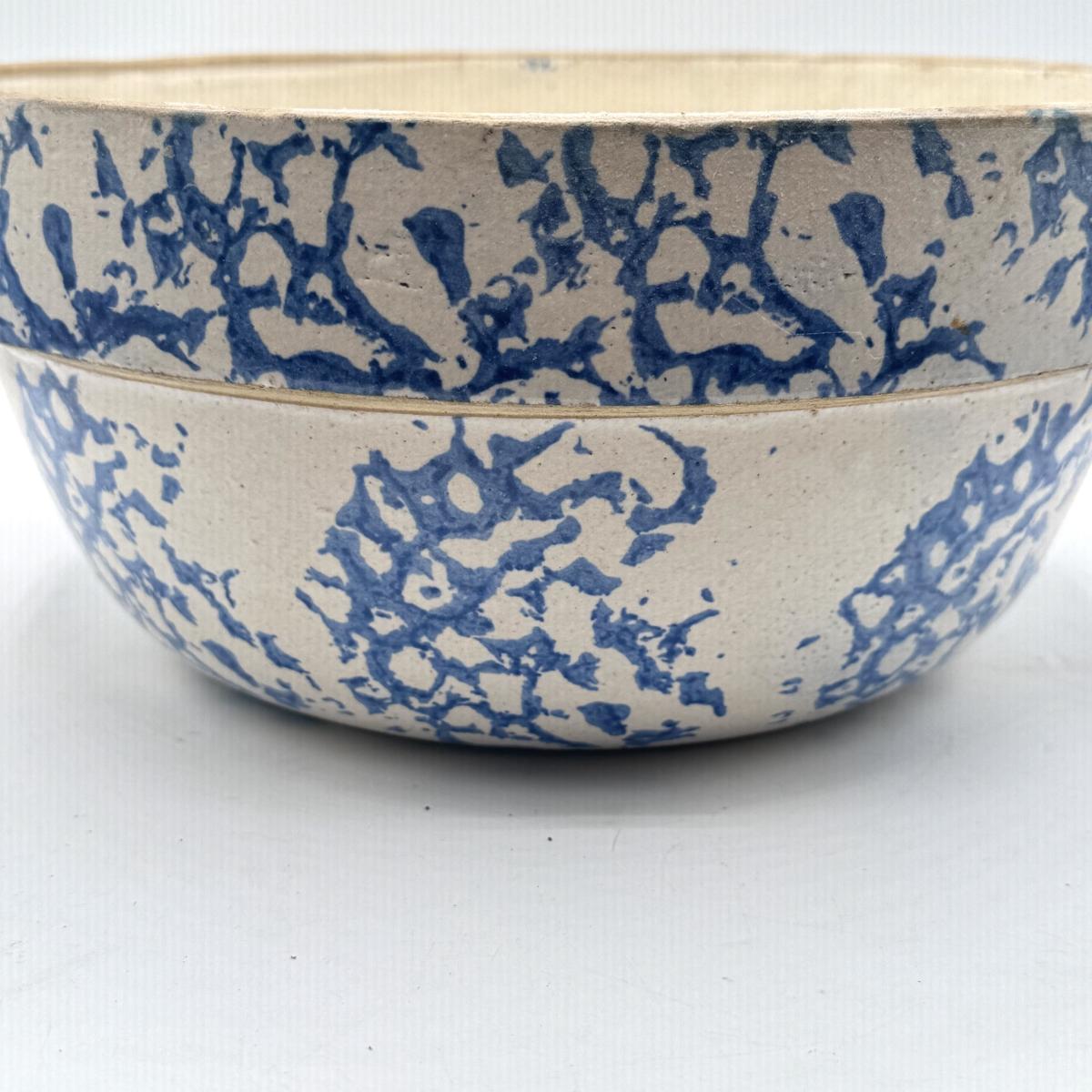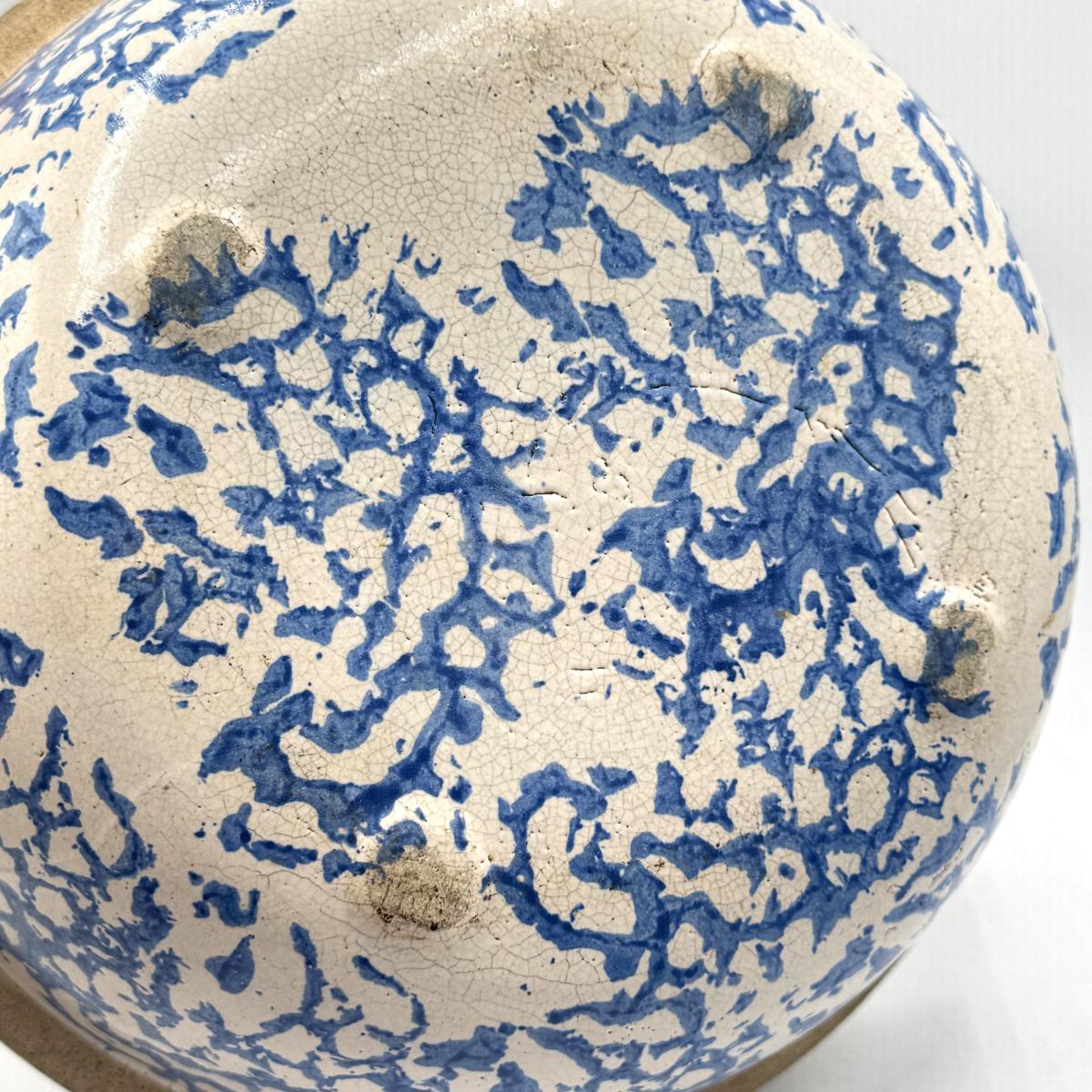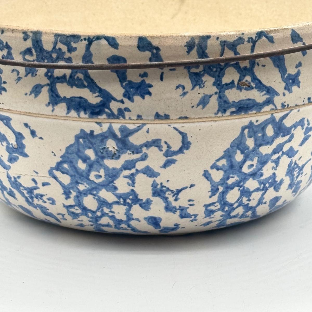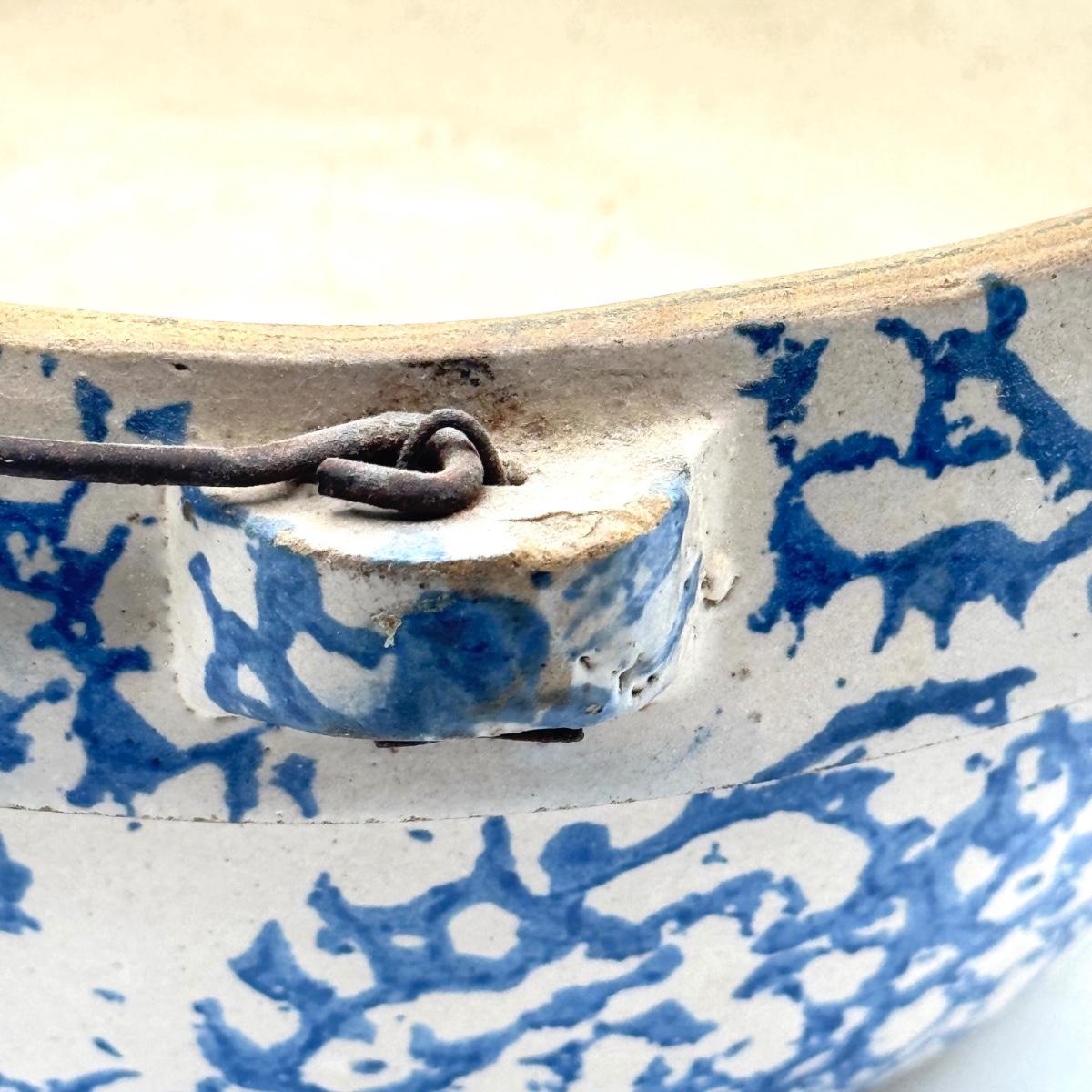 LOT 50K: Vintage Blue Speckled Enamel Coffee Pot and Blue and White Spatterware Bowl