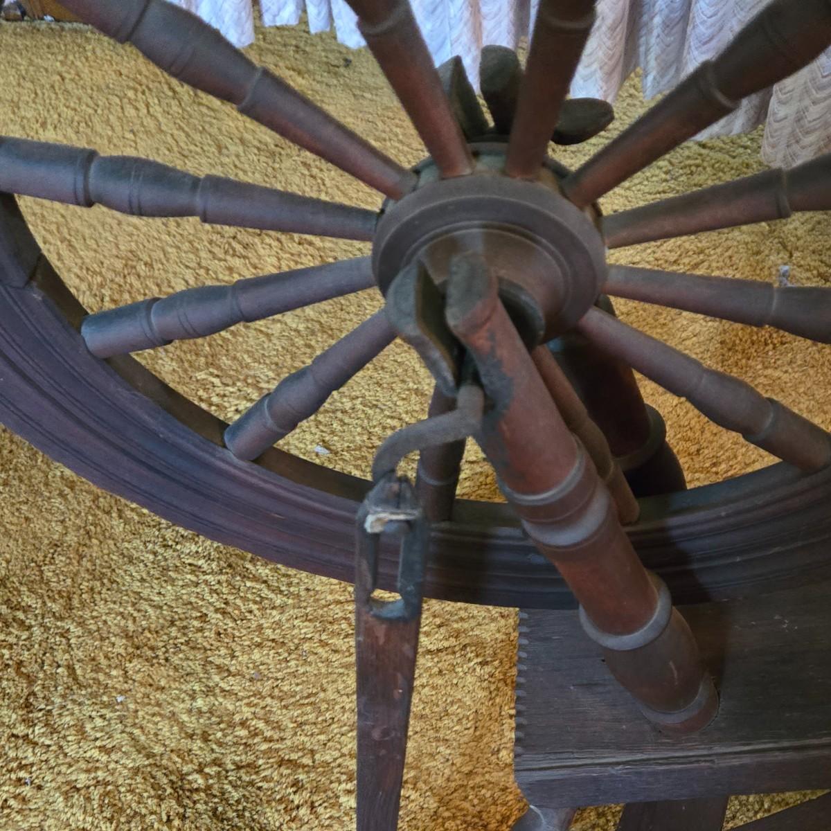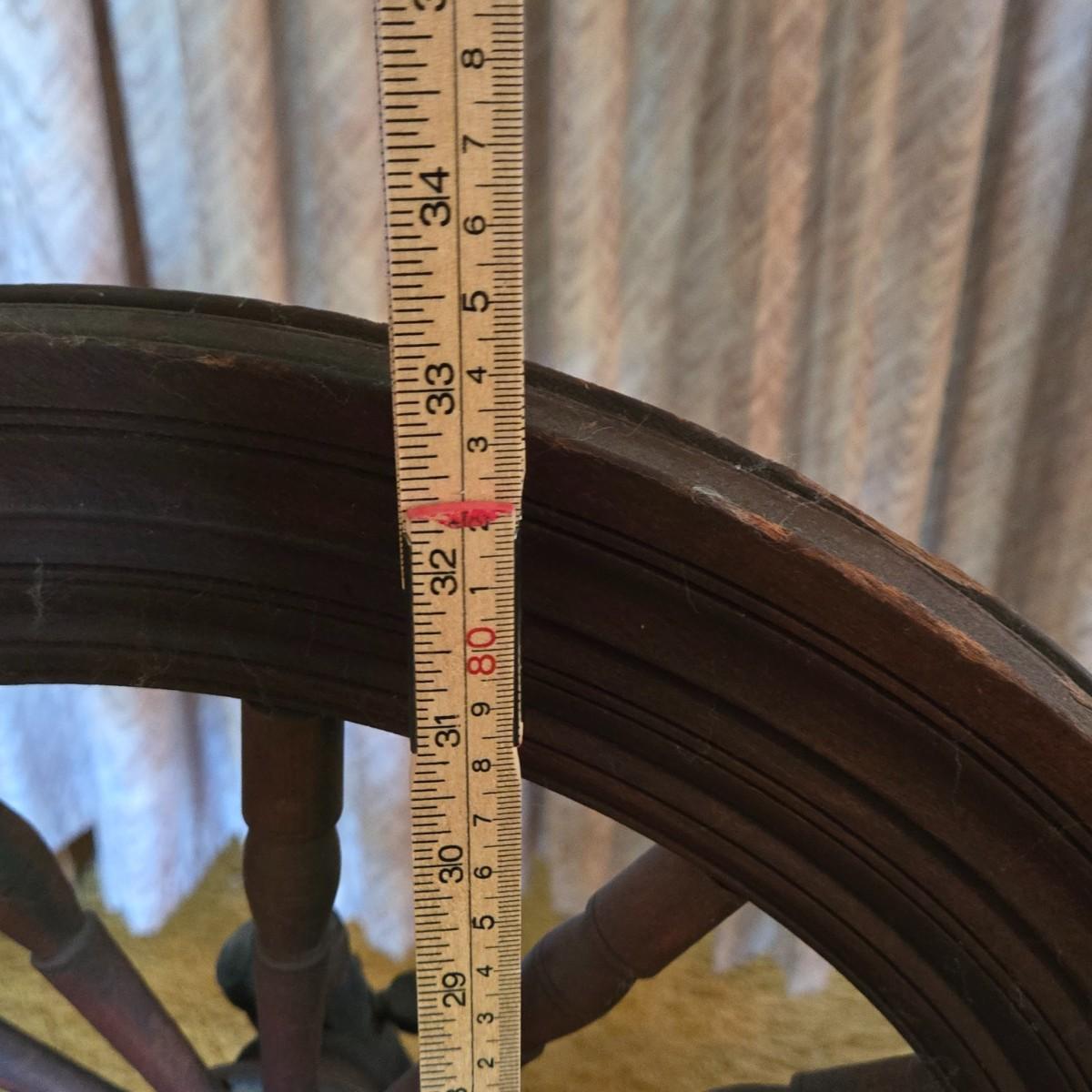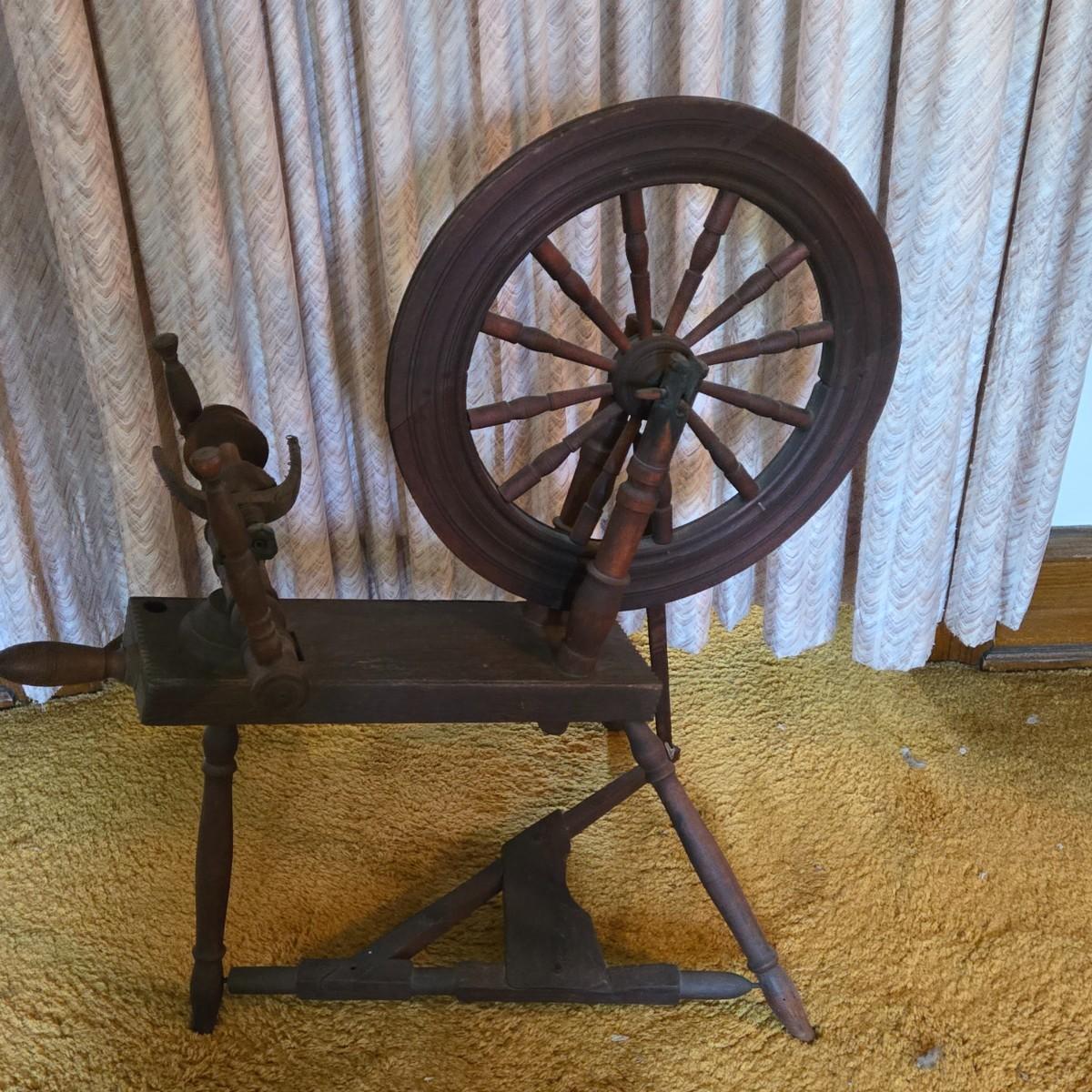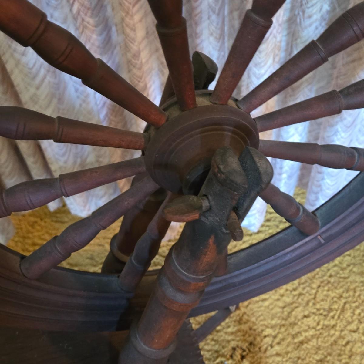 Wheel is 34 inches tall and quilt is 28x49. Please see all pictures as they are the best representation of the items. The pictures show condition, measurements if taken, and what is included in the lot. Due to the large amount that we photograph and the time frame, we are not always able to take measurements. All items unless noted, are pre-owned and have been used. If you purchased furniture, you must bring help. We do not allow one person to carry large furniture out on their own. Bring help, tools and a truck for the safety of our client’s homes, and your personal safety. Any damages that result to the property including walls, and floors due to moving of the furniture will be charged to the buyer. Company policy. Thank you.