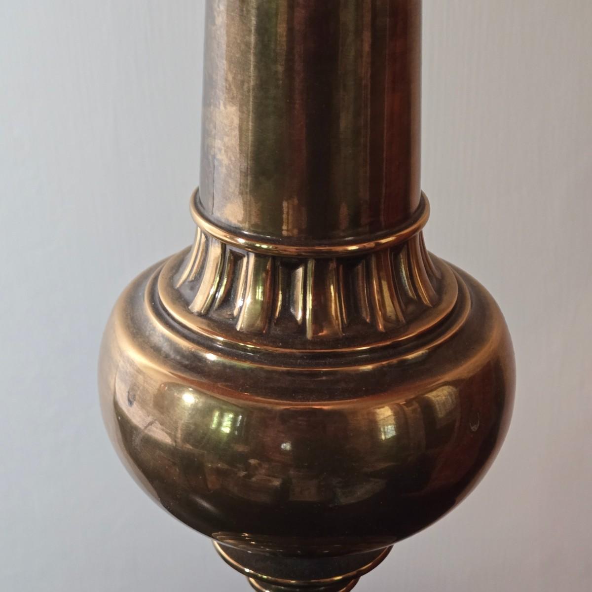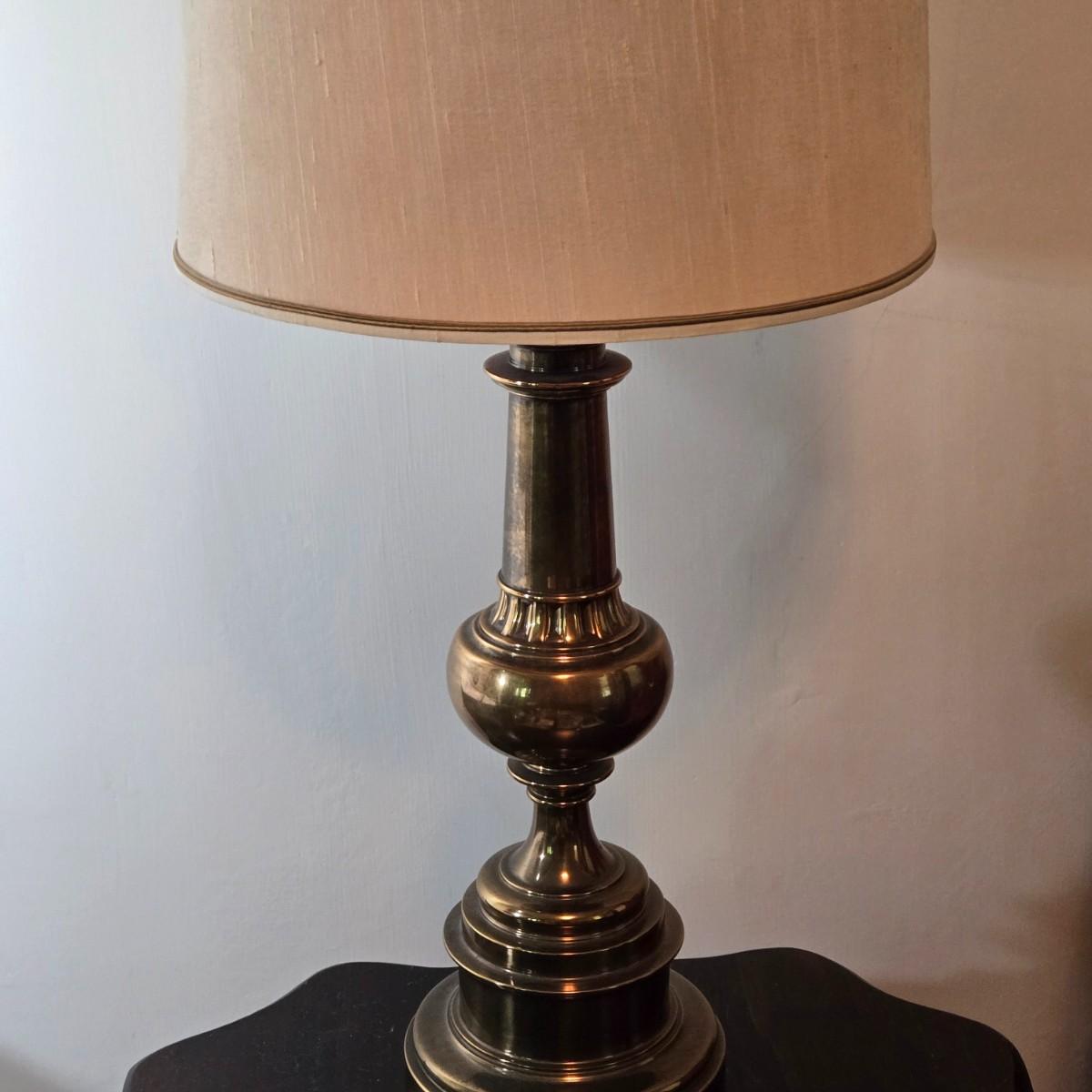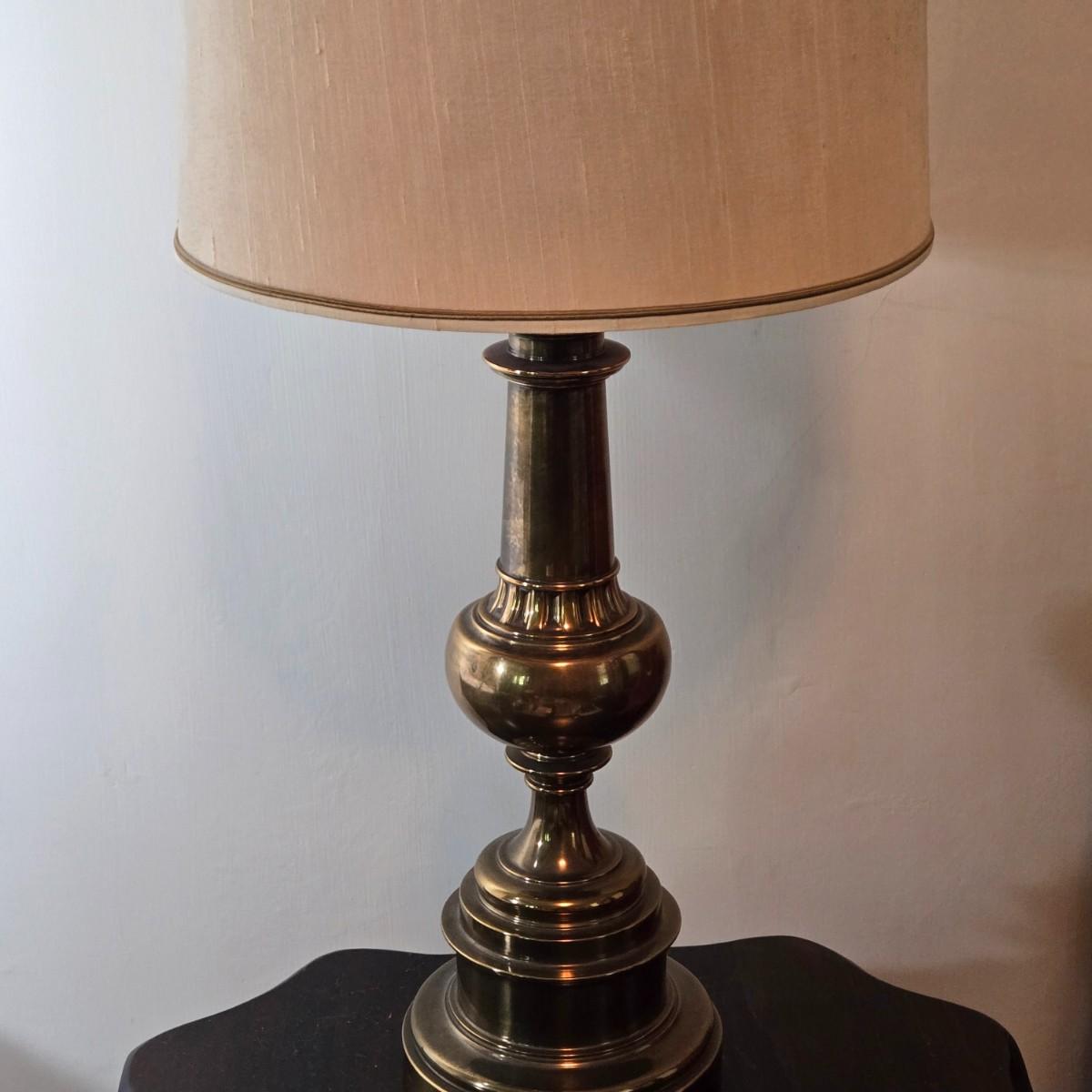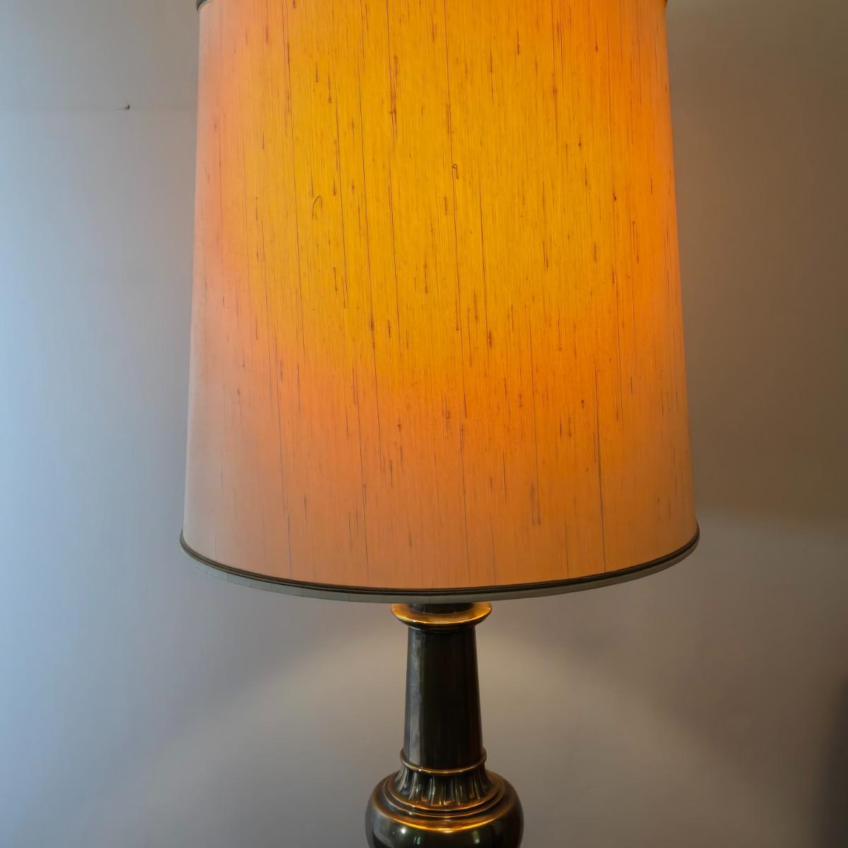 32 inches tall with shade, turned on when tested. Please see all pictures as they are the best representation of the items. The pictures show condition, measurements if taken, and what is included in the lot. Due to the large amount that we photograph and the time frame, we are not always able to take measurements. All items unless noted, are pre-owned and have been used. If you purchased furniture, you must bring help. We do not allow one person to carry large furniture out on their own. Bring help, tools and a truck for the safety of our client’s homes, and your personal safety. Any damages that result to the property including walls, and floors due to moving of the furniture will be charged to the buyer. Company policy. Thank you.