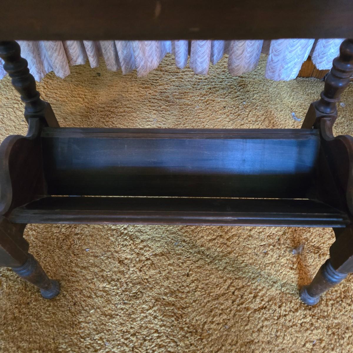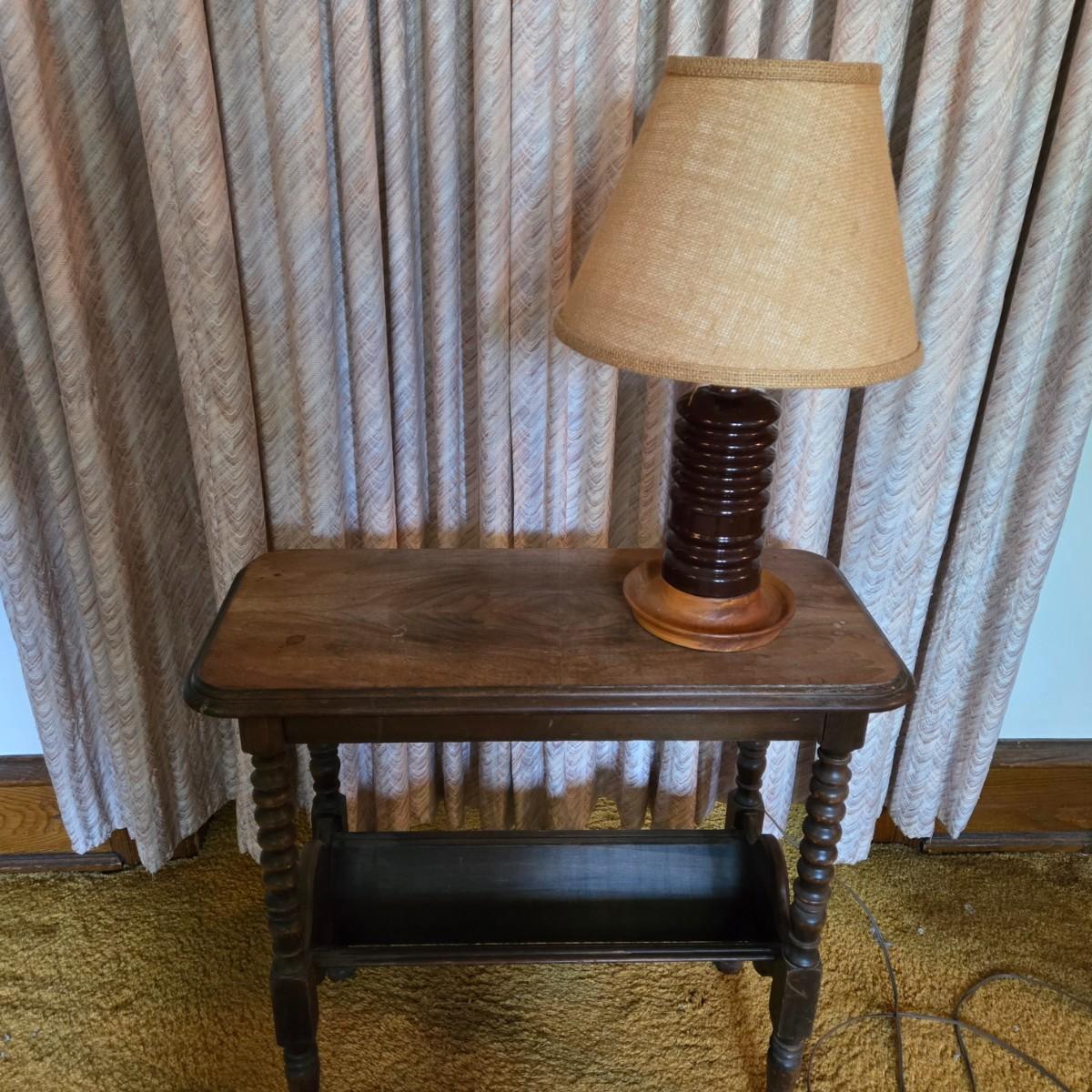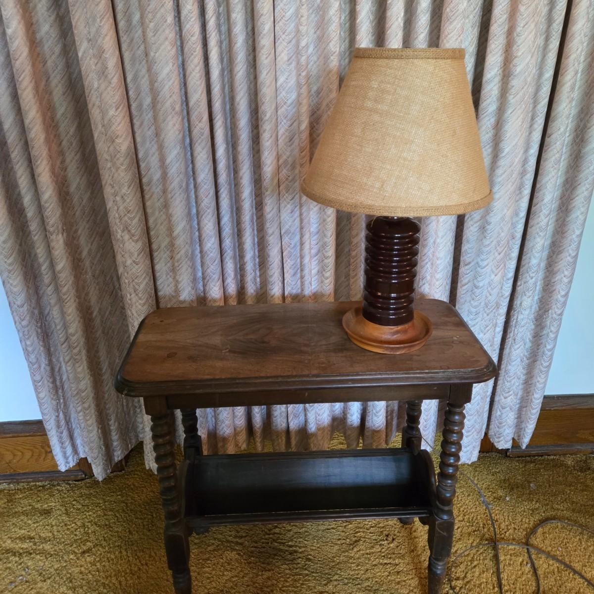 Table is 28x12x25high/ lamp is 20 inches high with shade/ turned on when tested. Please see all pictures as they are the best representation of the items. The pictures show condition, measurements if taken, and what is included in the lot. Due to the large amount that we photograph and the time frame, we are not always able to take measurements. All items unless noted, are pre-owned and have been used. If you purchased furniture, you must bring help. We do not allow one person to carry large furniture out on their own. Bring help, tools and a truck for the safety of our client’s homes, and your personal safety. Any damages that result to the property including walls, and floors due to moving of the furniture will be charged to the buyer. Company policy. Thank you.