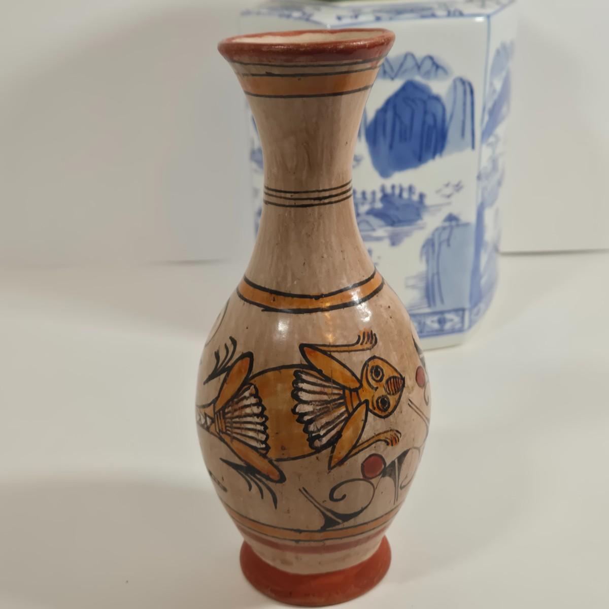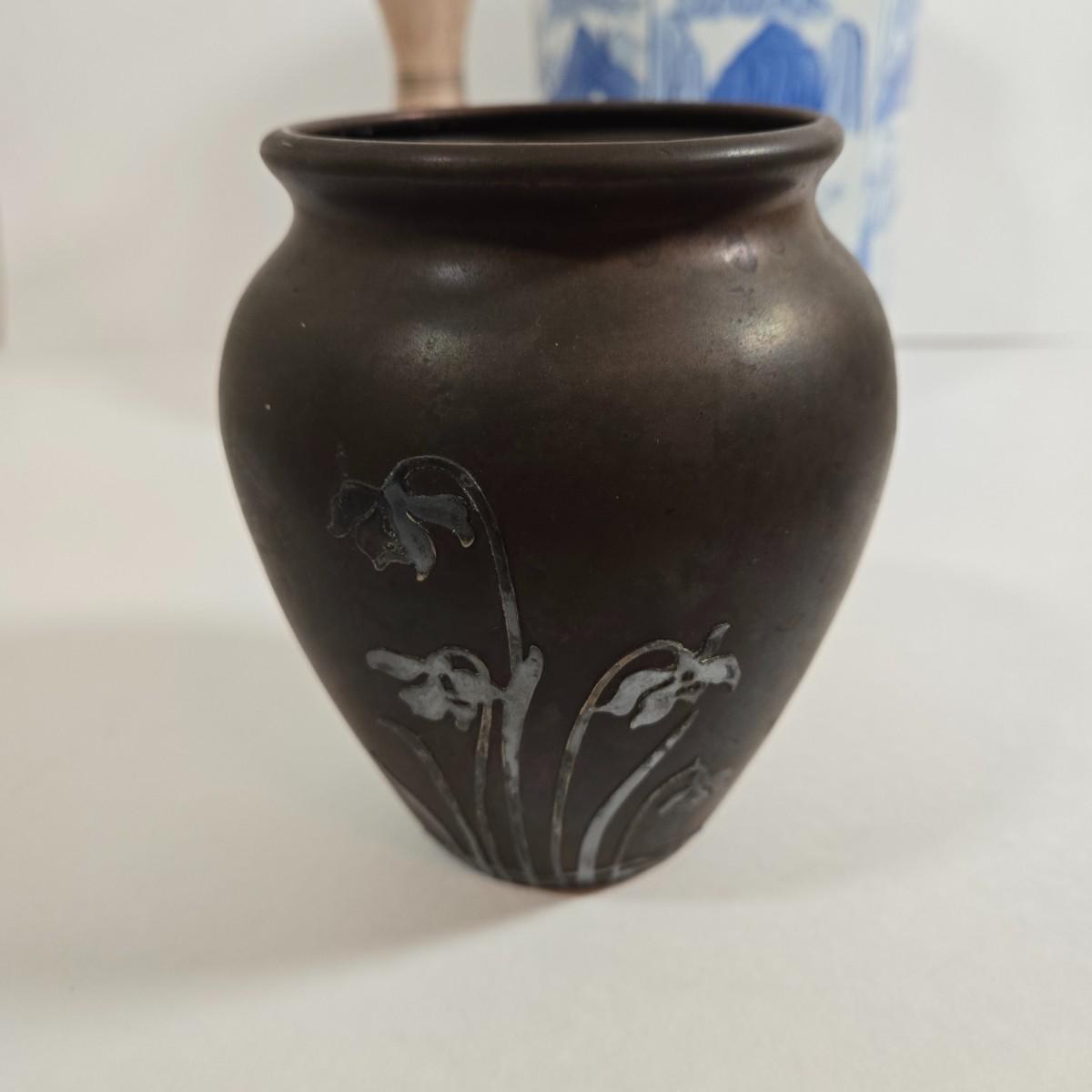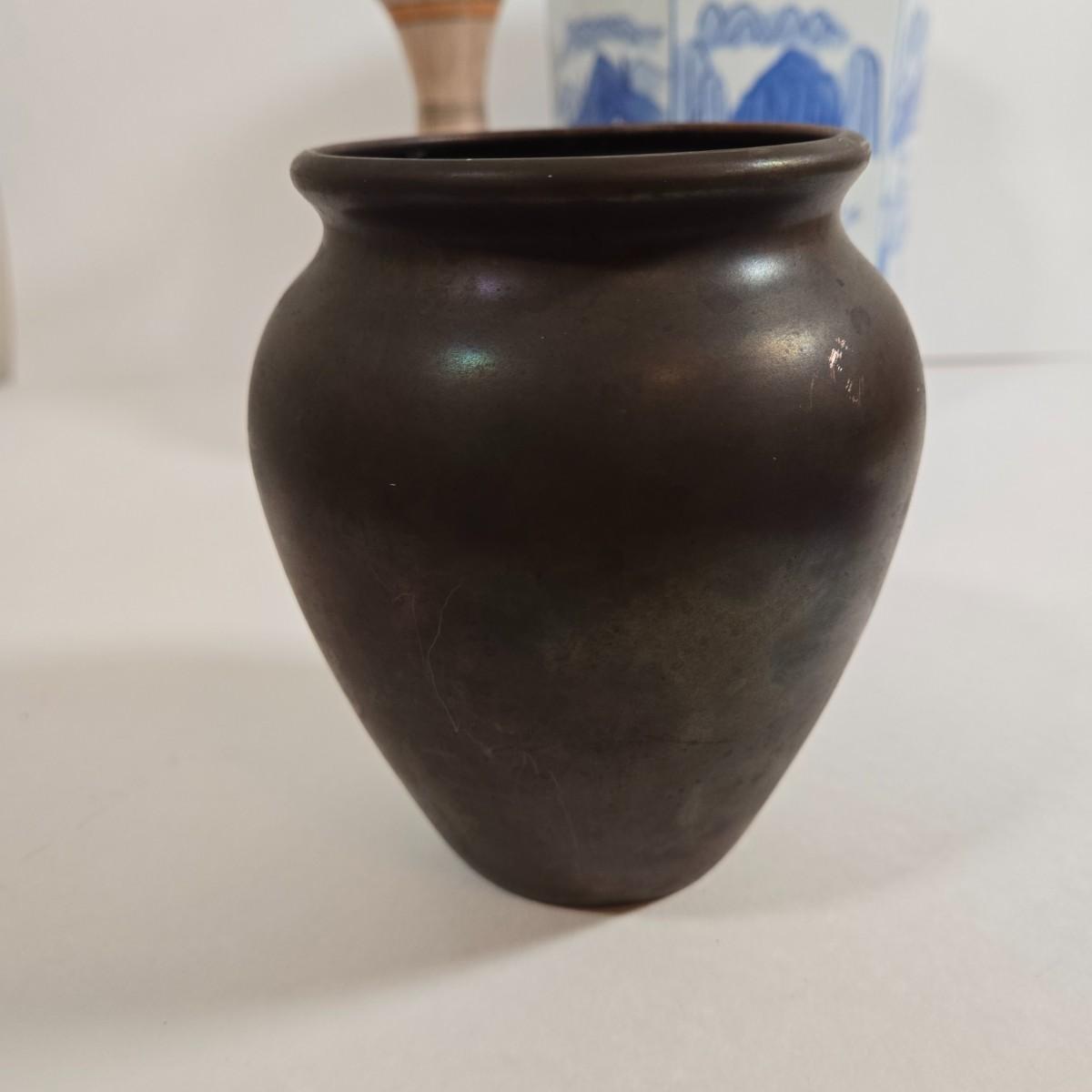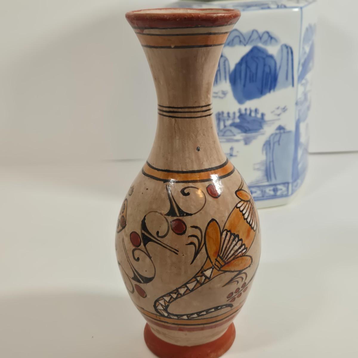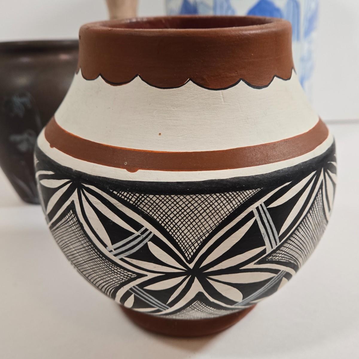 LOT 86L: Asian Cloisonne Lidded Ginger Jar, Native American Pottery, Sterling on Bronze Vase, Mexican Ceramic Art Vase, Traditional Asin Ceramic Lidded Jar