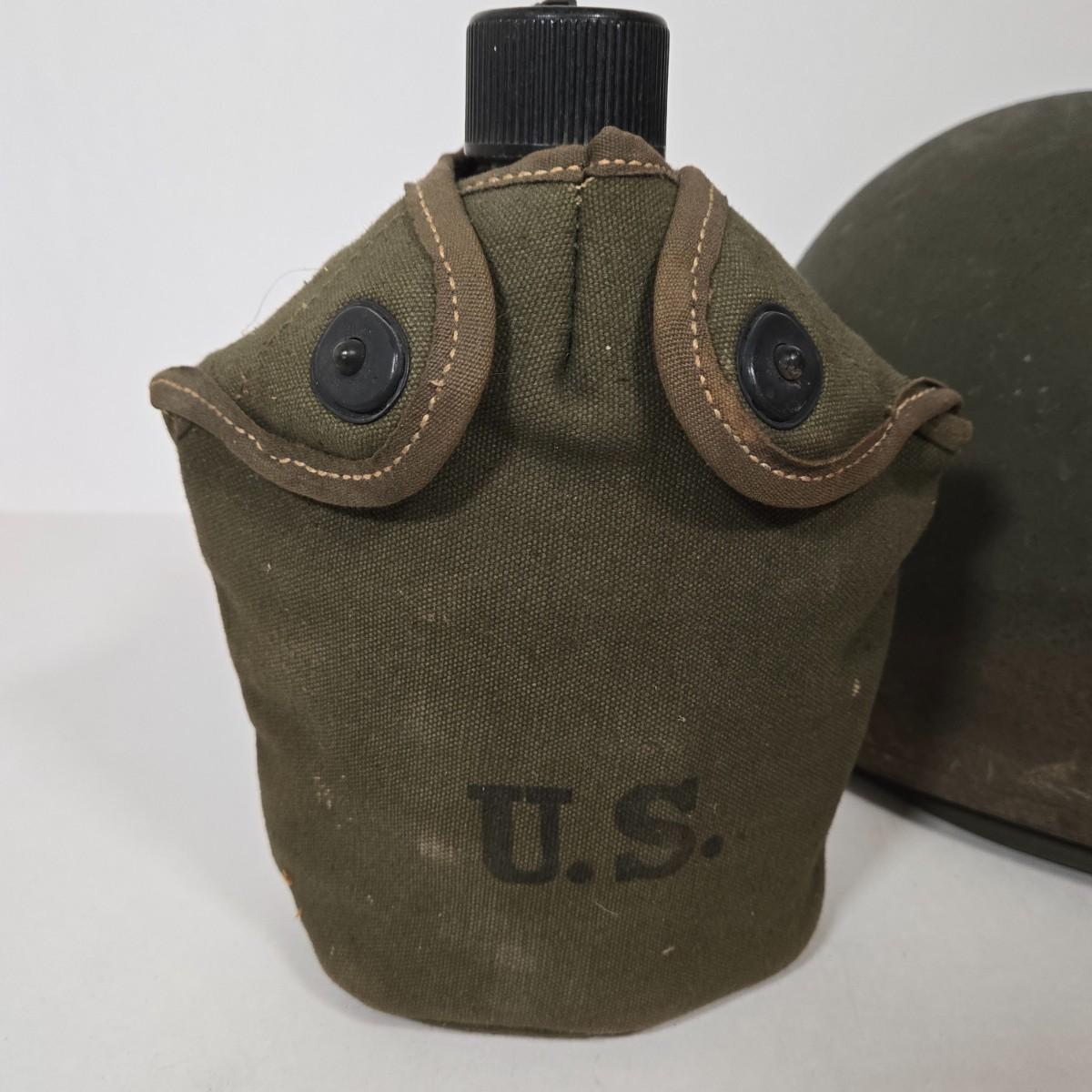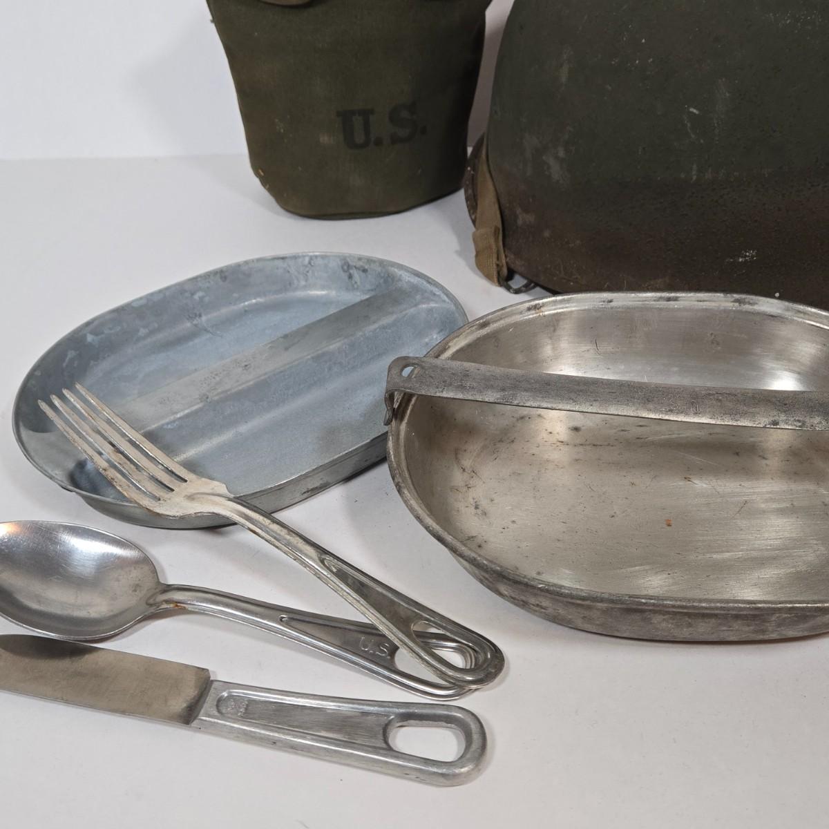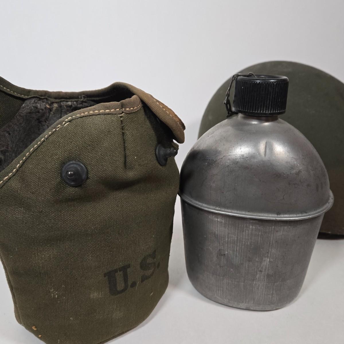 LOT 93L: Vintage U.S. Military Combat Helmet, Belt, Canteen, Mess Kit, Patches, and More