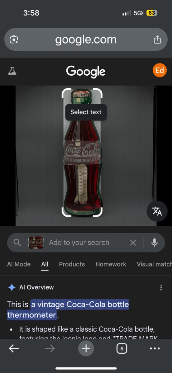 LOT 103K: Vintage Coca Cola Thermometer Sign