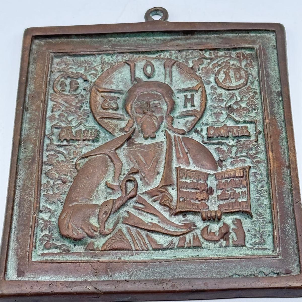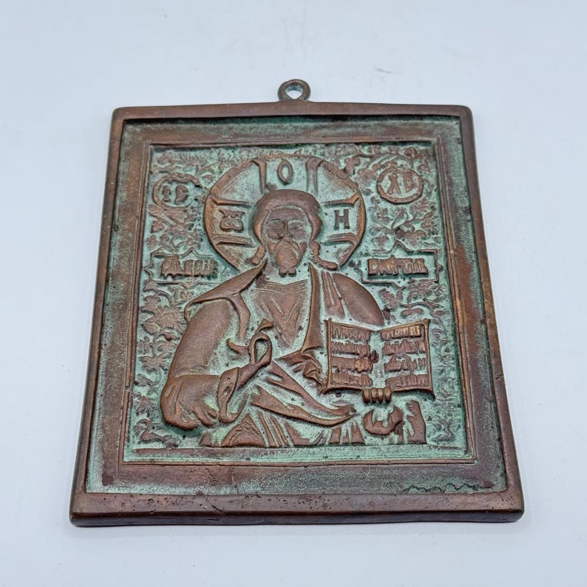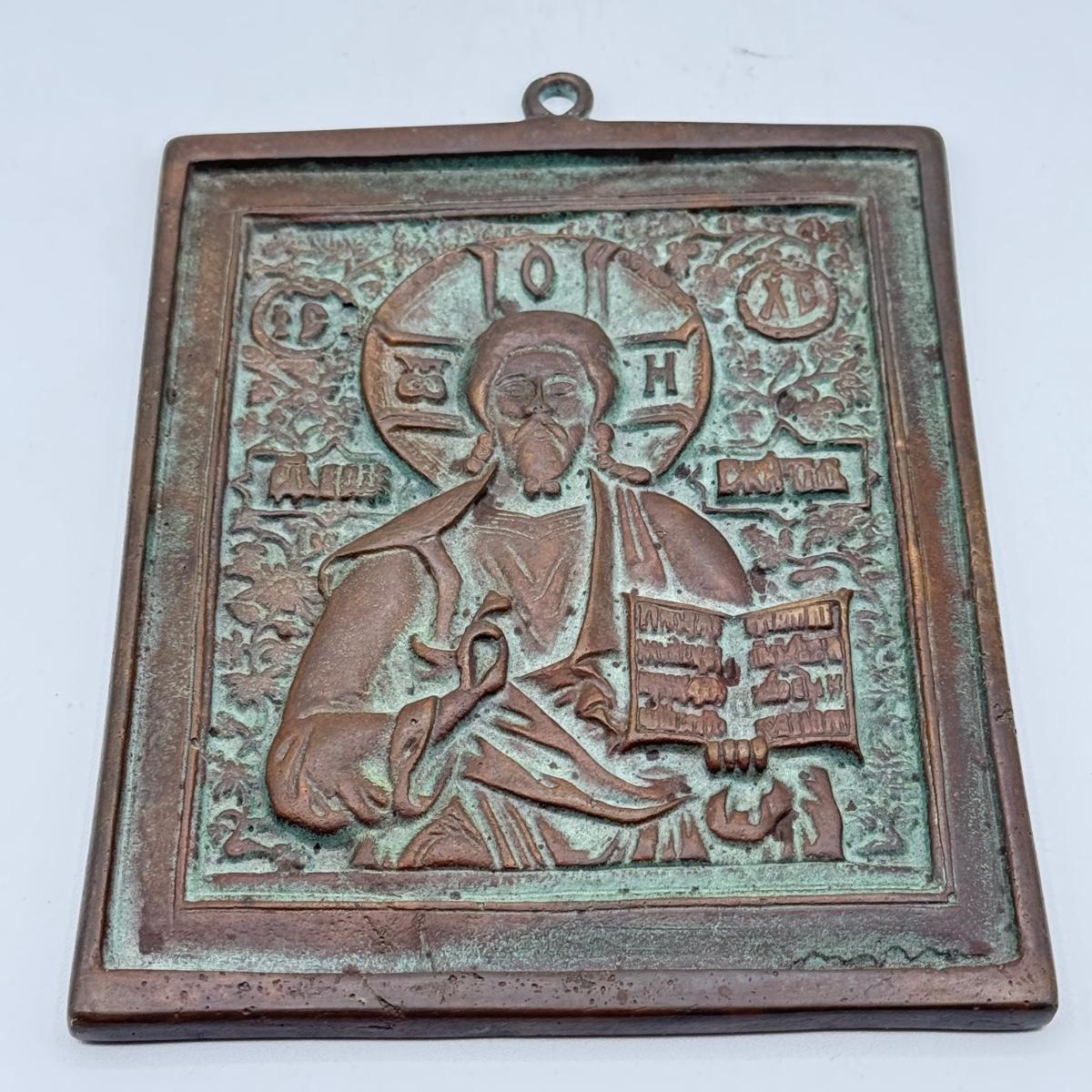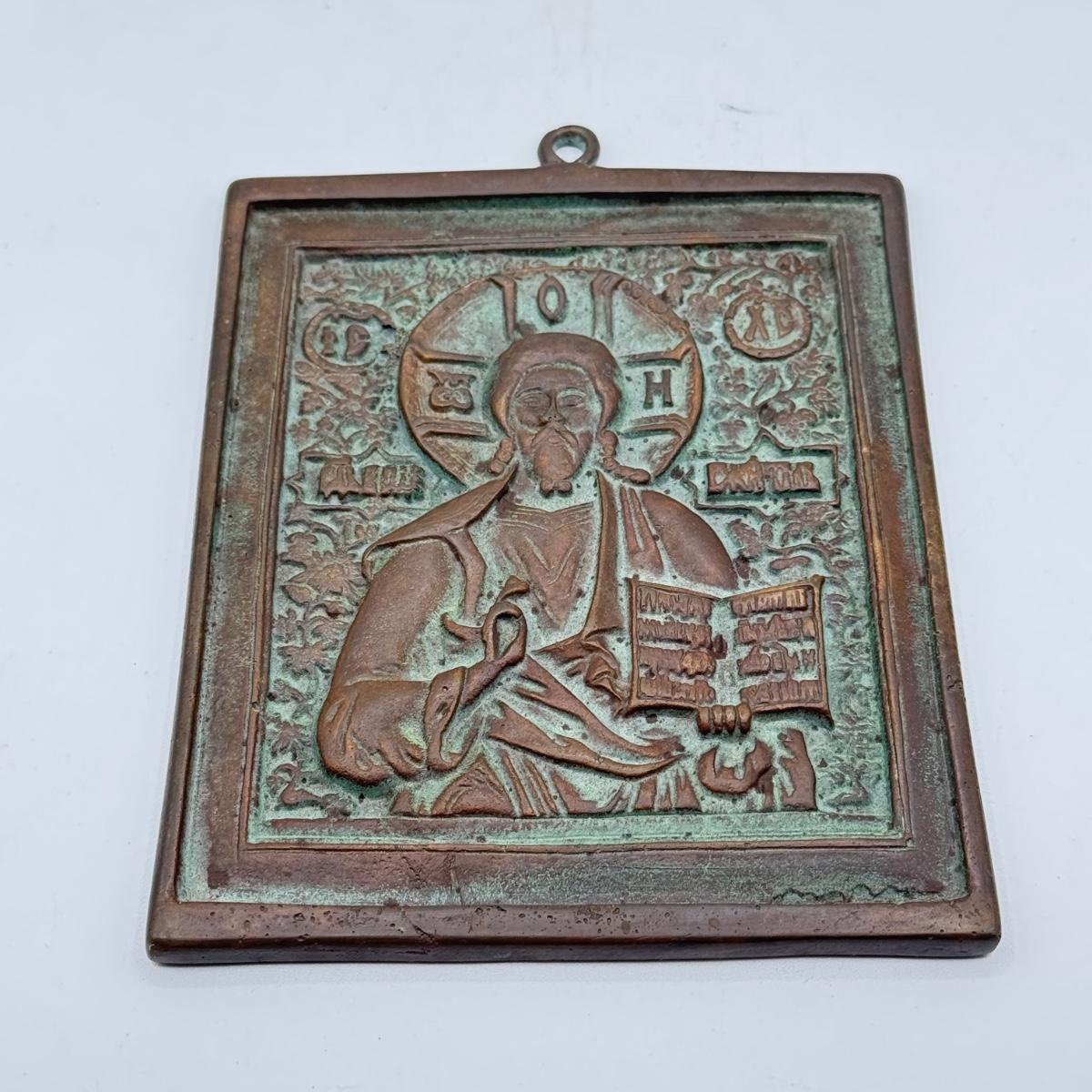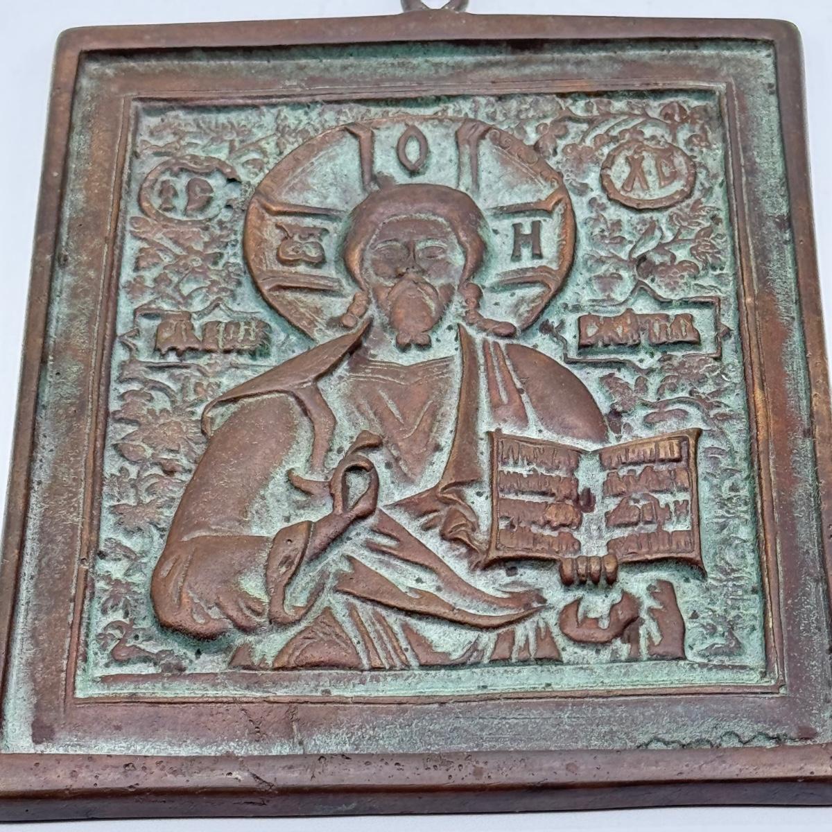 LOT 105K: Antique Brass Icon Depicting Christ Pantocrator