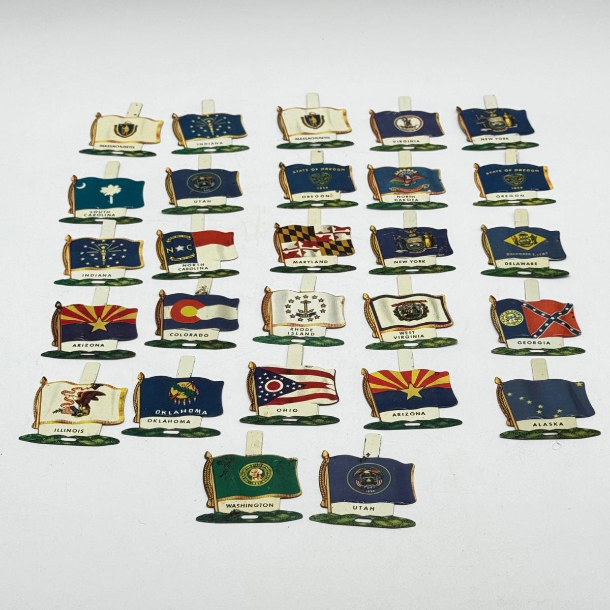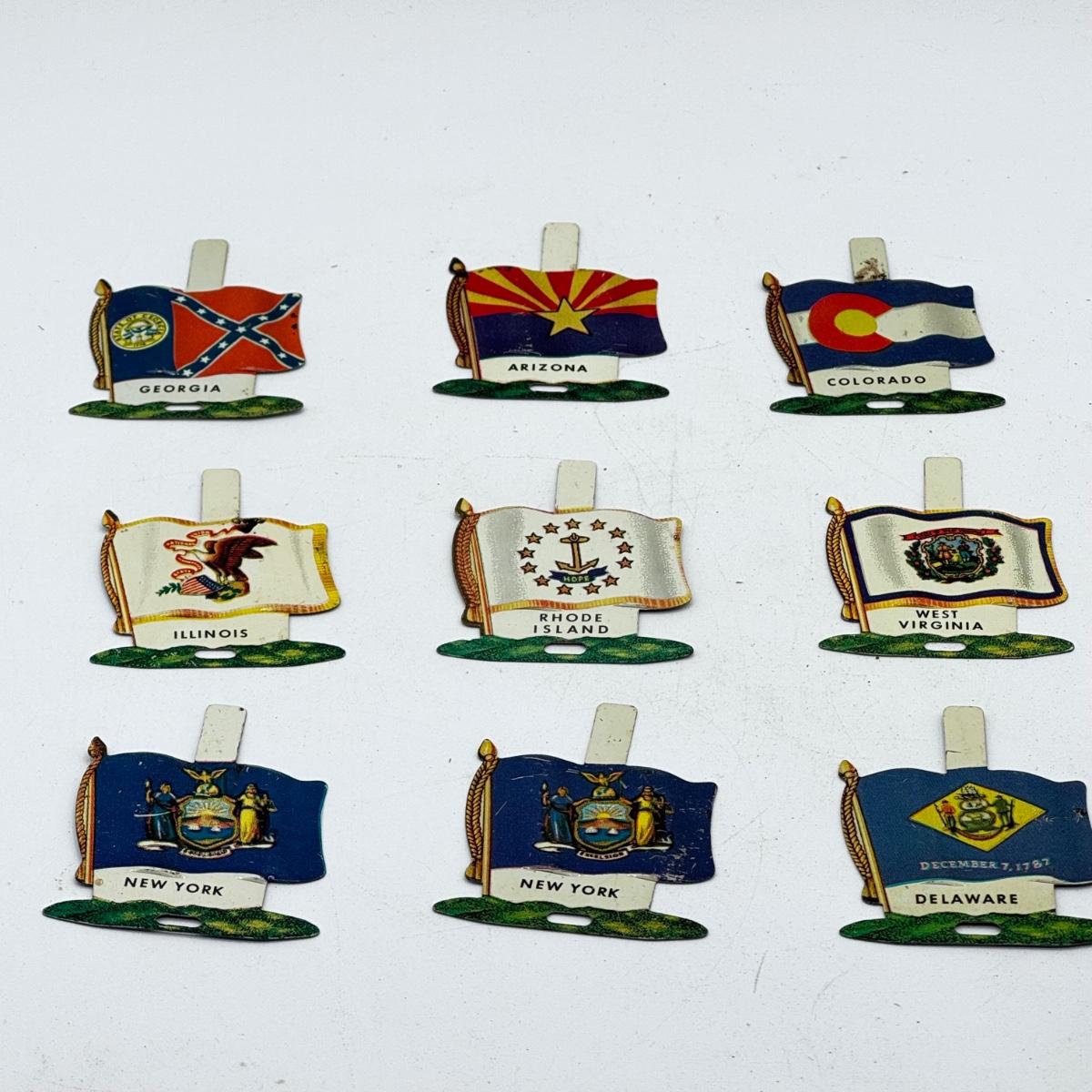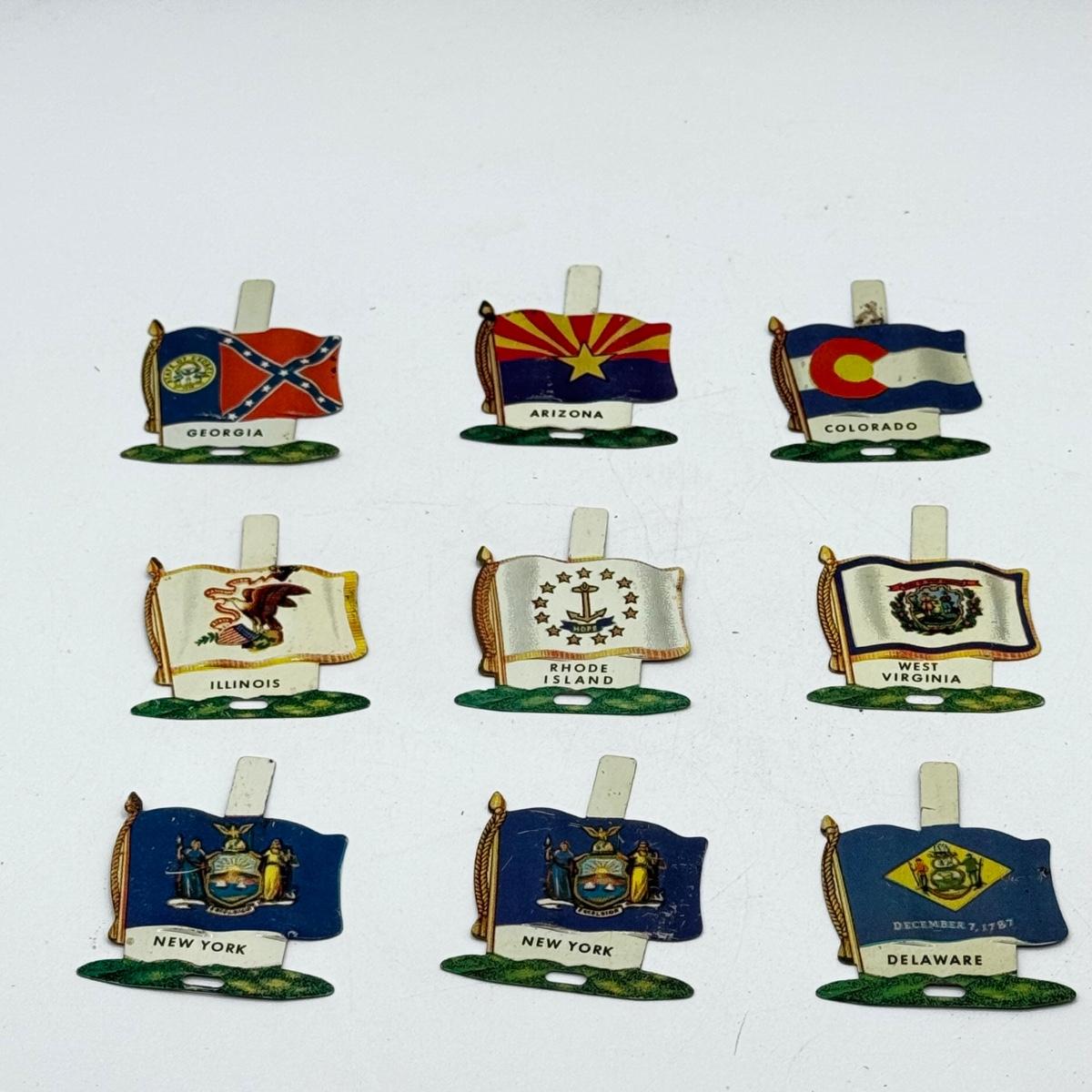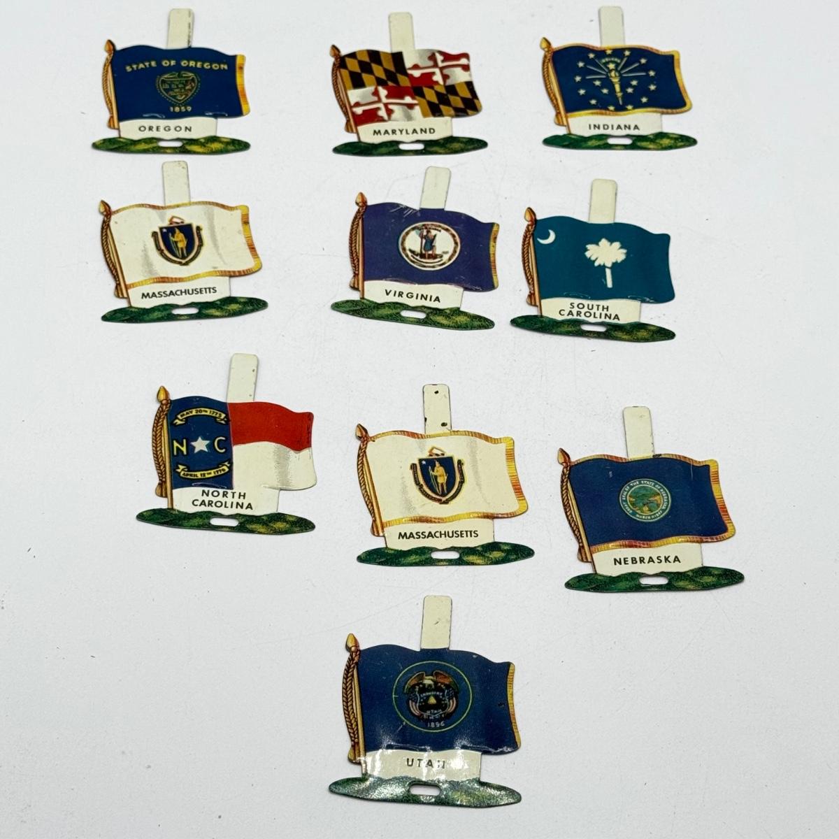 LOT 106K: Collection of Vintage Tin Pins of Various State and Nation Flags