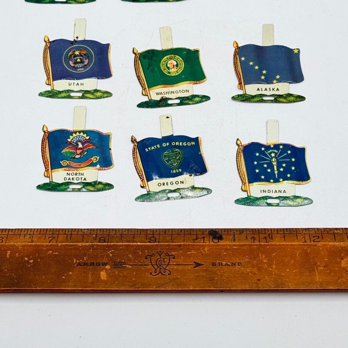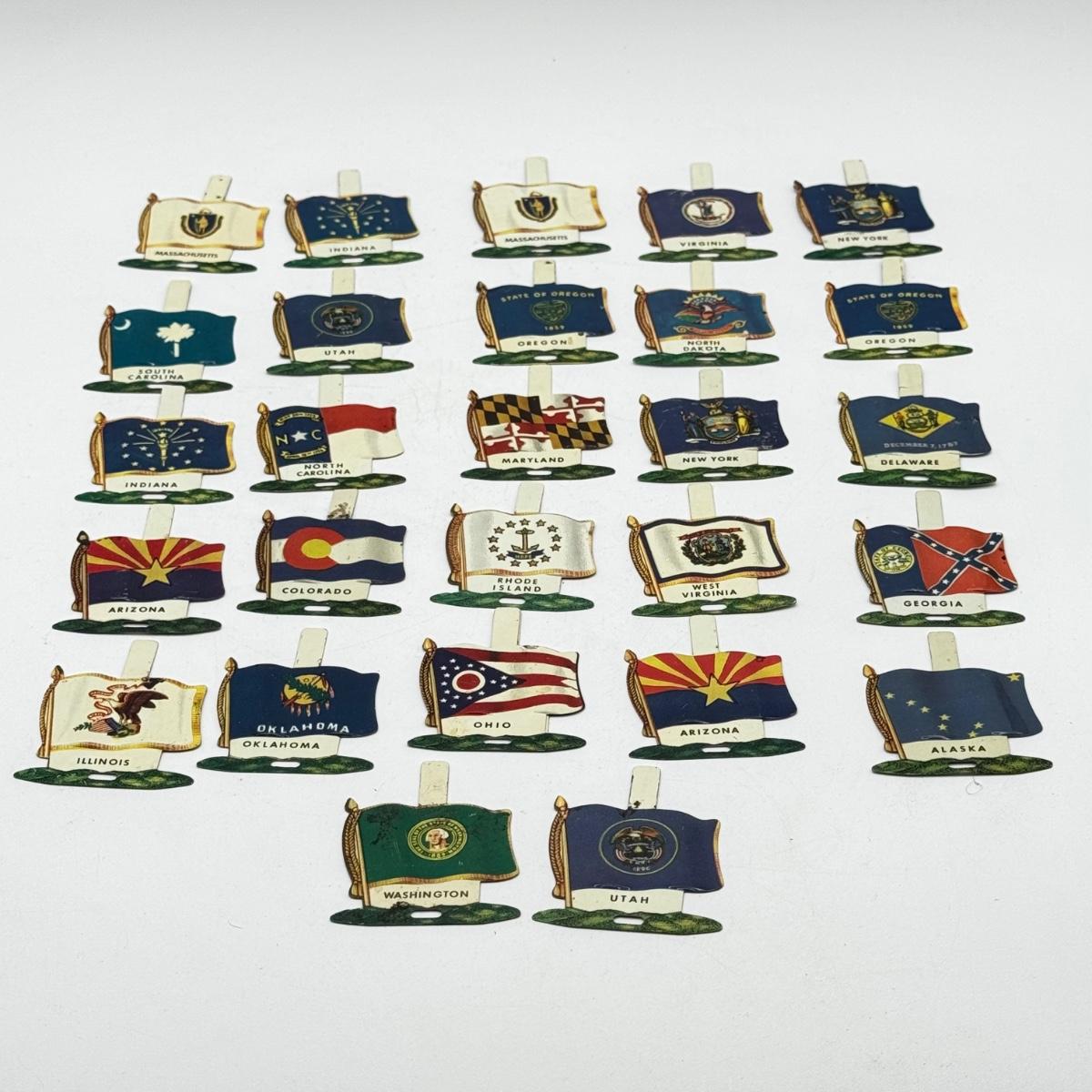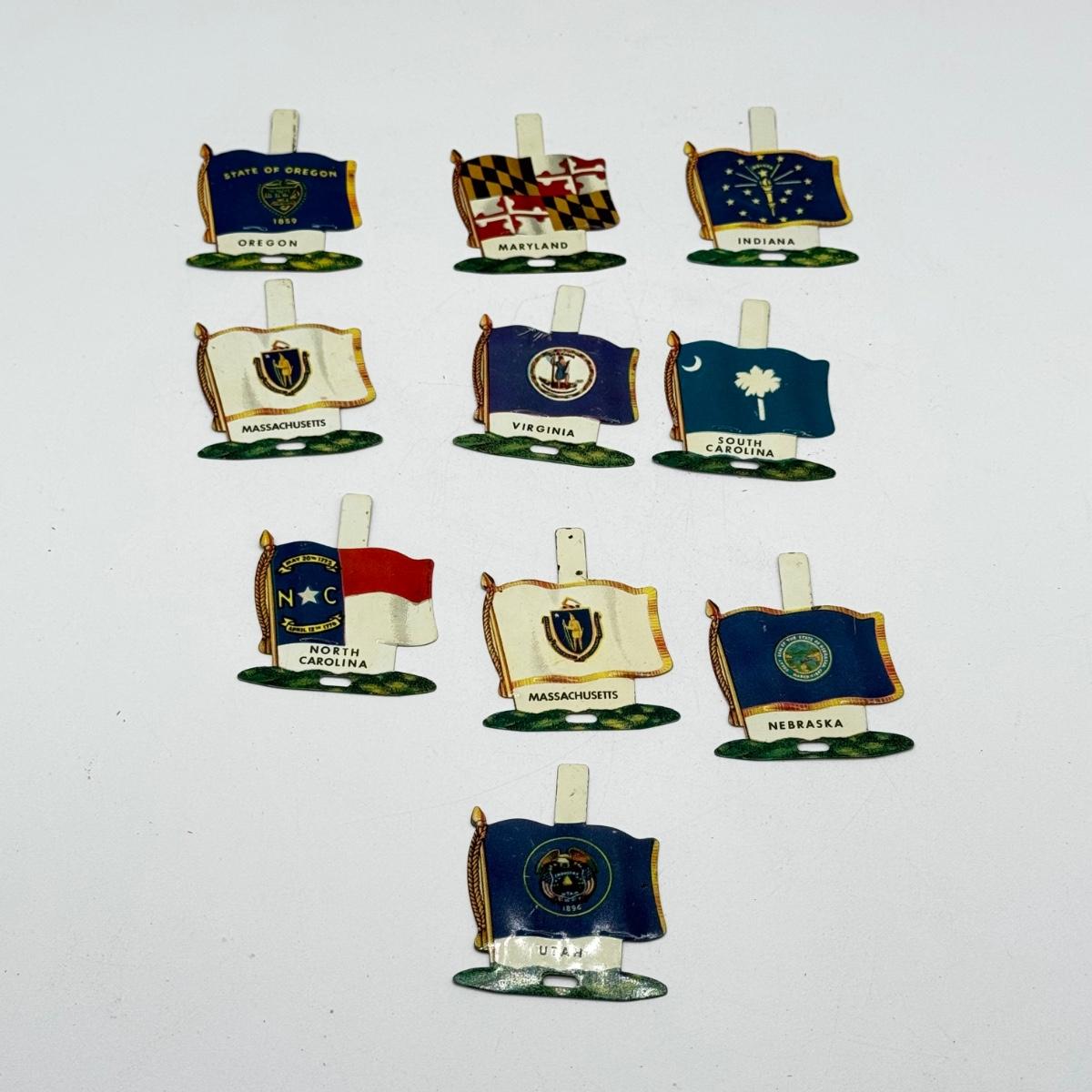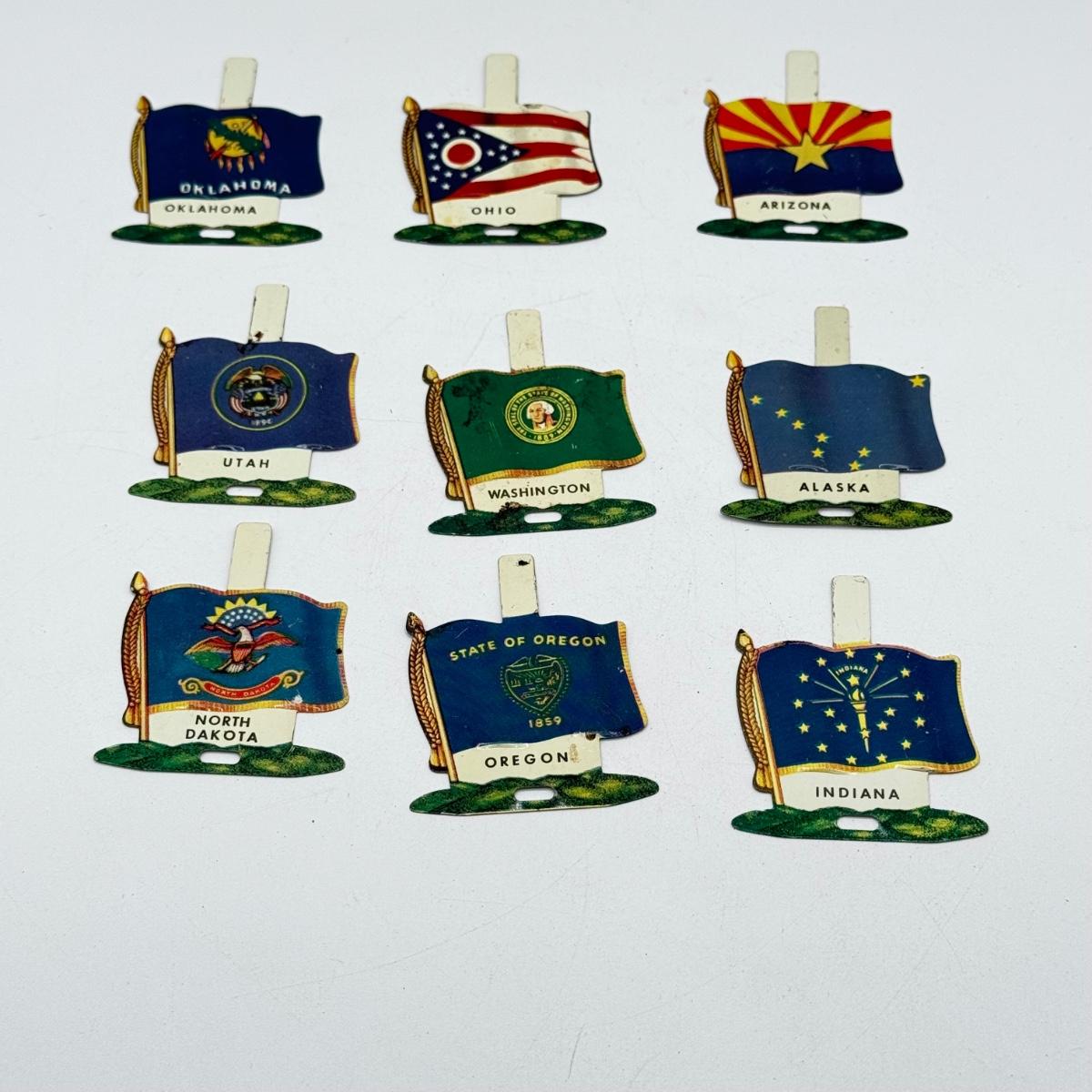 LOT 106K: Collection of Vintage Tin Pins of Various State and Nation Flags