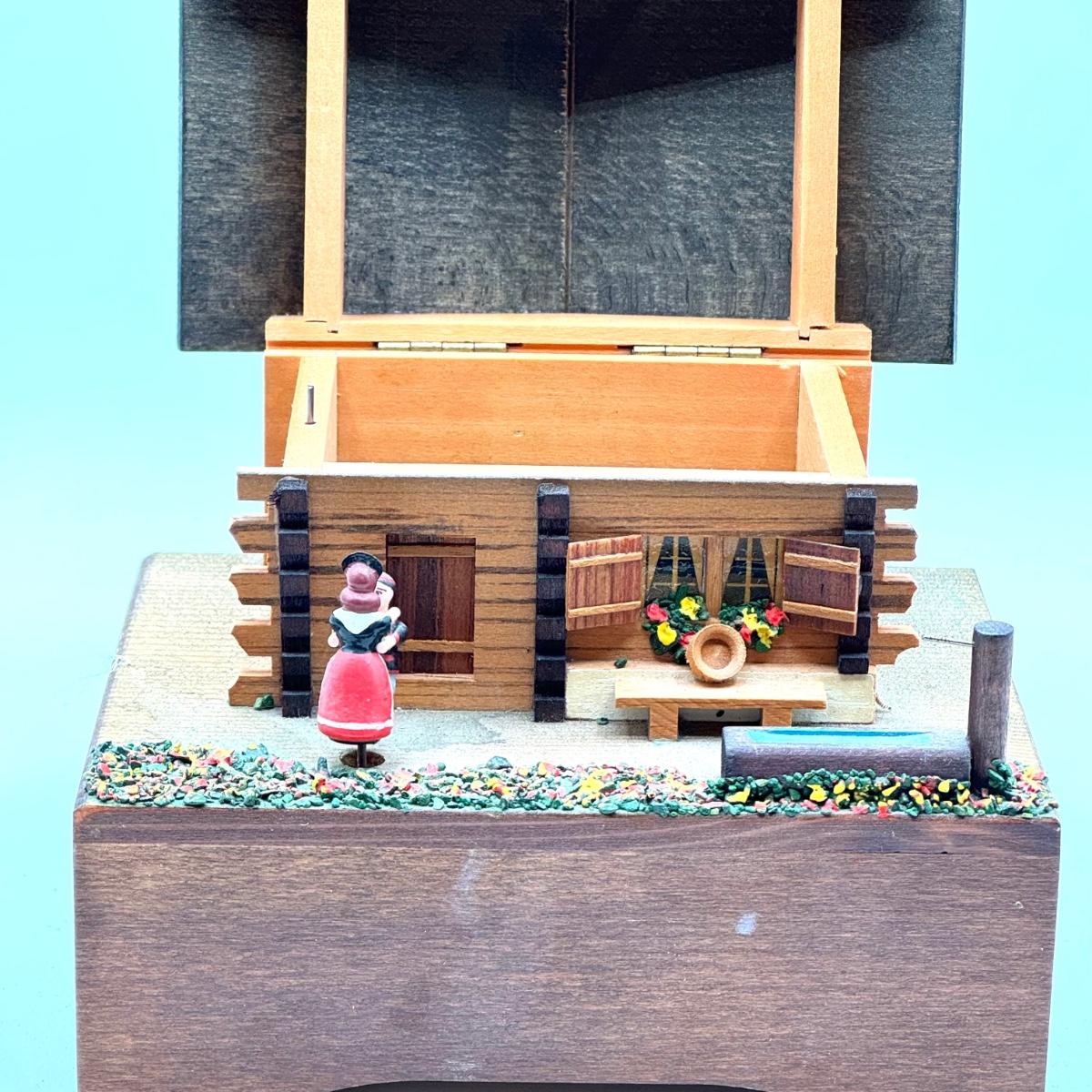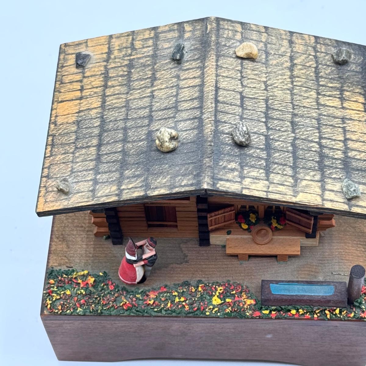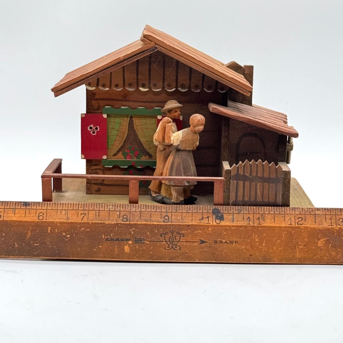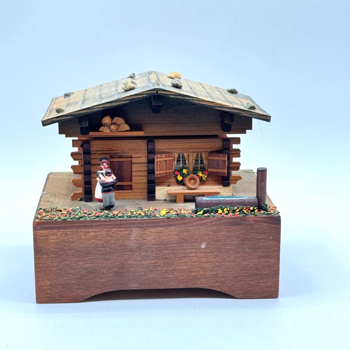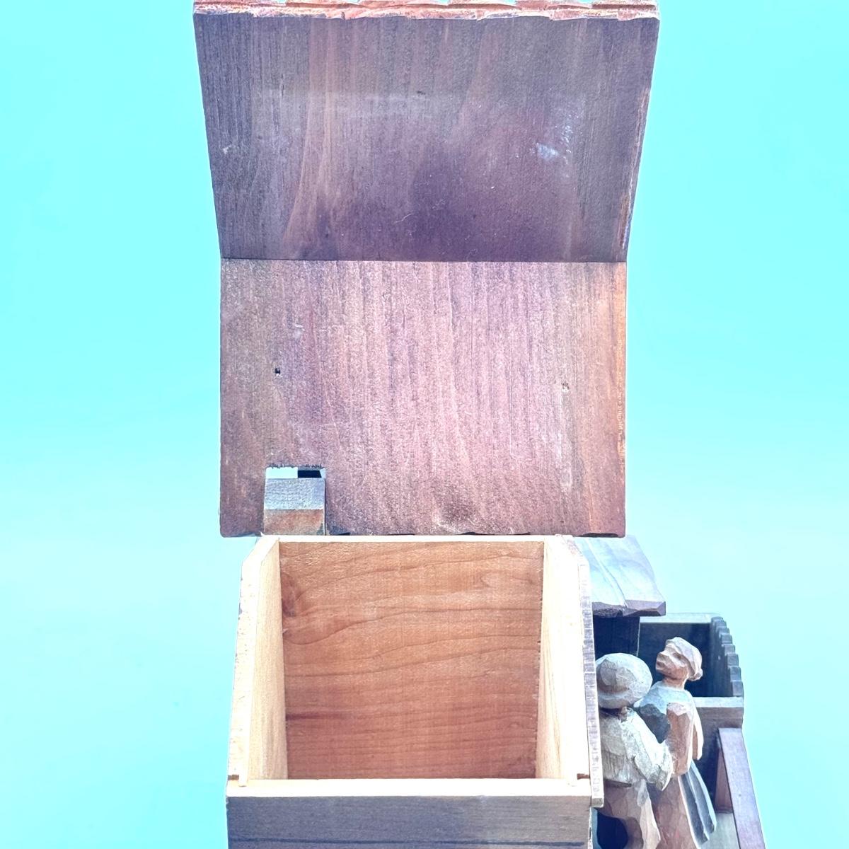 LOT 108K: Two Vintage Swiss Chalet-Styled Music and Jewelry Boxes Hand-Carved and Hand-Painted Pine