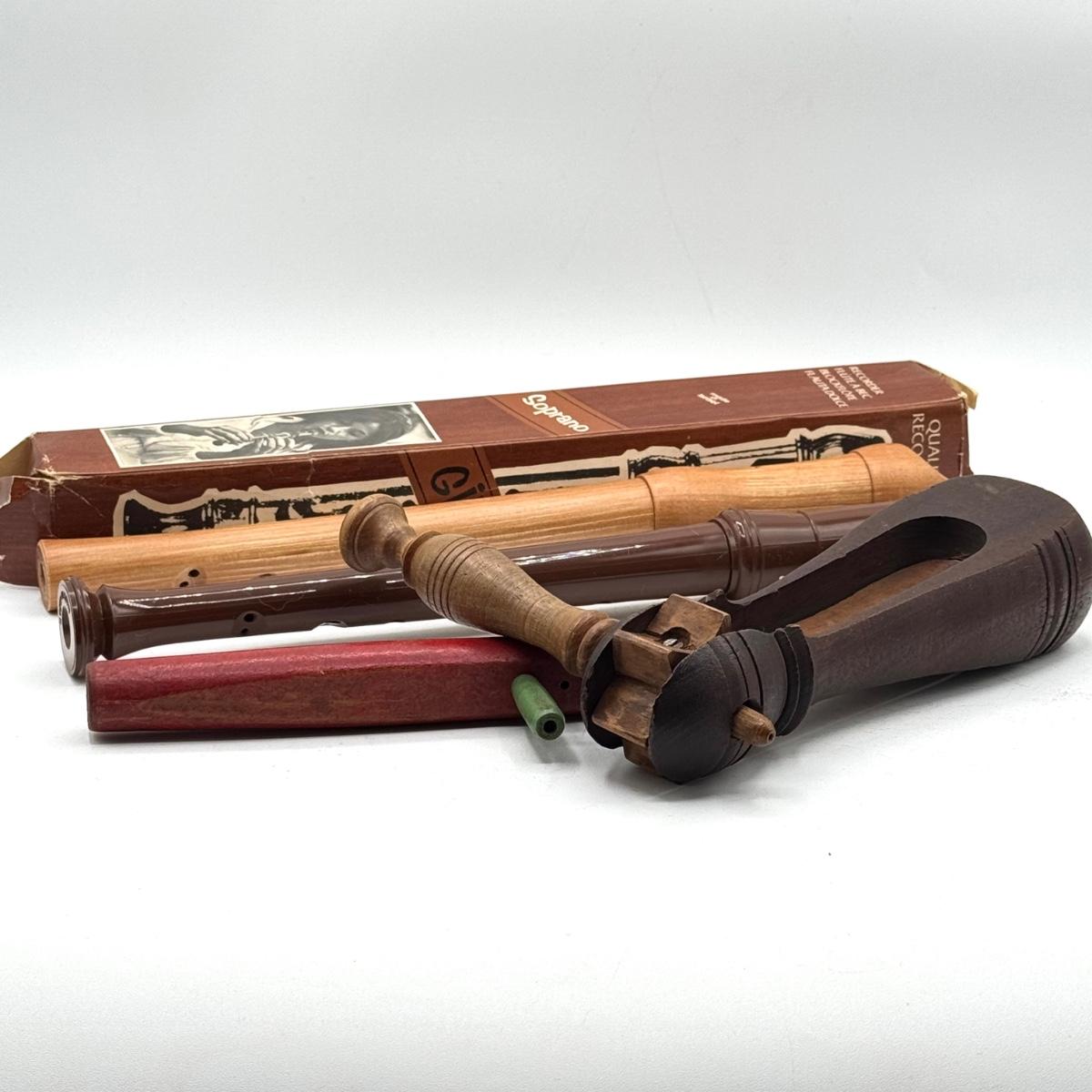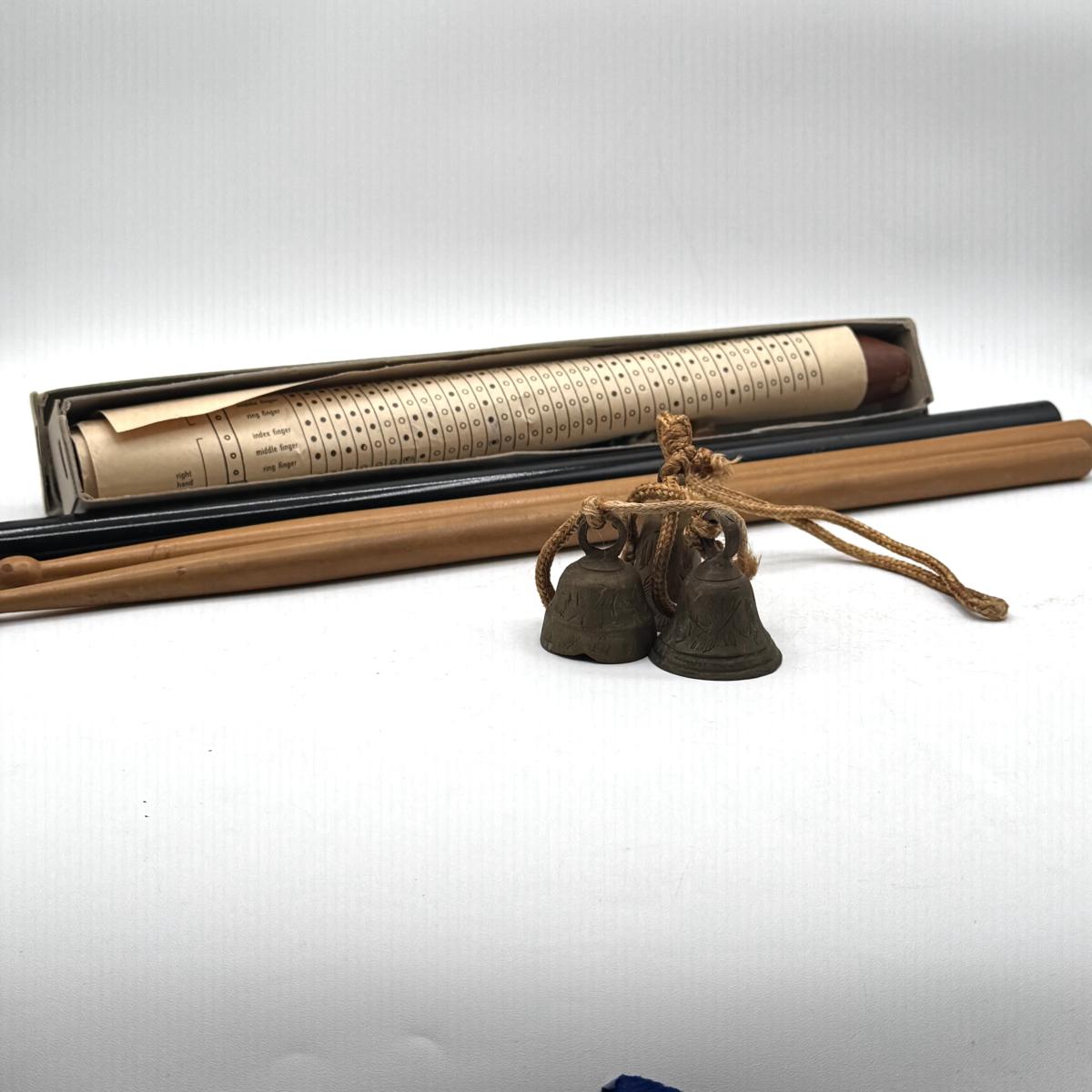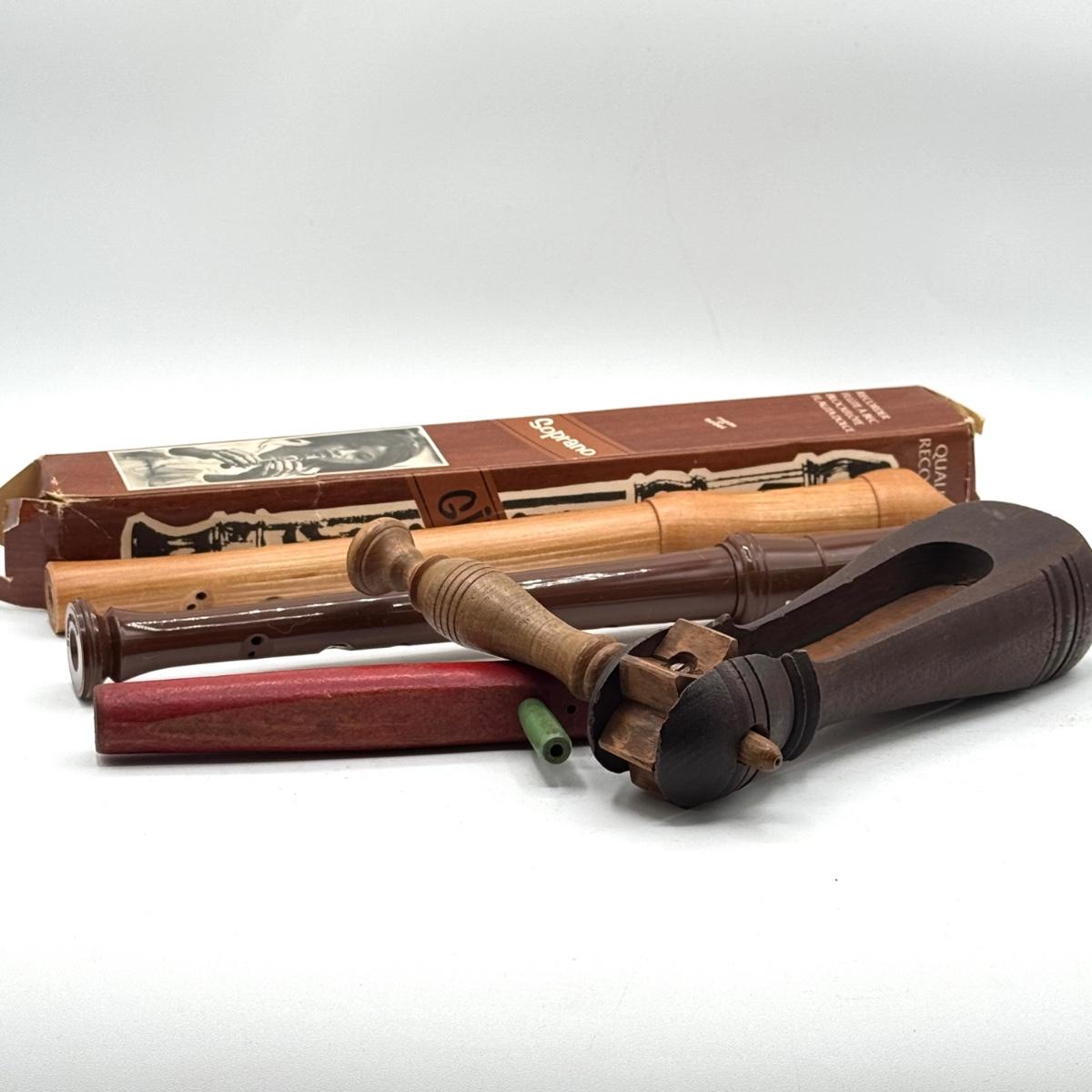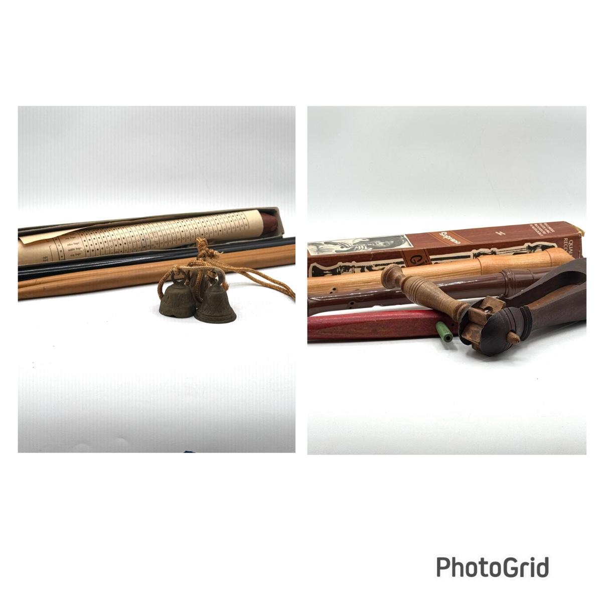 LOT 120K: Vintage Assortment of Instruments Featuring Flute, Recorders, 3 Vintage Brass Bells, Noisemaker and More!
