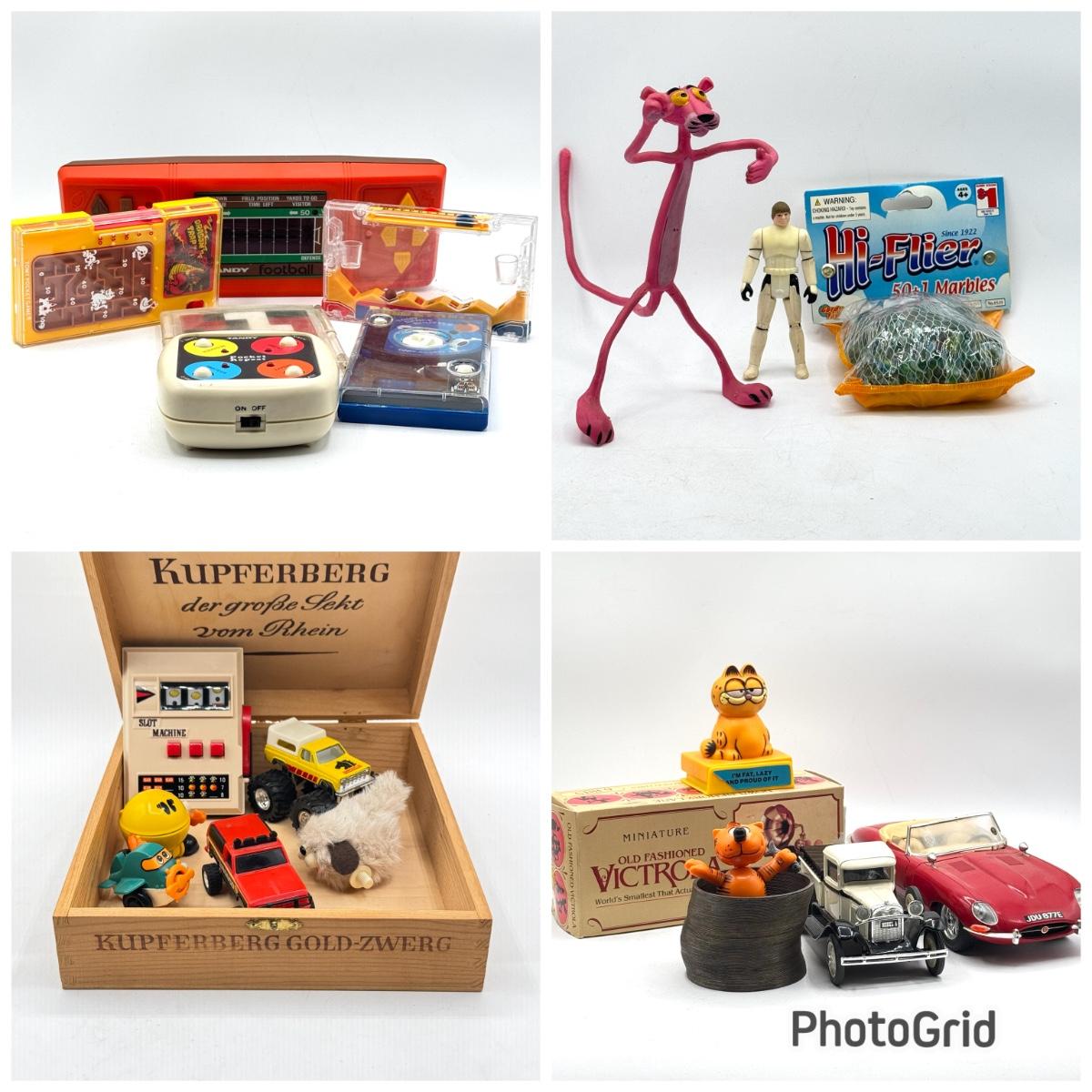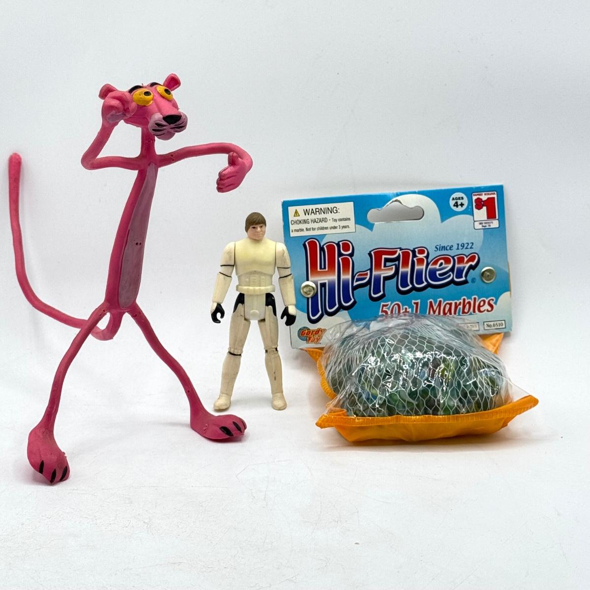 LOT 121K: Vintage Toy Lot Featuring Luke or Han from Star Wars, a Playing Victriola, a Slinky, the Pink Panther and Much More!