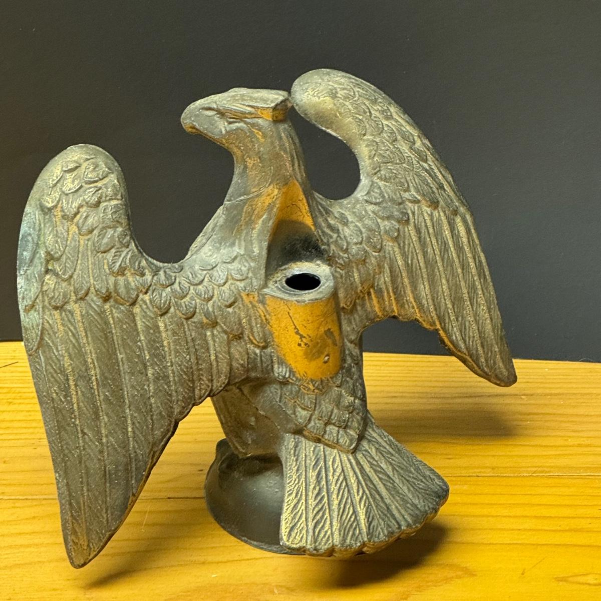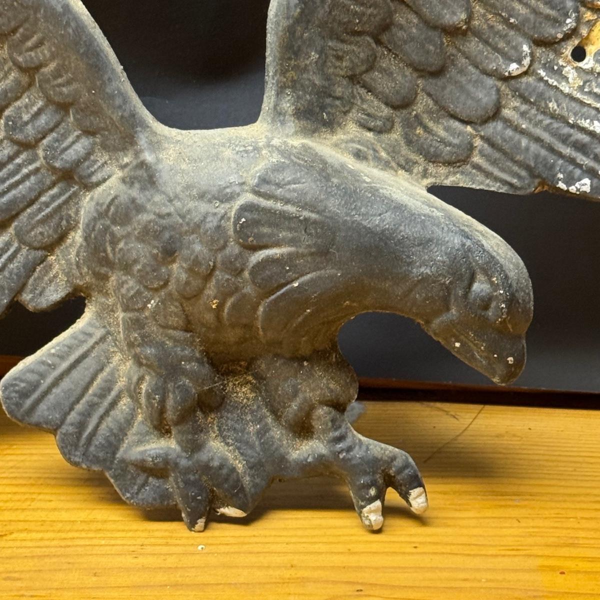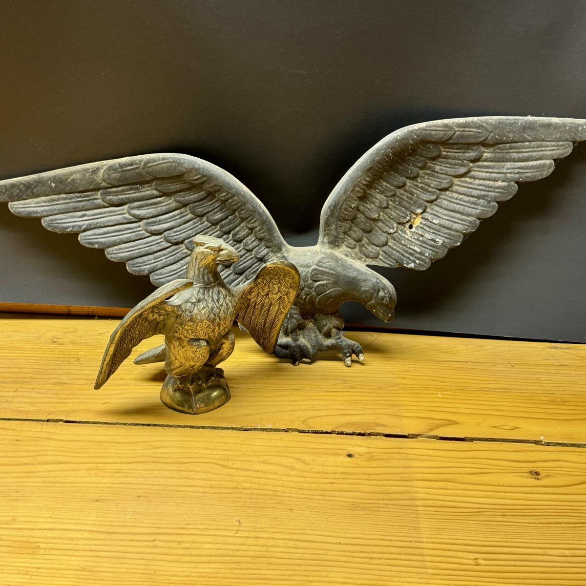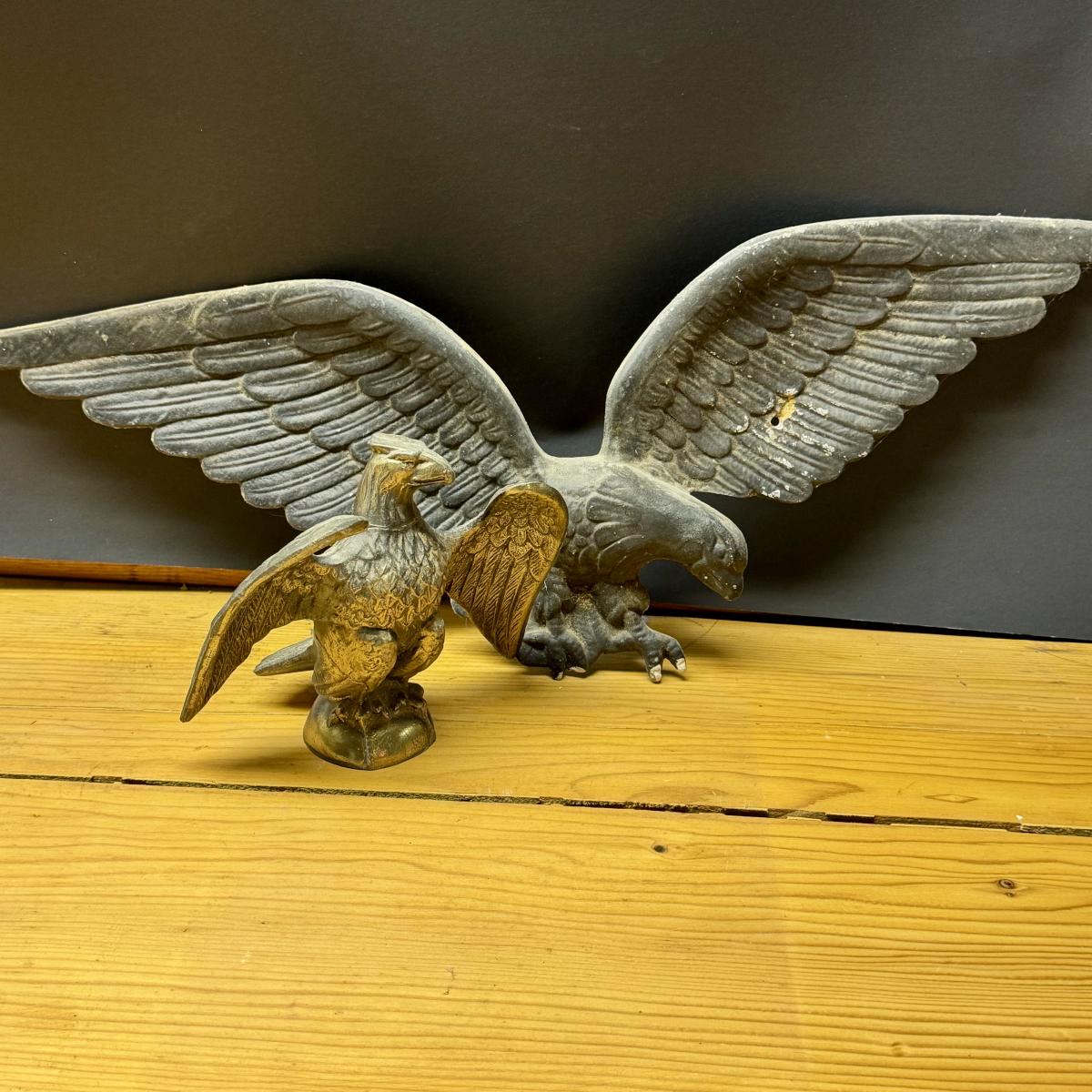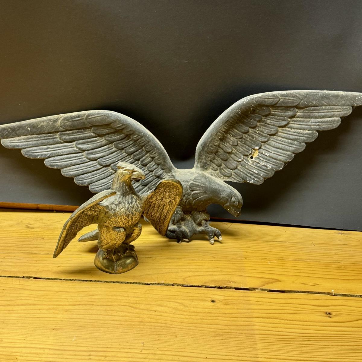 LOT 123B: Vintage Cast Iron Eagle Wall Plaque entitled, “Freedom Flyer” and a Bronze Eagle Statue