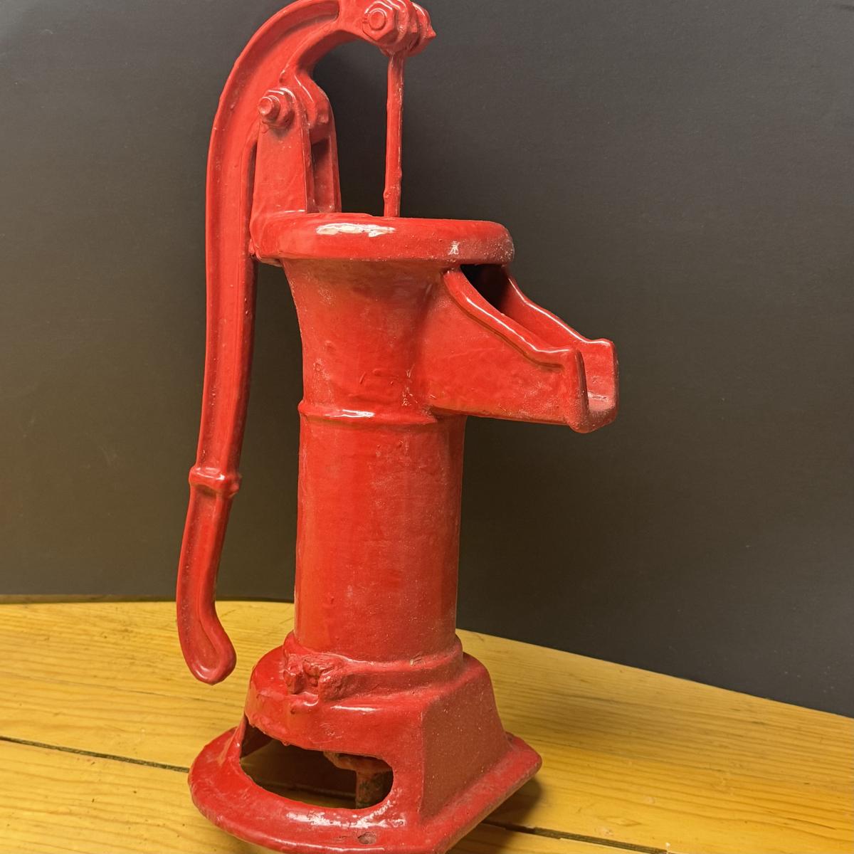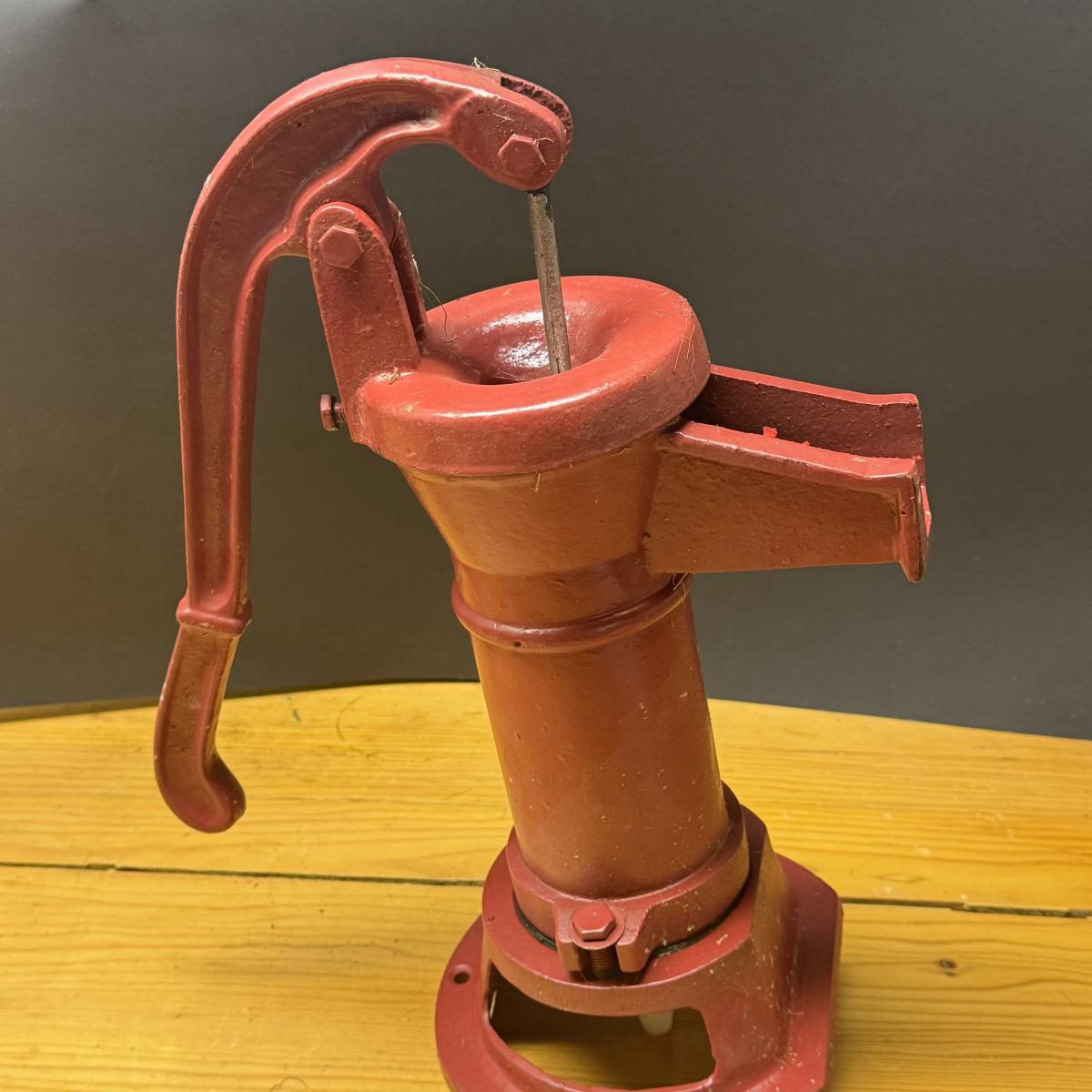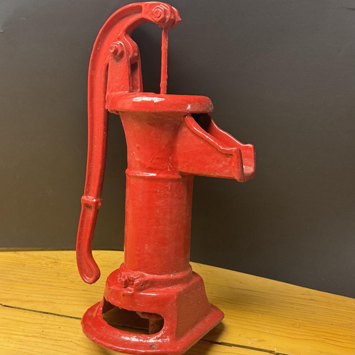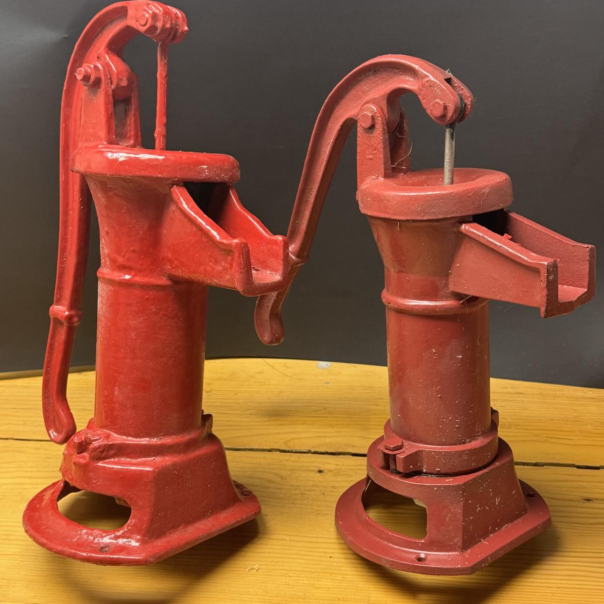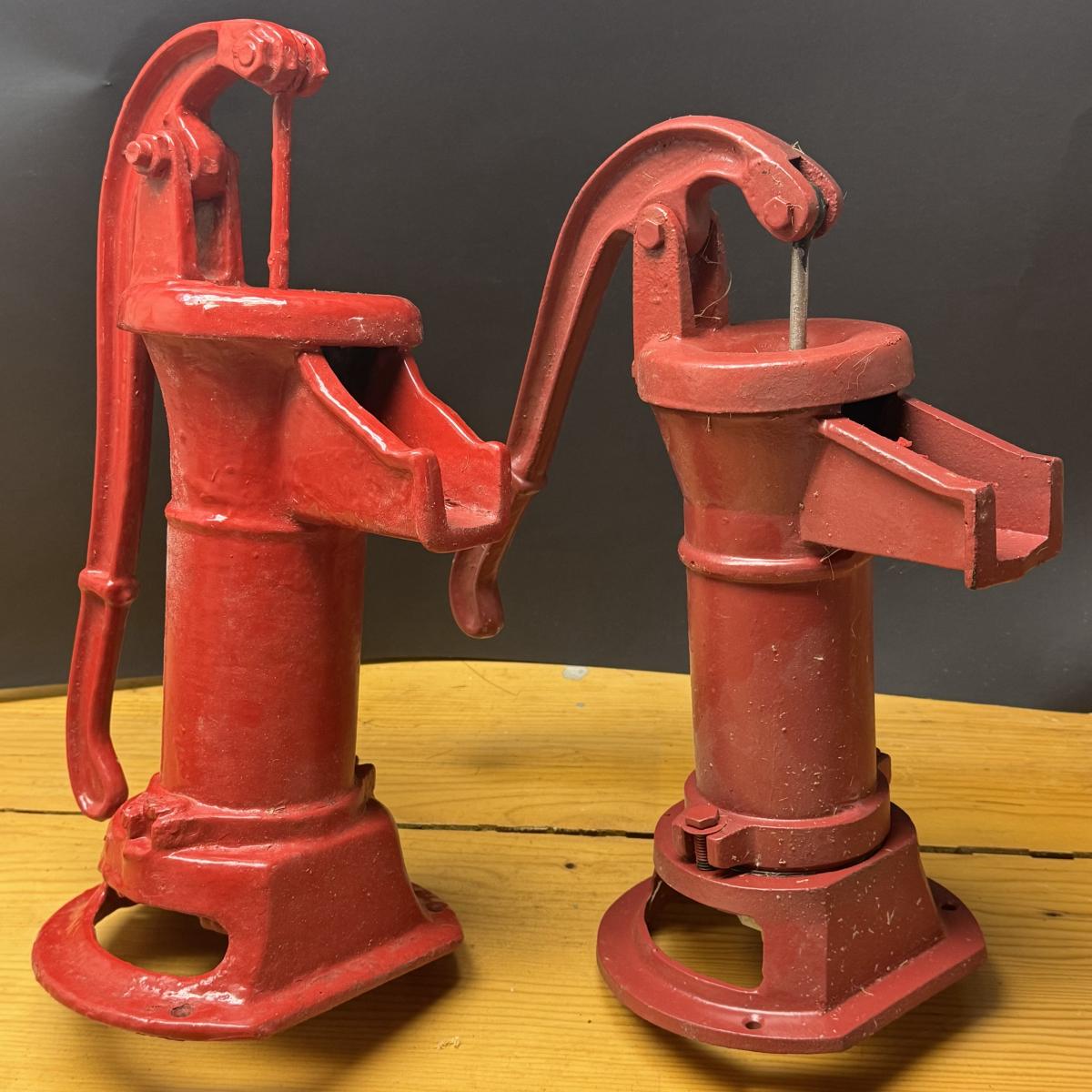 LOT 128B: Pair of Vintage Red Cast Iron Pitcher Pumps (1 on the right is possibly a Campbell PP2 Pitcher Pump)