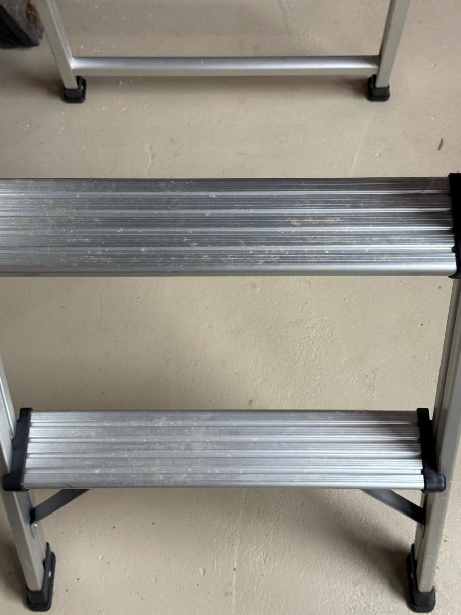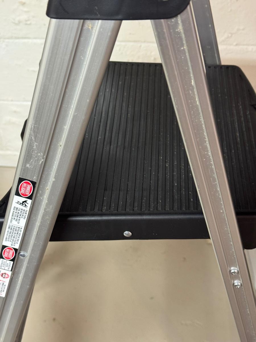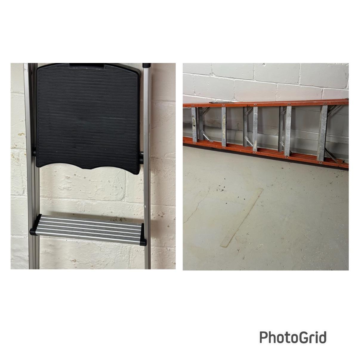 LOT Pair of Ladders! 3 ft Metal step stool with Rubber Feet and an 8 ft Werner Fiberglass NXT1A08 Stepladder