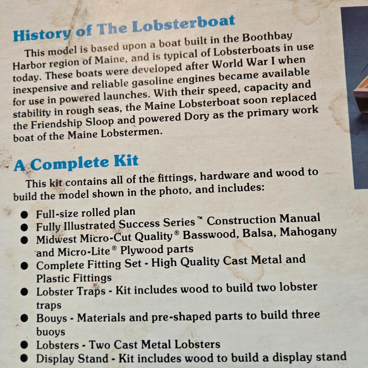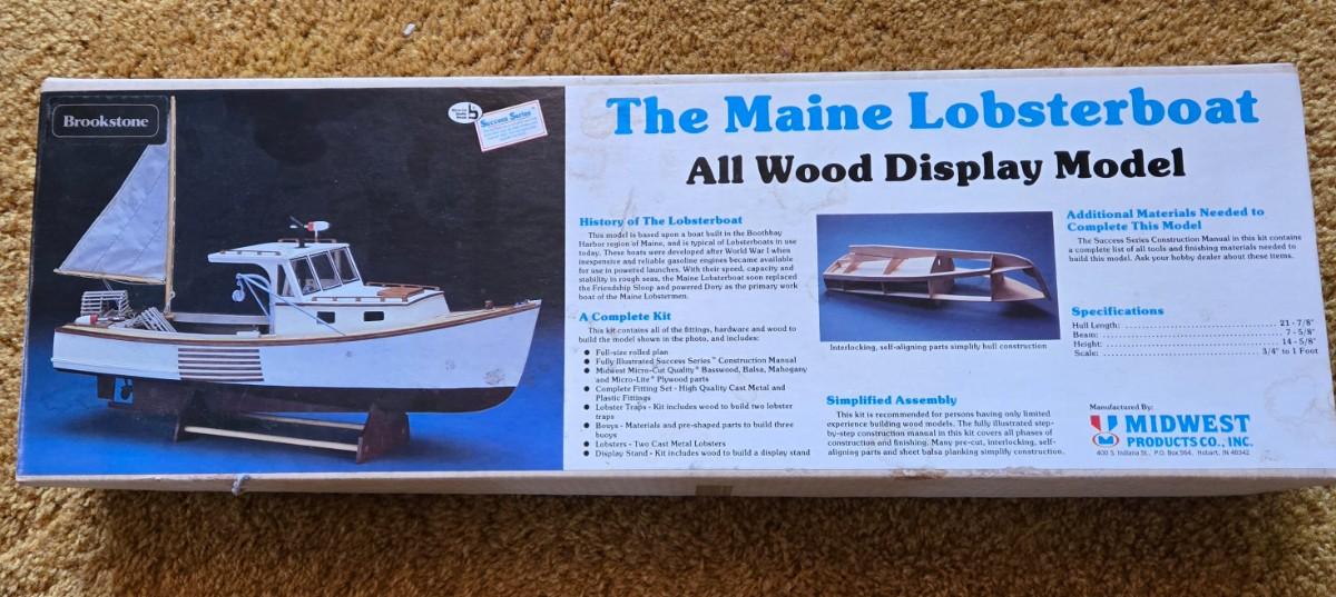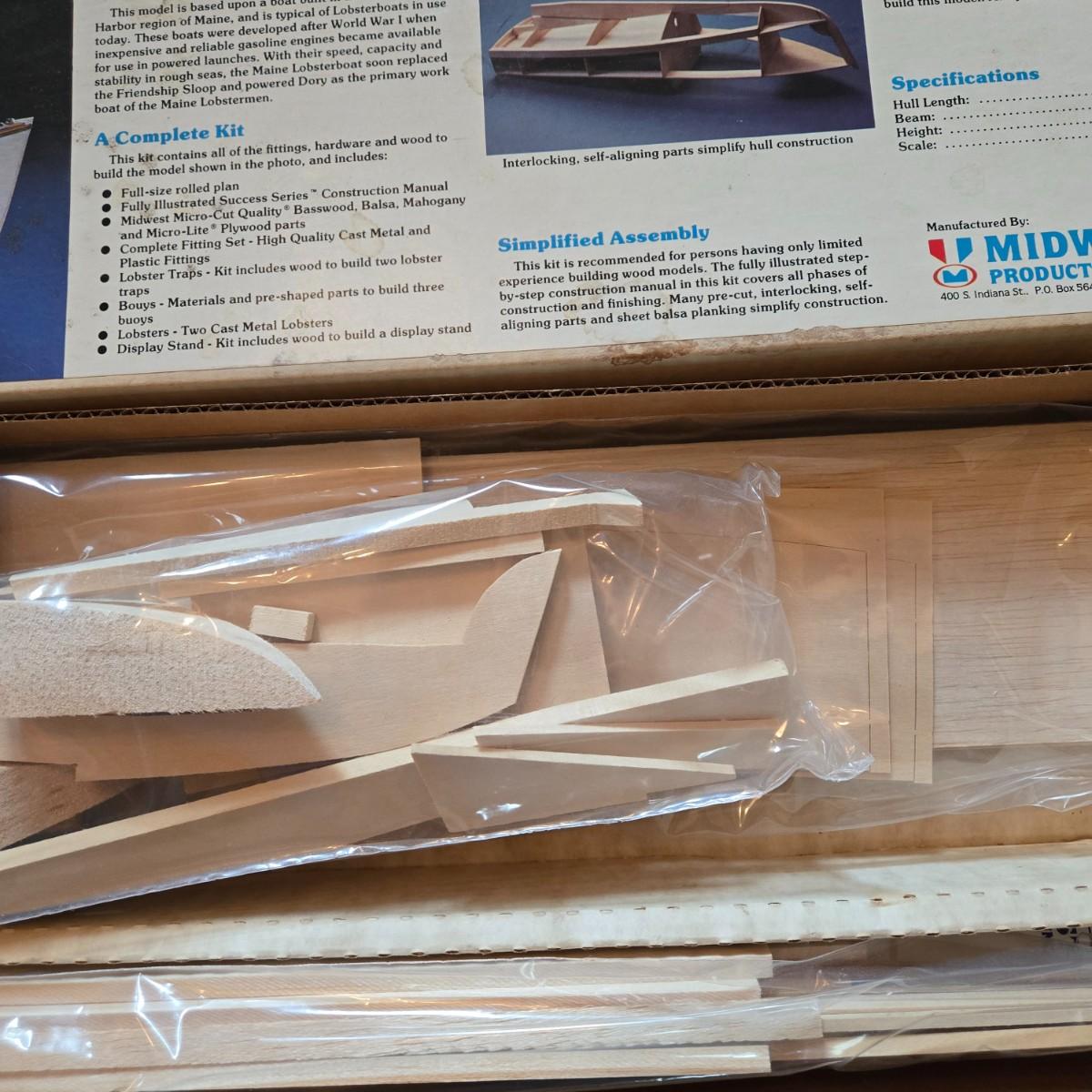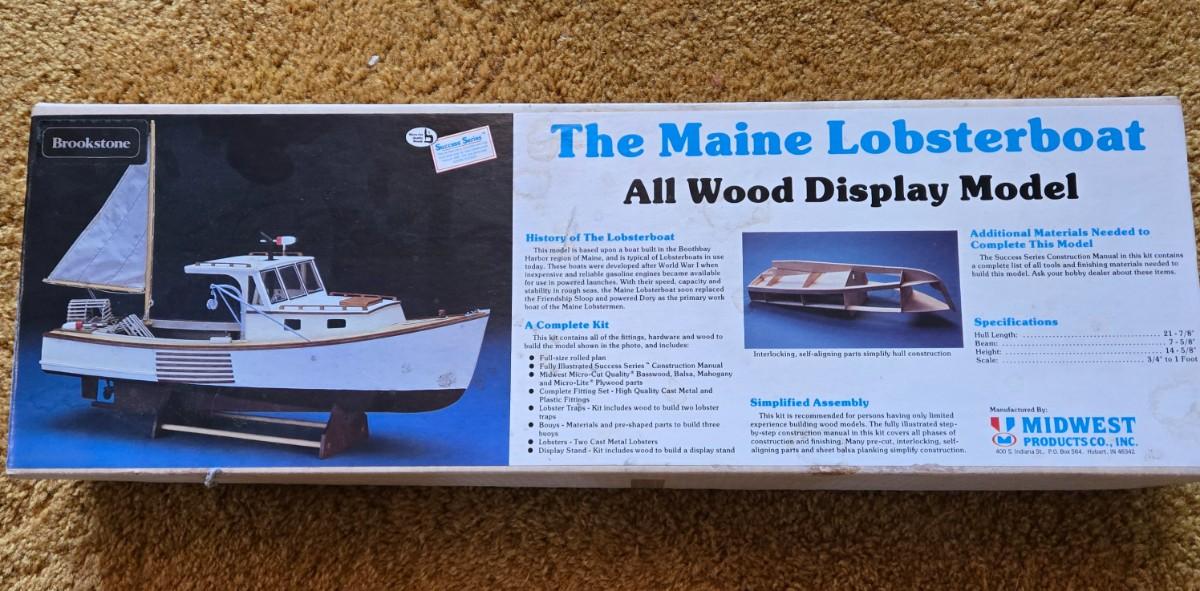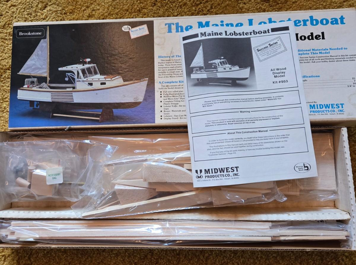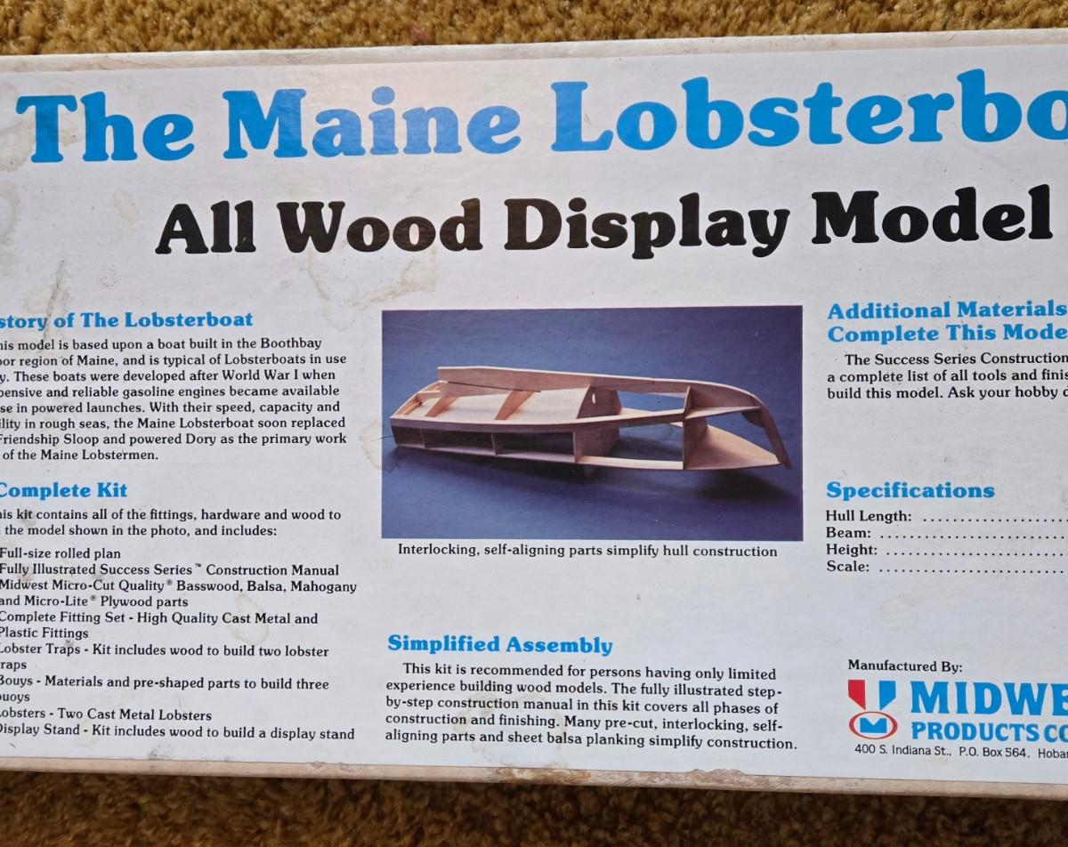 LOT 164X: Vintage NIB Maine Lobster Boat All Wood Display Model Kit by Midwest Products Co. Inc.