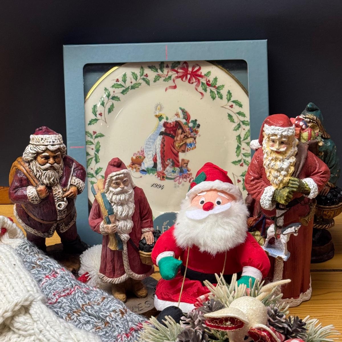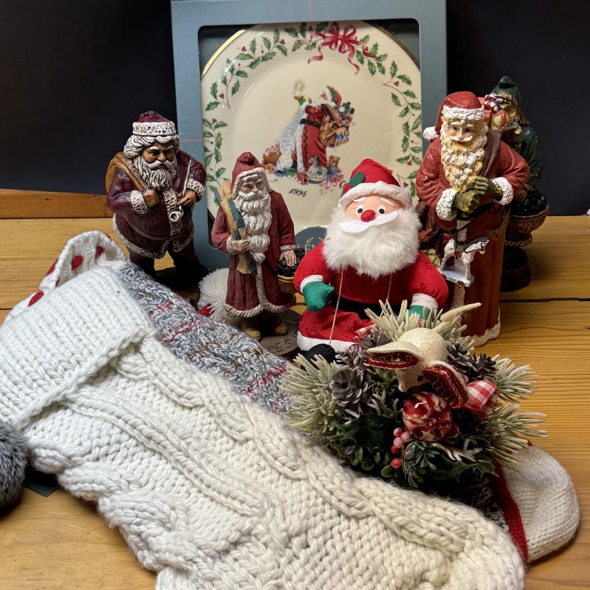 LOT 180B: Christmas in July! Lenox Christmas Plate, Couple of Stockings, Santa Figures and More!