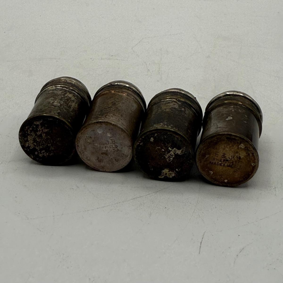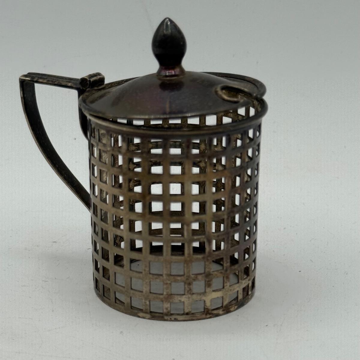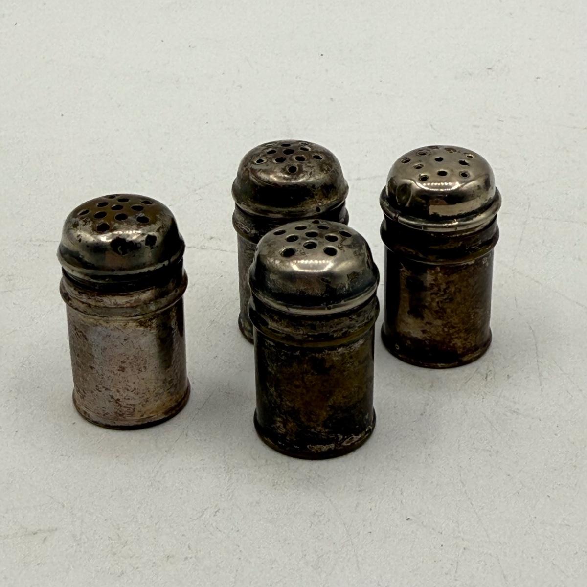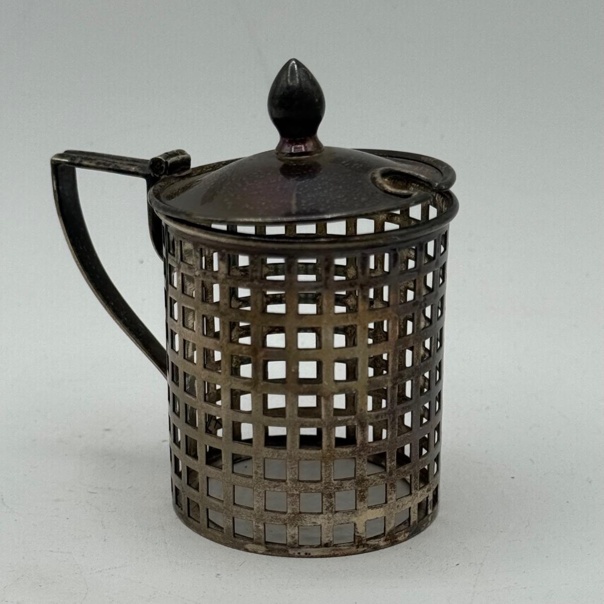 LOT 183K: Antique Cobalt Glass and Sterling Silver Condiment Pot w/ Spoon & Sterling Salt Shakers
