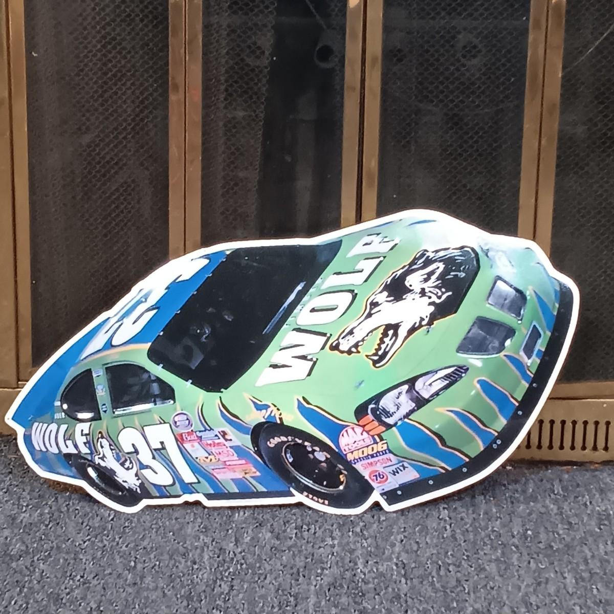 LOT 229: Timber Wolf Mark Green #37 Metal Nascar Sign 2003