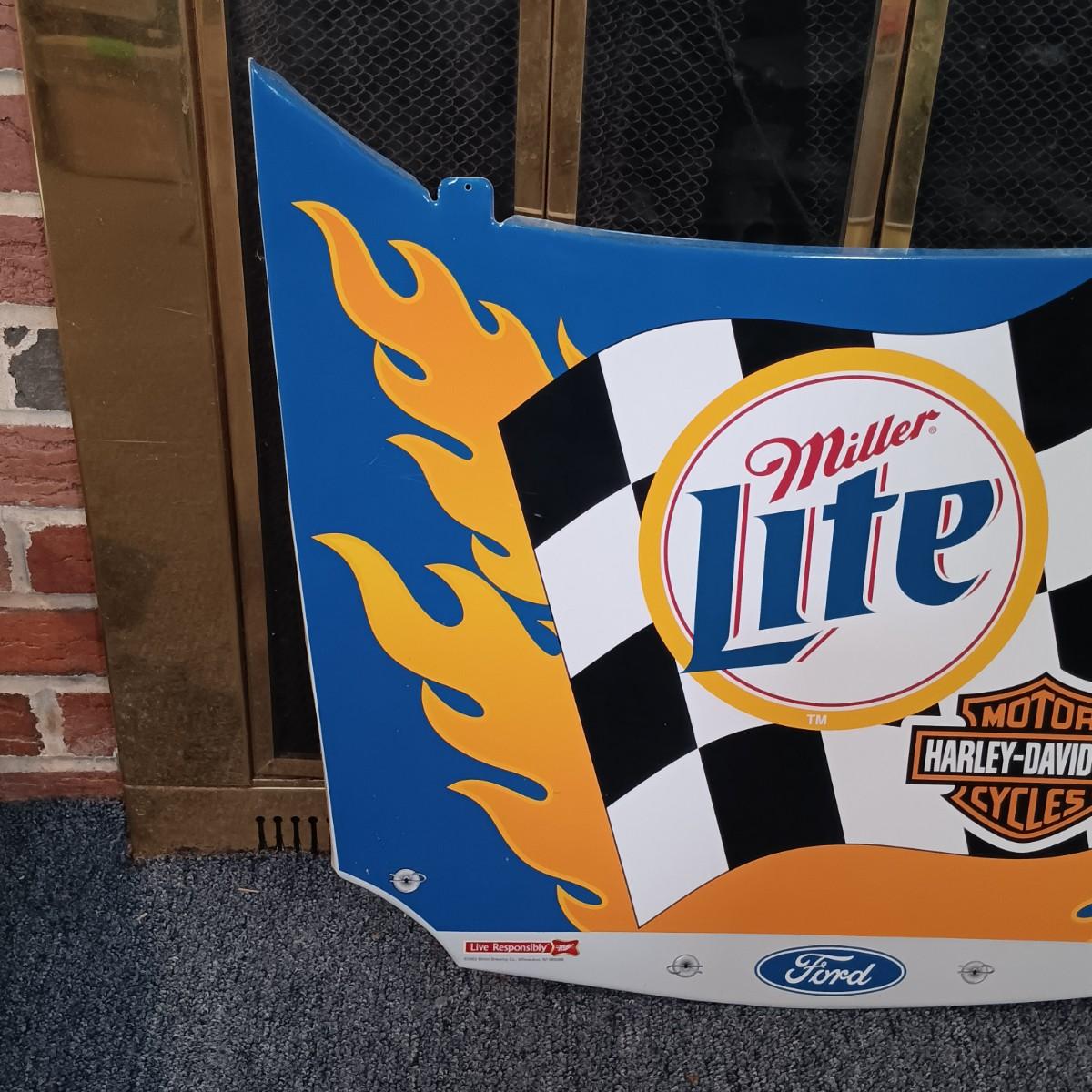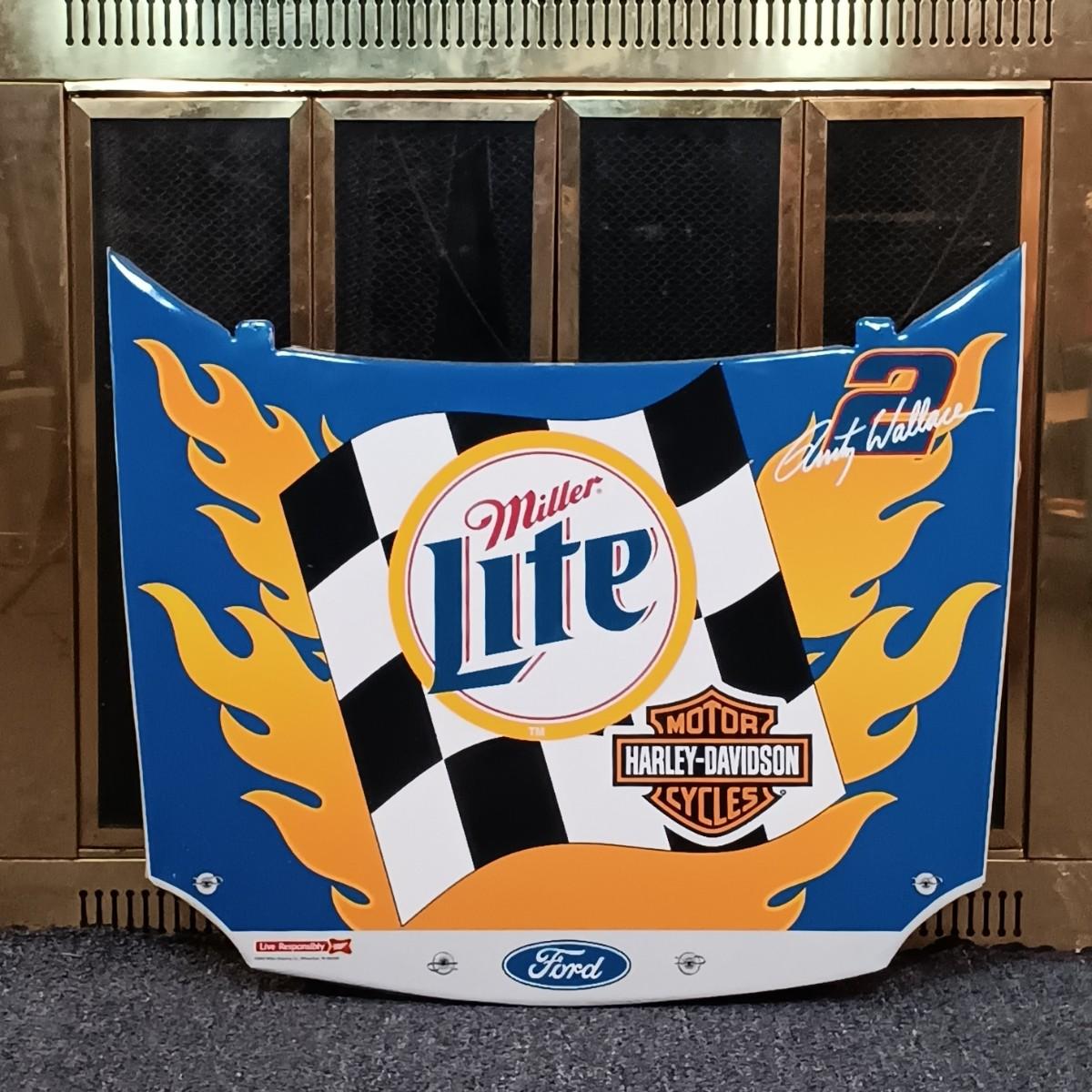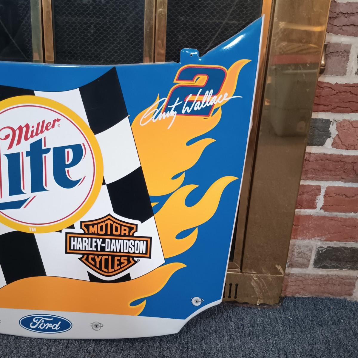LOT 233: Miller Lite 2002 Rusty Wallace #2 Harley Davidson Nascar Hood Metal Sign