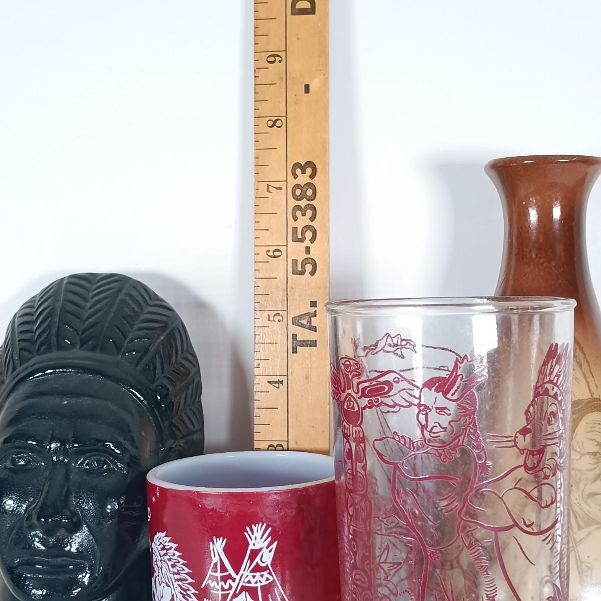 LOT 240: Glass Bookends, Hazel Atlas Child's Mug, Milk Glass Vase & Peanut Butter Drinking Glass