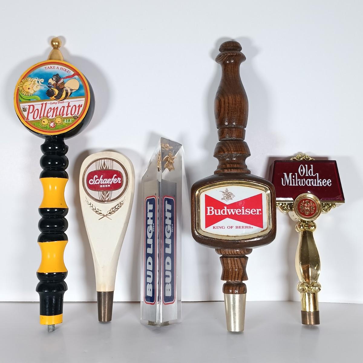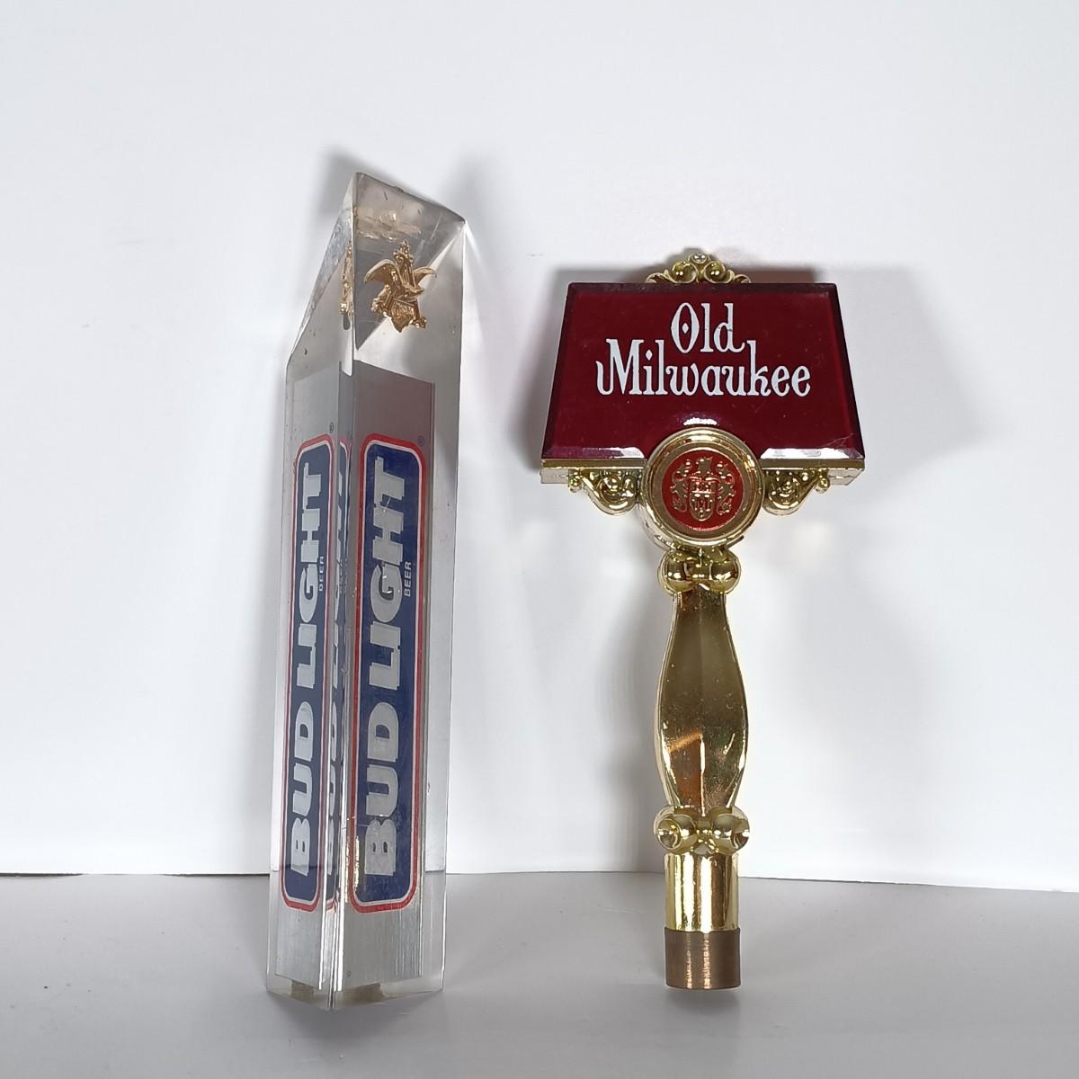 LOT 243: Vintage Beer Tap Handles - Plastic Old Milwaukee, Acrylic Bud Light, Wood Budweiser & More